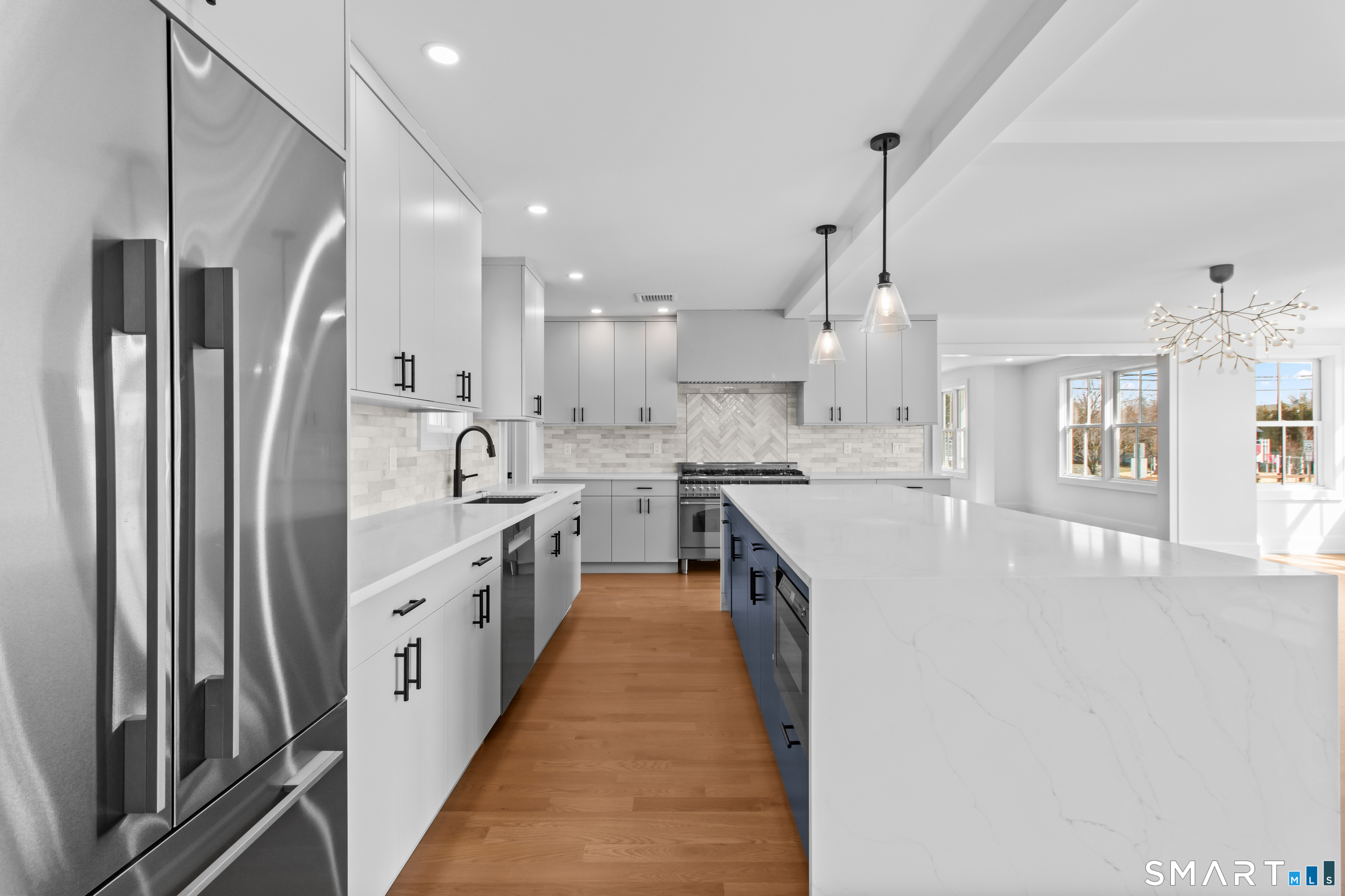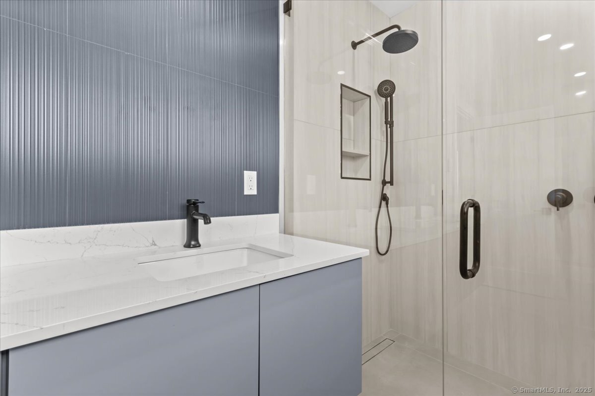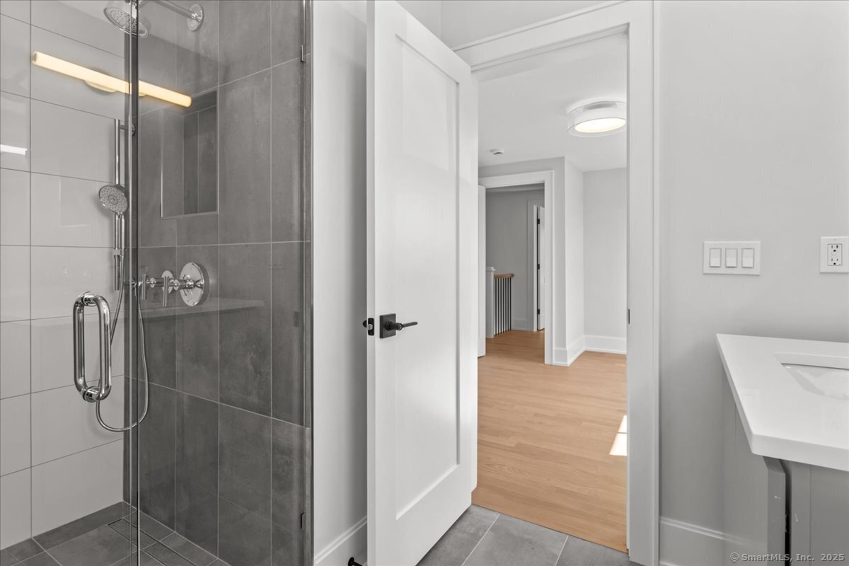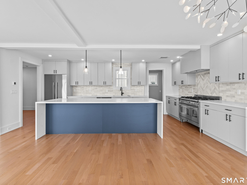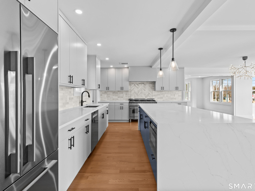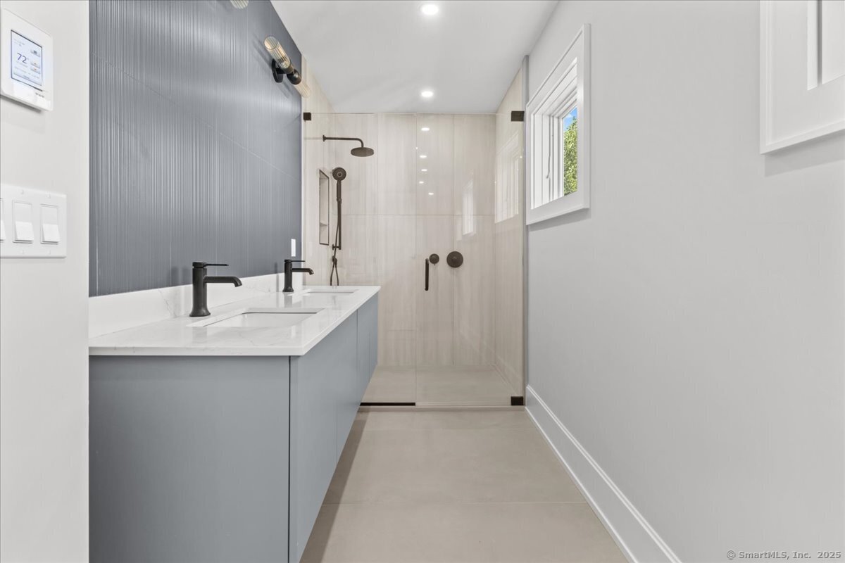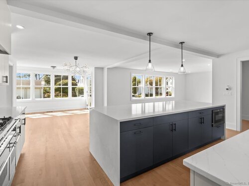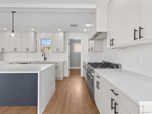 Enjoy the ideal waterfront living in the enchanting community of Marvin Beach surrounded by the beauty of Long Island Sound, Gregory Point, Taylor Farm, and the Norwalk Harbor. This amazing 4 bedroom 3 1/2 bath Nantucket Style Colonial has been completely remodeled by an established Fairfield County custom builder and designed for indoor/outdoor entertaining, extended family, or working from home. With a blend of classic design, timeless appeal, modern upscale amenities, and open concept the home is an ideal haven for creating lasting memories and enjoying nature at it's best. The first floor includes porch access to the formal living room with custom central staircase, powder room, large open gourmet kitchen with with island, formal dining area, and family room. Just a few steps away from the family room is the private great room, mudroom, and 2 car garage. The second floor offers a private primary suite that includes dramatic High ceiling, oversized walk-in closet, en-suite bathroom with separate shower and double vanity, and laundry room just steps away. Exit the master bedroom suite to 3 large additional bedrooms including guest room suite with full bath. All rooms have oversized windows for plenty of sunshine and 4 inch select grade white oak. Just a few of the features include quartz countertops, stainless steel appliances, custom staircase, and high end tile and fixtures. See public remarks and attached supplement for details on this new 2025 home.