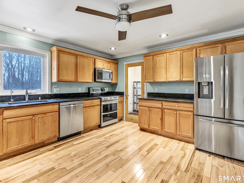Welcome to 108 Webb Circle! Built in 1995 offering privacy and serenity, this beautifully maintained 3 bedroom 2 full bath raised ranch tucked away on a serene and private 3-acre lot! offers a blend of comfort, quality, and tranquility. Walking distance to Webb Mountain Park! A true escape from the everyday. Hickory hardwood floors flowing throughout both levels of the home, With walnut Inlays found on the main floor accented with beautiful crown moulding and trim work. This home extends to the outdoors. Trex deck invites you to relax, entertain, and unwind; With a hot tub, great for year-round enjoyment. Whether you're hosting a summer gathering or enjoying a quiet evening, this backyard leaves nothing else to desire. If you're a car enthusiast/hobbyist or you are looking for more storage space. This oversized 2 cars garage offers ample room for what will fit your lifestyle best. Climate comfort with efficient ductless mini-split AC systems upstairs and downstairs, providing a quiet and also comfortable environment. all within the award-winning Monroe school district, including Fawn Hollow Elementary and Masuk High School. Conveniently located off Route 111, you're just minutes from shopping, dining, and commuter routes yet perfectly secluded. Homes like this with acreage, upgrades, and this level of privacy don't come along often. Schedule your private showing today!