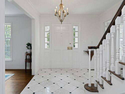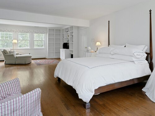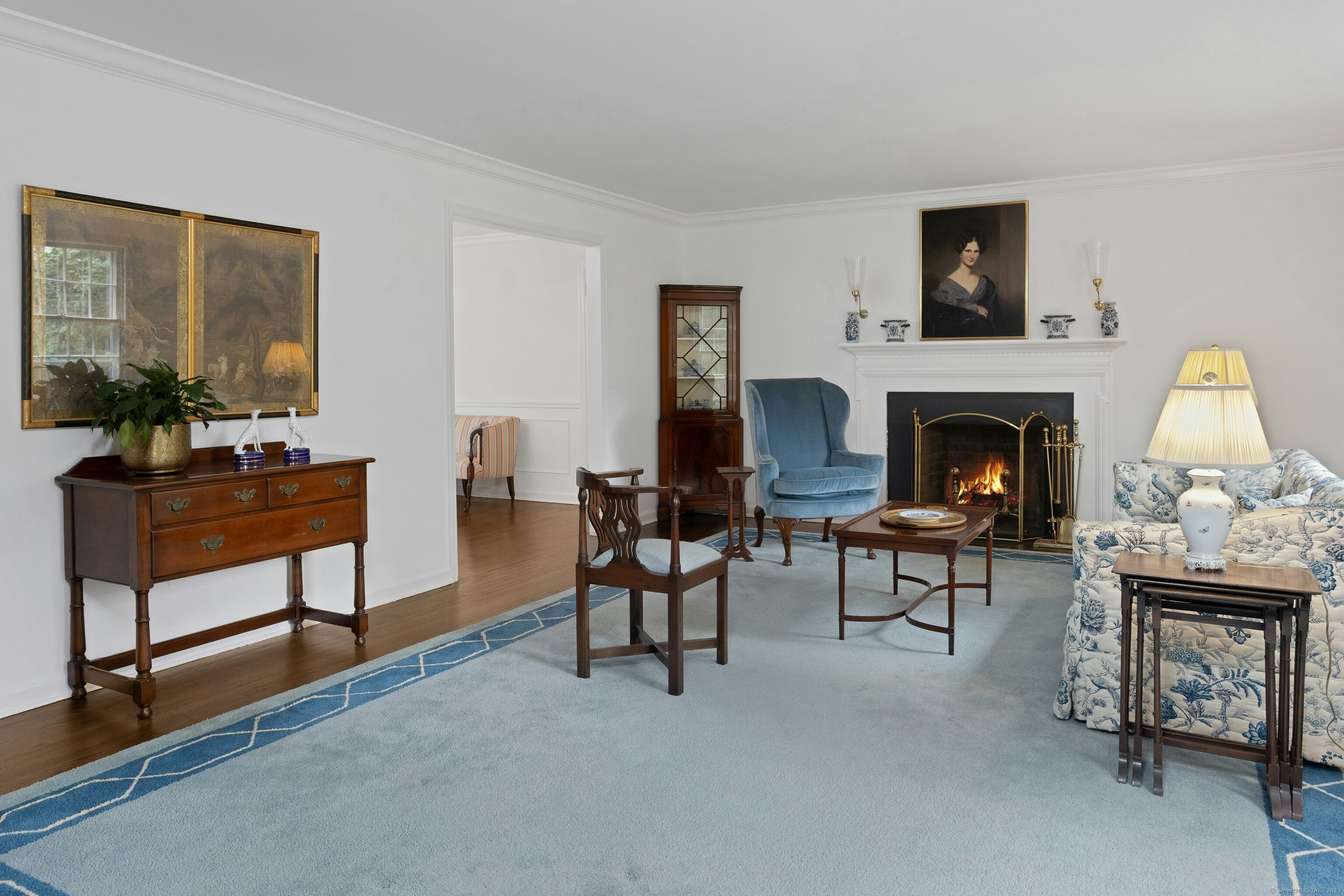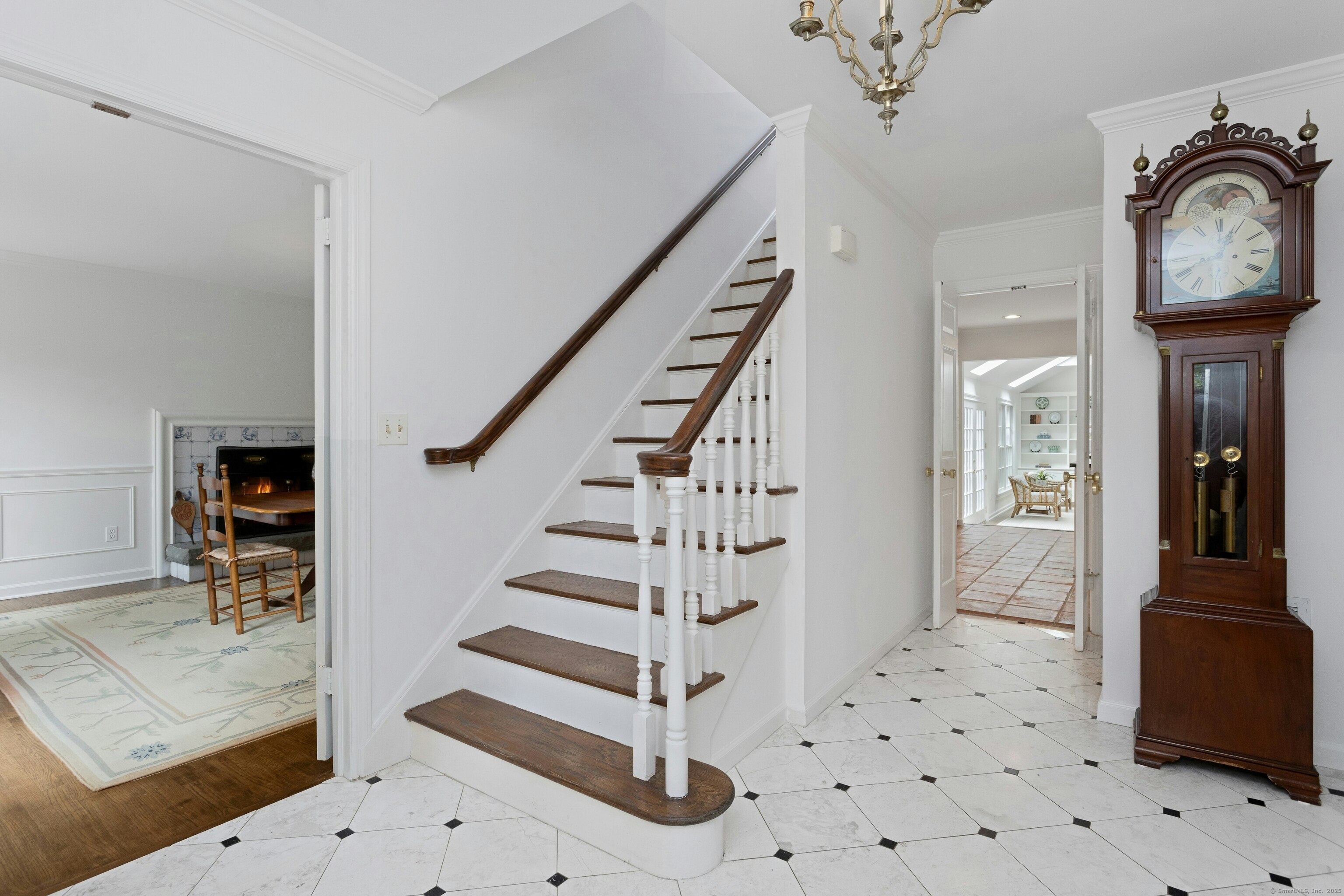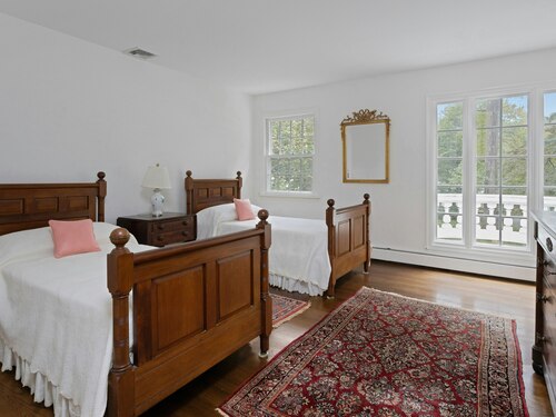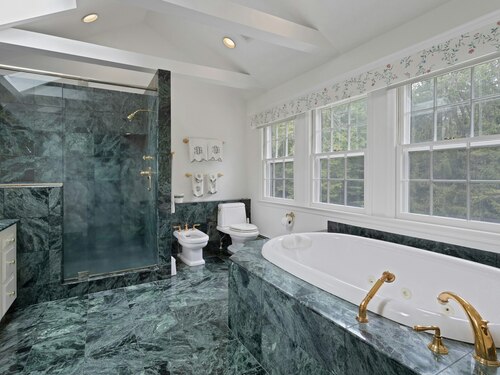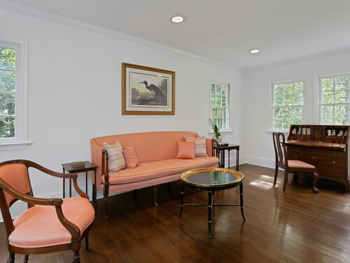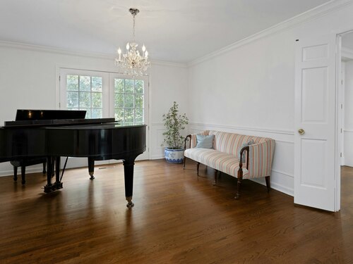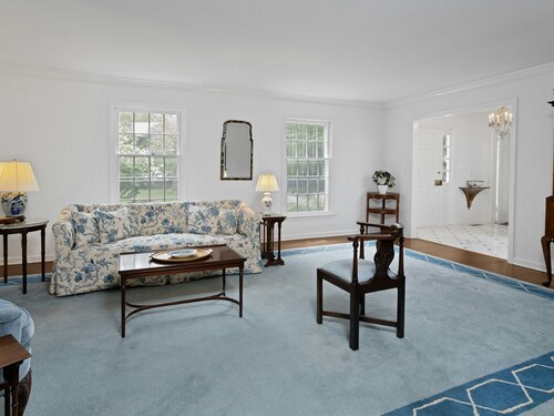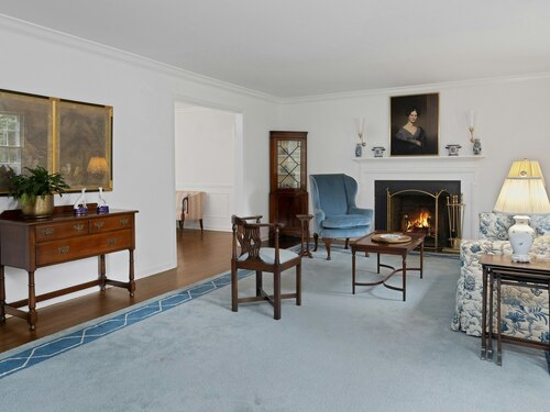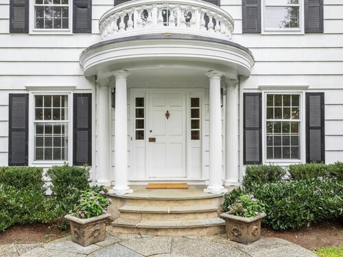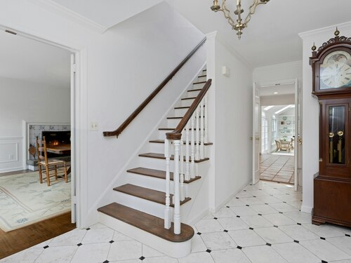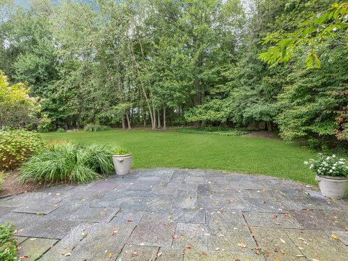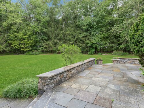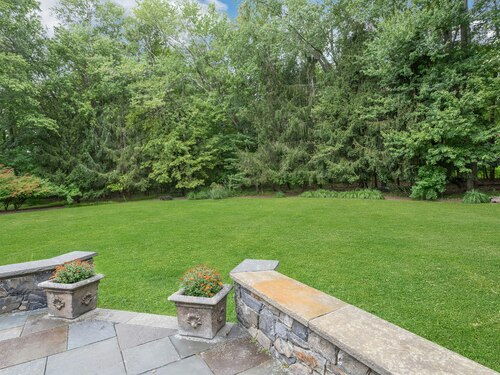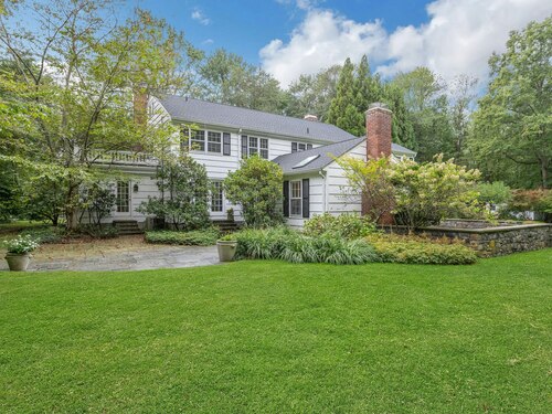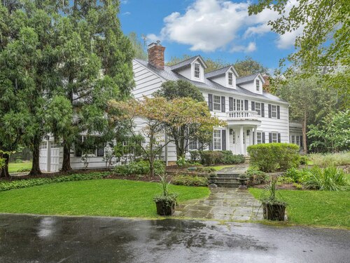 This classic Colonial has character, charm and generous space. The formal Living Room has a fireplace and adjoins the Music Room. The spacious Dining Room has a fireplace bordered by Dutch tiles and features a custom "River" mural. The kitchen has a bright copper exhaust hood, gas stove and opens to the family room with cathedral ceiling, skylights, fireplace and French Doors to the terrace. The private library has ample space for a full selection of books and accesses a 2nd terrace. The spacious Primary bedroom has a fireplace, cedar closets and a custom marble bath with skylights. There are 4 additional bedrooms, a walk up attic and a waterproofed basement with a cushioned floor. The estate like, level property has mature plantings and complete privacy. Make this gracious home and idyllic setting your own!