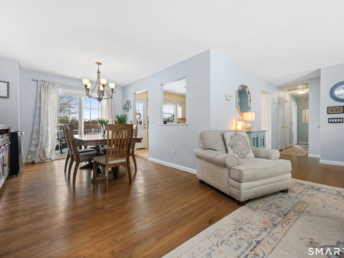 Welcome to 11 Apple Blossom Lane, a well-proportioned raised ranch located in a desirable New Fairfield neighborhood. This well-maintained home offers 3 bedrooms, 2.5 baths, and 1,812 sq ft of comfortable living space. The main level features a bright living room and dining room with sliders to the deck, an eat-in kitchen, and three bedrooms with two full baths all on one level. Hardwood floors run throughout the main level, and the updated hall bath features polished porcelain tile, adding a fresh, modern touch. The lower level includes a large family room with fireplace, finished with new plush carpeting, along with a half bath, laundry room, ample storage, and access to the two-car garage. Sliders lead to the backyard, offering great indoor-outdoor flow. Outside, enjoy a stone front walkway and patio, a deck, and a level .55-acre lot-ideal for play, entertaining, or relaxing. Conveniently located near schools, parks, Candlewood, shopping, dining, and offering an easy commute to New York, this home is a wonderful opportunity to enjoy all that New Fairfield has to offer.