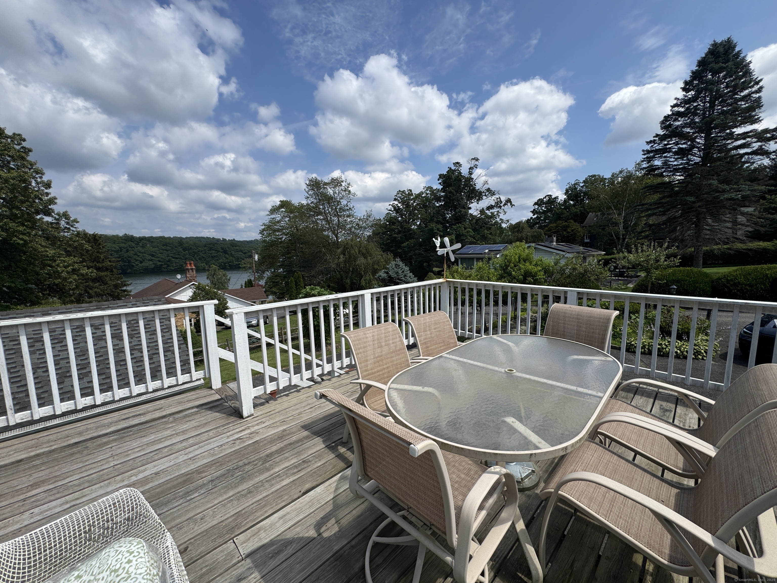 Charming Ranch Home in the Beautiful Lake Community on Candlewood Lake in New Fairfield, CT. Don't miss this fantastic opportunity to own a charming ranch-style home that features hardwood flooring throughout, a spacious eat-in kitchen with tile flooring, living room with beautiful stone fireplace, perfect for cozy evenings. The home offers one bedroom, a full bathroom, den/office, with potential for future expansion. This home offers great potential as a vacation home, investment property, or full-time residence. The property boasts a level yard, two car detached garage, shed, rooftop deck with panoramic views of Candlewood Lake, and an abundance of fruit trees to include apple, pear, peach, plum, and fig, as well as a fenced in garden, all with lake views. The detached two-car garage provides added storage and convenience. Whether you're looking for a peaceful weekend retreat or a year-round residence, this home offers the best of lake living in a quiet, family-friendly neighborhood. There is no dock or beach/neighborhood amenities included with this home.