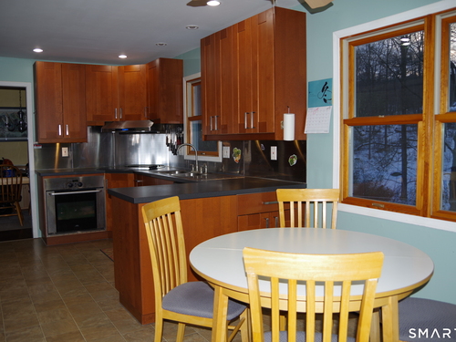 Bright, well built Colonial located in an extremely convenient neighborhood, close to Routes 7 & 84, major retail shopping, schools, parks and most facilities. The dwelling is situated on a rolling parcel, with a level, open front yard and private wooded area with a scenic brook to the rear. The functional & livable floorplan features a remodeled eat-in kitchen, a family room with vaulted, beamed ceilings and a fireplace. The upper level includes 4 bedrooms & 2 full baths. The full basement, with a 2 car built-in garage, is partially finished with a rec room and den. The home is heated with a newer {'22) propane hot water system with on demand water heater. The well pump is new ('25}. A large deck & screened extend off the rear of the dwelling. The paved driveway offers ample parking.