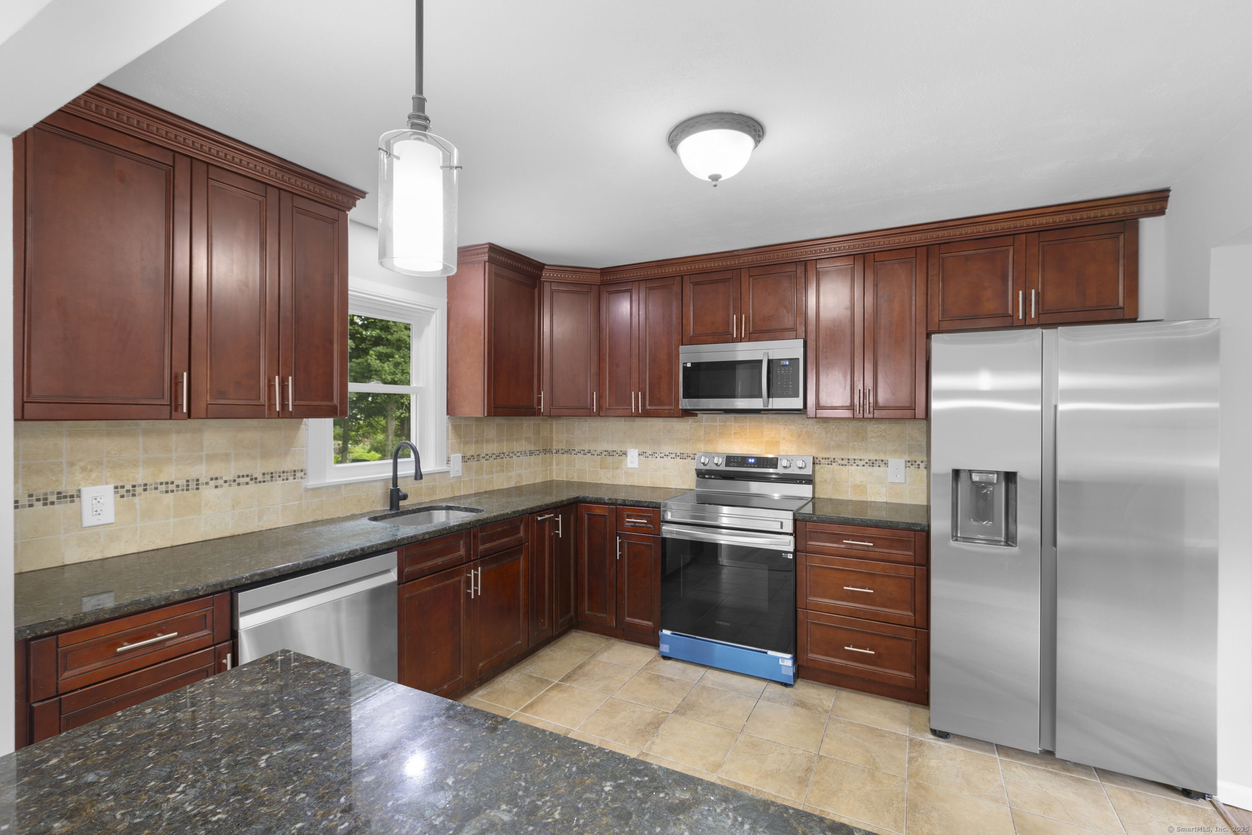 Prepare to be impressed by this truly outstanding and beautifully cared for home, nestled on a lovely .49 acre level lot with tranquil wooded privacy in the highly desirable town of Bethel, CT. This property represents incredible value, having undergone extensive, high-quality renovations. You'll benefit from major updates including a new roof, new siding, and new windows, providing peace of mind and energy efficiency for years to come. The interior showcases thoughtful upgrades, featuring new appliances in the kitchen and a cozy new propane fireplace for those chilly evenings. Even the garage doors are brand new! Located on, a wonderful side street, you'll enjoy both quiet living and unparalleled convenience with easy access to Route 6 and the charm of downtown Bethel. Commuters will appreciate the proximity to I-84 (minutes away) and the short drive to the Bethel Metro-North commuter rail station. With town sewer connected this home simplifies your move. Discover the perfect blend of modern comfort, excellent location, and exceptional value. Schedule your visit today and experience the best of Bethel living!