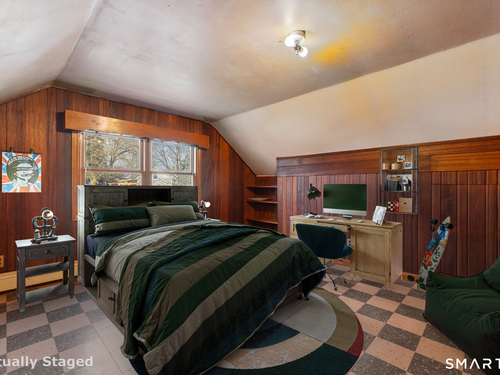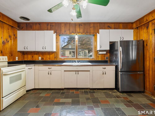 Offered for the first time, this cherished family home presents an opportunity to own a solid property with exceptional bones and endless potential. Featuring many original finishes and fixtures, this 4-bedroom, 1-bath home is ready for your personal touch and creative vision. The home showcases classic mid-century details throughout, including distinctive Youngstown steel kitchen cabinets. Popular in the post-WWII era, these cabinets were often crafted from recycled ships, tanks, and planes, making them not only a unique piece of history but also incredibly durable. The kitchen is further enhanced by slate flooring, offering rich, earthy tones and timeless character. Tongue-and-groove paneling adds warmth and rustic charm while also providing enhanced insulation and soundproofing. The flexible floor plan includes two bedrooms on the main level, one of which could easily function as a dining room, and two additional bedrooms upstairs with a cedar closet. An enclosed back porch provides extra living space, ideal for an indoor garden, family room, or relaxing retreat. The fenced backyard is perfect for gardening, pets, or future outdoor entertaining. Conveniently located near transportation and major amenities, this home represents an incredible value and a wonderful opportunity to restore and customize a lovingly cared-for property. Being sold AS-IS. *Some photos have been virtually staged*