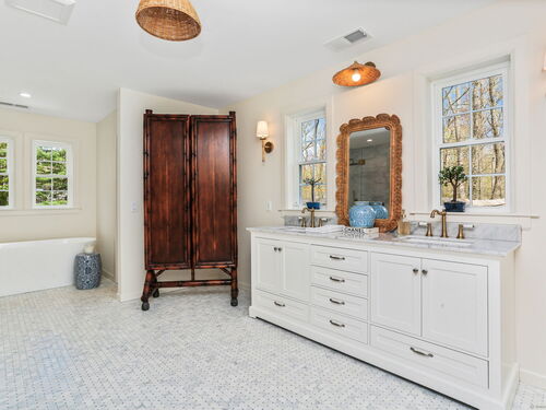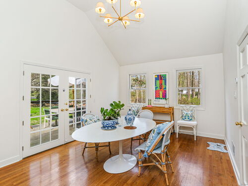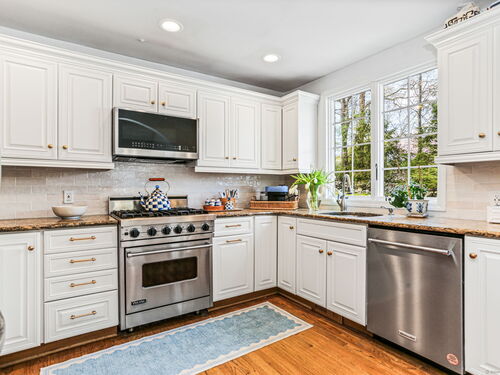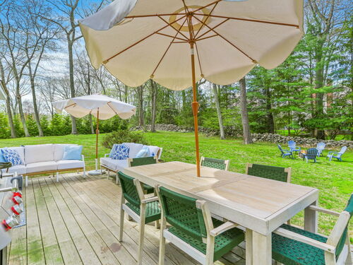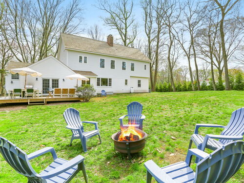 Classic charm meets modern living in this updated colonial, set on over an acre with a stunning wood roof, stone walls, and a circular driveway. Entirely new second floor added. Now you have 4+ bedrooms, 4 full baths, and flexible living spaces on both floors. The main level features a spacious living room, den/office, guest suite/office, large playroom, eat-in kitchen, family room with the kitchen, bar room, and formal dining room. Upstairs, the primary suite offers vaulted ceilings, dual walk-in closets, and a marble double shower. You'll find a bedroom/nursery off of the primary suite plus an easy way to make a third bedroom. There is ample yard space to add a pool or party barn. Just minutes from local golf and tennis clubs and easy access to the Allwood neighborhood. Curb appeal, privacy, and possibility - this is the one.