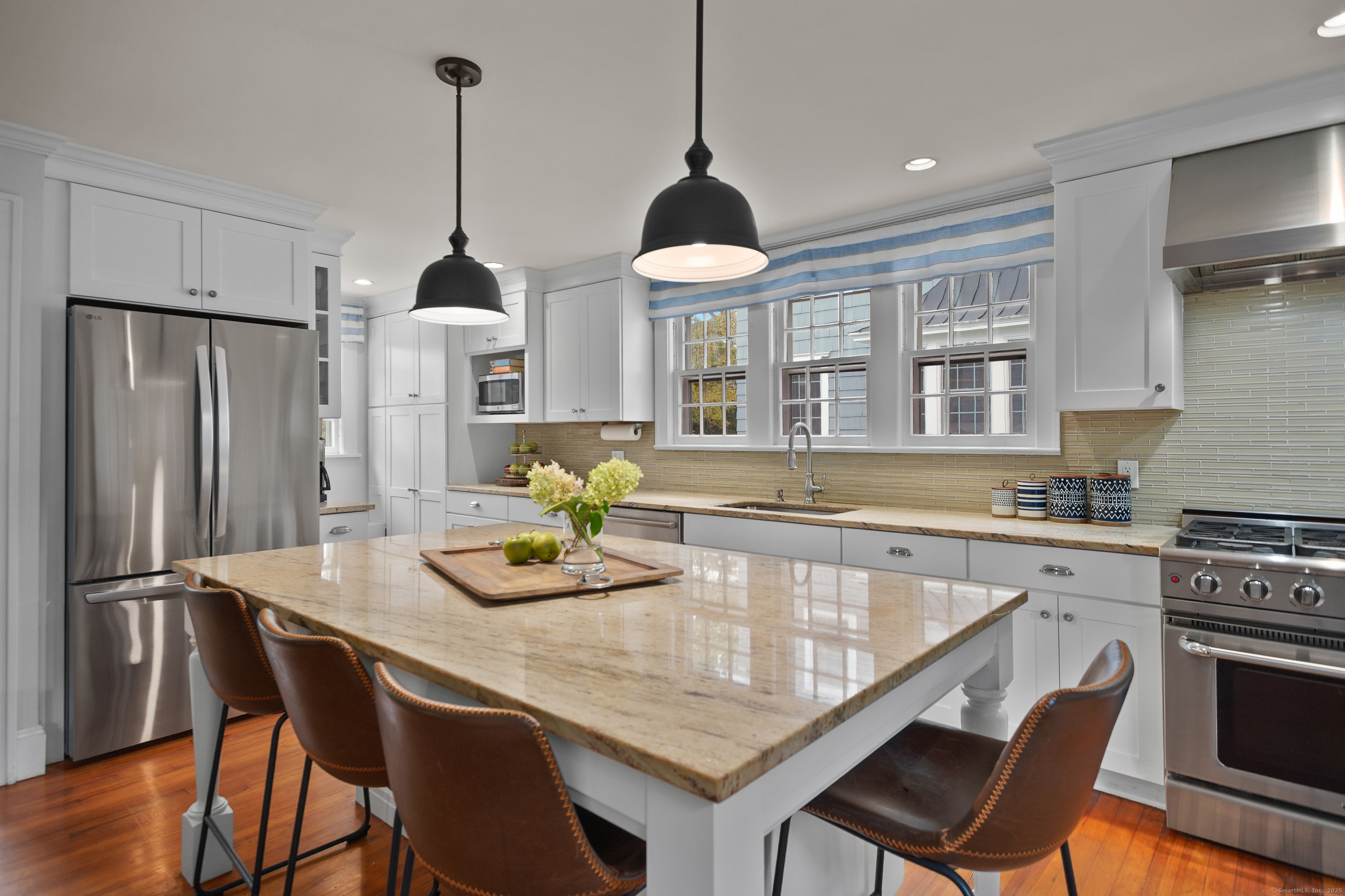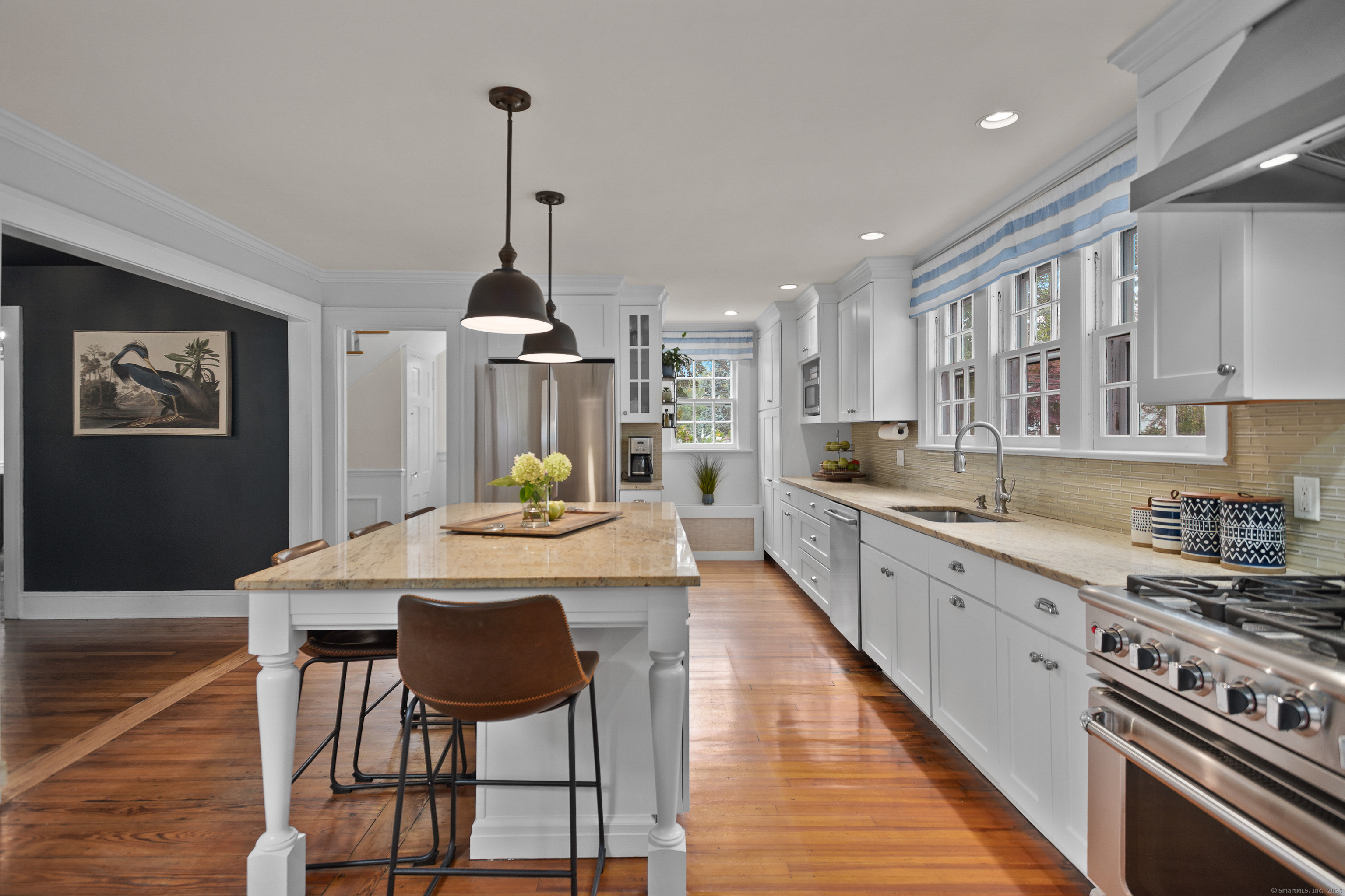 Welcome to 112 Eastwood Road ~ nestled on one of Stratfield's most sought after streets, this timeless classic 1929 Colonial home offers 5 bedrooms and 3.5 baths. Welcome guests onto your front porch and into the gracious foyer that sets the tone for this home offering both classic vibes and modern comfort. You won't believe the generous room scale this home offers, coupled with the amount of flexible entertaining spaces. Natural light pours through the large windows highlighting the beautiful living room with fireplace. The stunning chef worthy eat in kitchen flows seamlessly into the dramatic family room. From the graceful stairwell to the second level you have the primary bedroom with adjoining primary bath and 3 additional spacious bedrooms serviced by a hall bathroom. Need a private place for guests? Third floor has a perfect guest suite with a full bathroom. Outside, the park like property offers the perfect setting for entertaining and relaxing. Loved by the current owners, this special home offers charming built ins, spacious mudroom with laundry and endless opportunity in the unfinished lower level. Make Stratfield Village your new home - known for its cherished sense of community and Apple Pie charm as quoted by the NYTimes. Gas Line to home already exists for an easy conversion if needed.