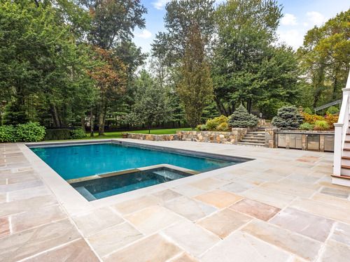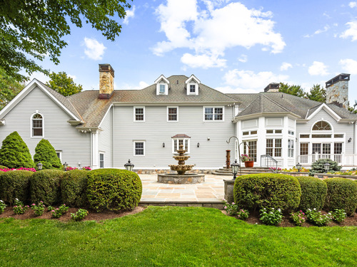 Just off Ponus Ridge and moments from Talmadge Hill Train Station, this exceptional Colonial home offers easy access to the Merritt and downtown amenities. Set on 1.67 acres of beautifully landscaped, gated grounds, the property boasts a newly renovated, resort-style gunite pool and spa, an oasis for outdoor living. The professionally manicured backyard is complemented by a stunning bluestone patio, complete with a dramatic fountain centerpiece, ideal for entertaining. This home welcomes you with a grand two-story foyer, leading to an open-concept Kitchen's By Deane chef's kitchen featuring high-end appliances, including dual refrigerator/freezers, a butler's pantry, and a sun-filled breakfast nook. The adjacent family room offers a cozy gas fireplace and French doors that open to a balcony overlooking the serene pool area. The second floor showcases a sophisticated primary suite with custom built-ins, a spacious walk-in closet, and an updated, spa-inspired bath complete with a heated floor and towel rack. Three additional bedrooms and two full baths provide ample family space. A private staircase leads to a bedroom suite, complete with a sitting room and full bath, ideal for an in-law or au pair suite. The lower level has 2334 addt'l finished SqFt with a gym area, a living space with a cozy fireplace, and a wine cellar. In addition, there is a 3-car garage, a full house generator and separate storage shed. This meticulously maintained estate is truly an extraordinary prope