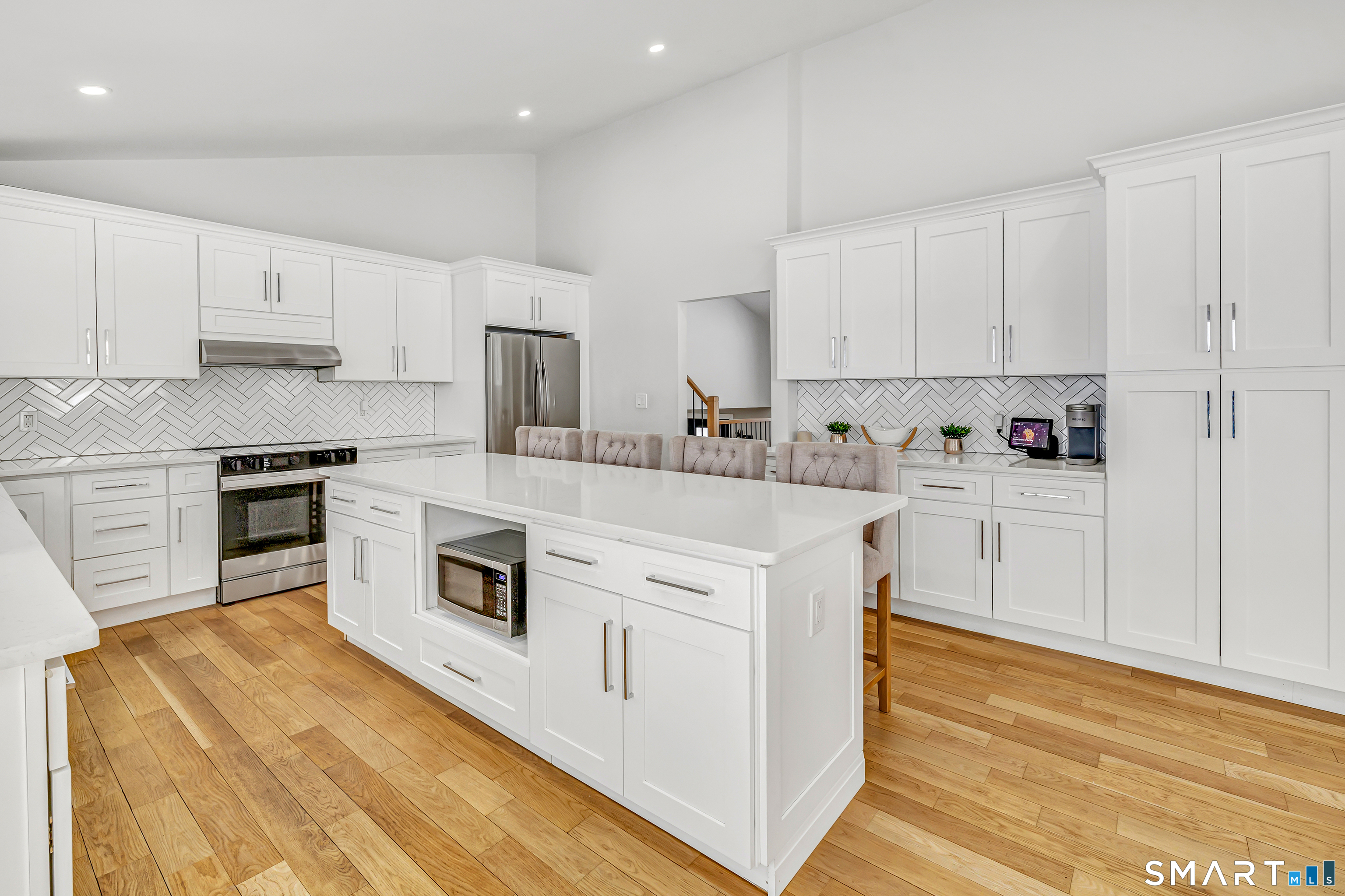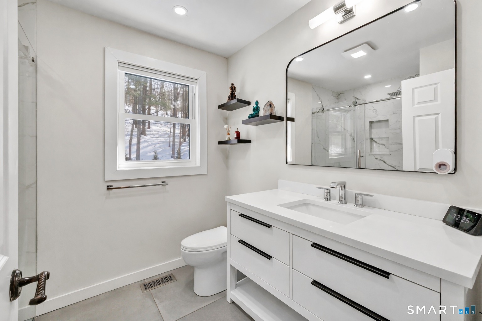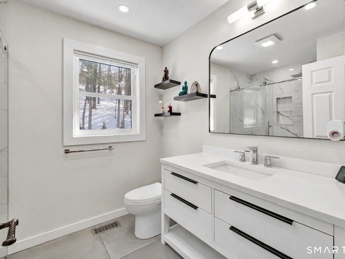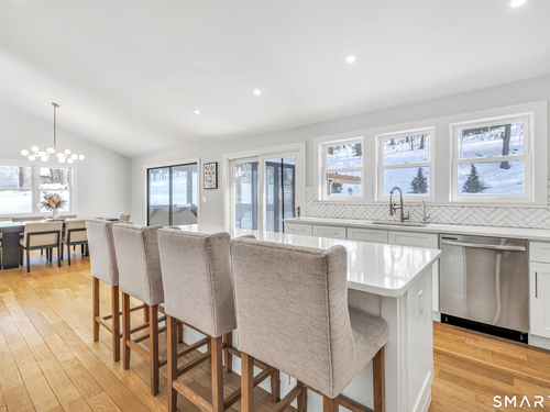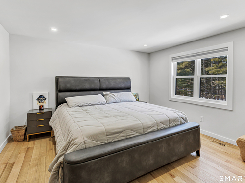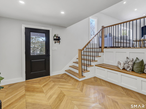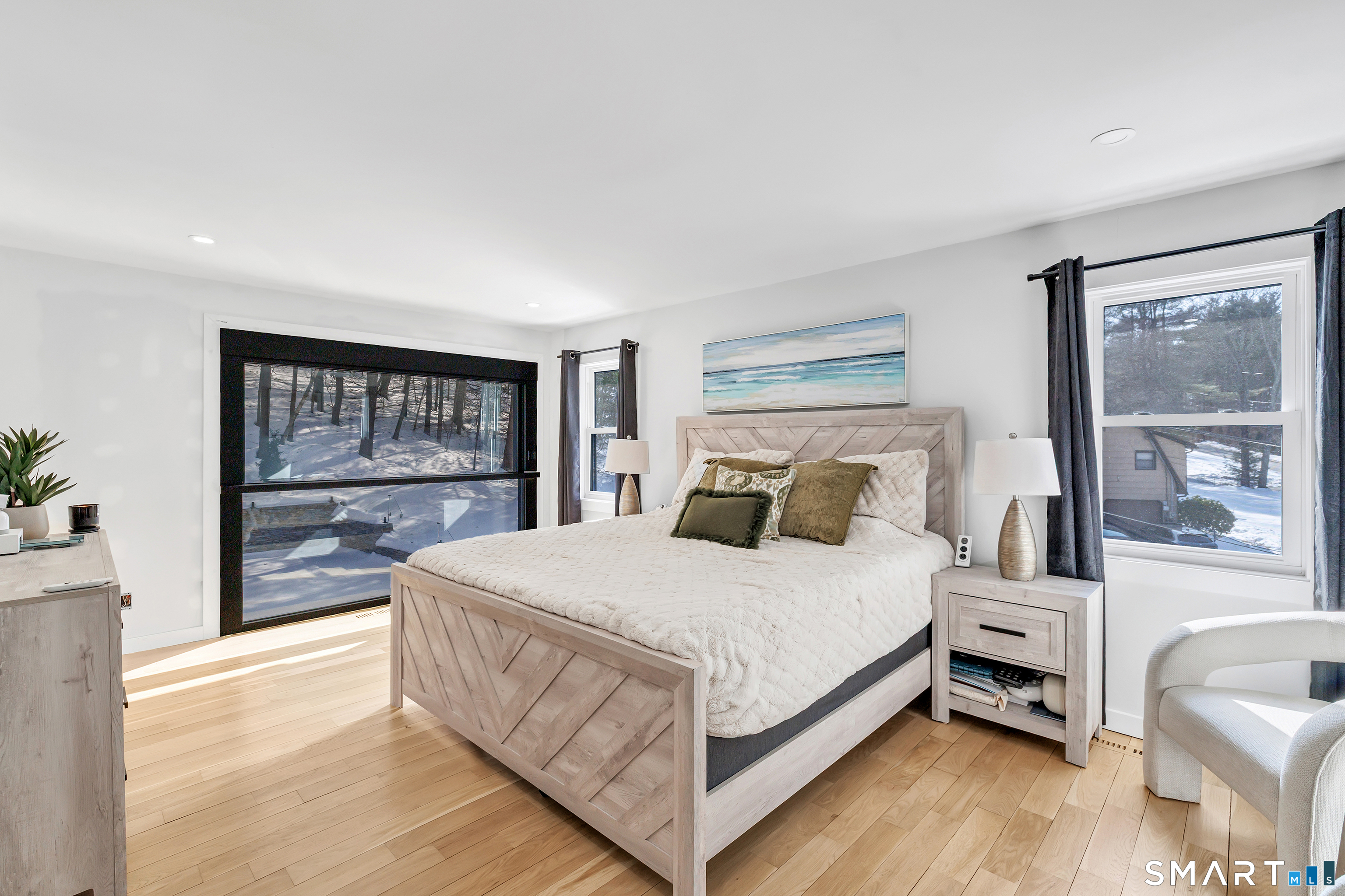 Beautifully remodeled and thoughtfully upgraded, this modern Monroe home offers the perfect blend of comfort, design, and nature. Featuring 4 bedrooms and 3 fully updated bathrooms, the interior showcases white oak hardwood floors, neutral tones, a bright white kitchen with granite surfaces and newer appliances, and a spacious living room with fireplace. The dining area opens to a three seasons porch, overlooking peaceful wooded views, ideal for enjoying birds and seasonal scenery. Since purchasing, the owners have invested in exceptional lifestyle enhancements, including a professionally designed backyard patio with stone and glass fencing, brand new retaining walls, and an outdoor gazebo and hot tub, creating a private retreat. The three seasons porch boast brand new windows, brand new sliding doors and bifold custom doors. The main bedroom features a newly installed electric window to maximize natural views along with a custom-built master closet. Additional upgrades include a finished garage floor, electric vehicle charger, and lease-to-own solar panels for energy efficiency. Set in the sought-after town of Monroe close to parks, trails, shopping, and top-rated schools, this move-in-ready home offers modern updates, privacy, and everyday functionality. Simply unpack and enjoy.