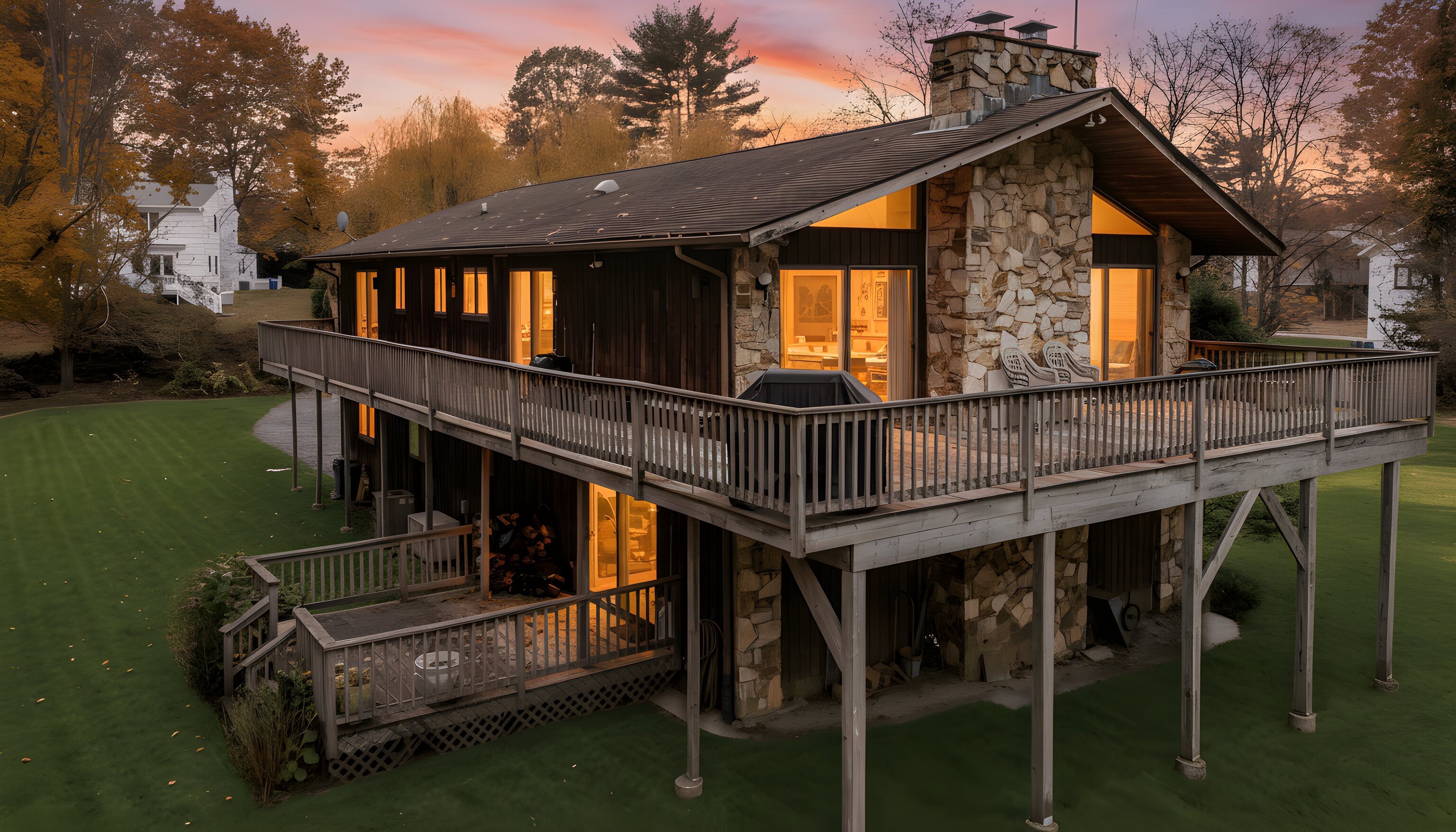 House sits on 1.29 acres back lot off private road boarding with wooded and wetlands, tongue and groove cedar siding with stone veneer, asphalt roof, central a/c, heat and central vacuum, vaulted ceilings, stone veneer fireplaces, second floor deck wrapping around side and back overlooking wooded and wetland areas, five-minute drive to I95 or Merritt Parkway, five-minute walk to elementary school. NOTE: HOUSE FOR SALE AS IS!!!