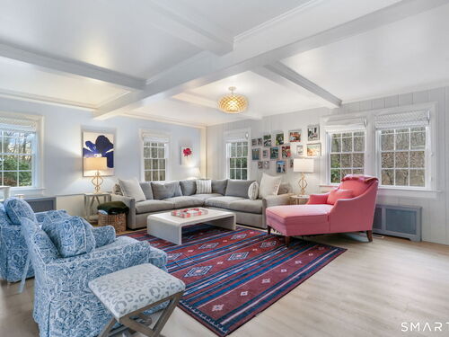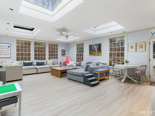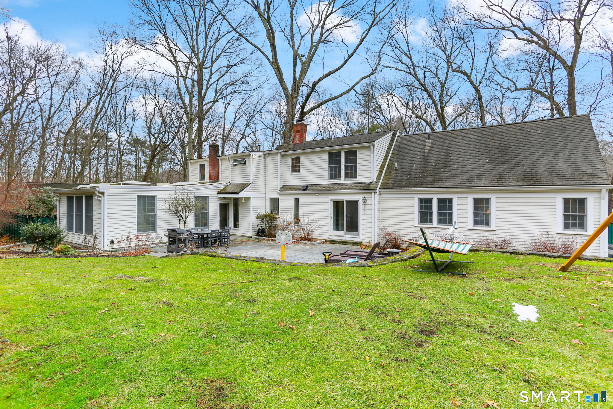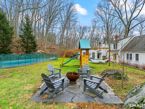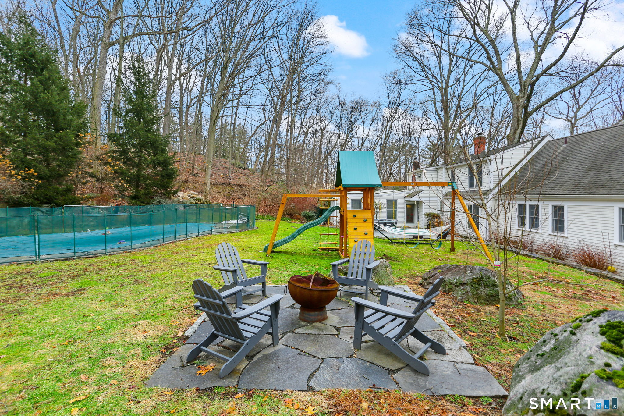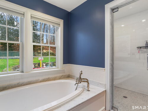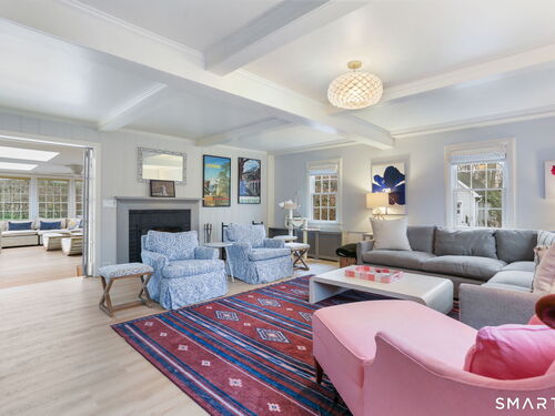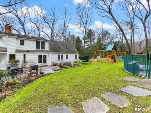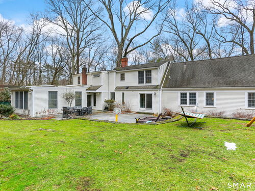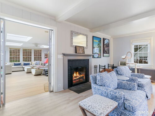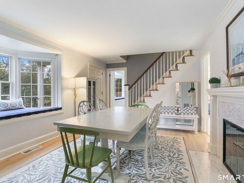 Beautifully updated 4-bedroom home with 4 full baths, set on a private, park-like acre in one of North Stamford's most convenient neighborhoods. The thoughtfully designed layout features a gracious formal living room with fireplace and an oversized dining room with fireplace-ideal for both elegant entertaining and everyday gatherings. The heart of the home is the expansive family room, filled with natural light from abundant windows and skylights, and offering seamless access to the patio, beautifully landscaped backyard, and pool. The updated eat-in kitchen is a chef's delight, featuring quartz countertops, a high-end stainless-steel gas range, and direct walkout access to the patio for easy indoor-outdoor living. A full bath conveniently located off this area is perfect for pool guests. The main level also boasts a luxurious primary suite complete with two generous walk-in closets and an oversized spa-like bathroom with soaking tub and steam shower. Upstairs, you'll find a spacious bedroom with en-suite bath, two additional well-sized bedrooms, and finished storage space. Outside, the private backyard retreat shines with a heated, saltwater in-ground gunite pool and mature landscaping that creates a serene escape. Additional highlights include a detached two-car garage and a full-house generator.