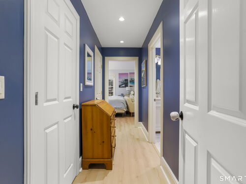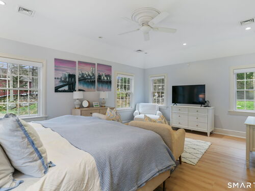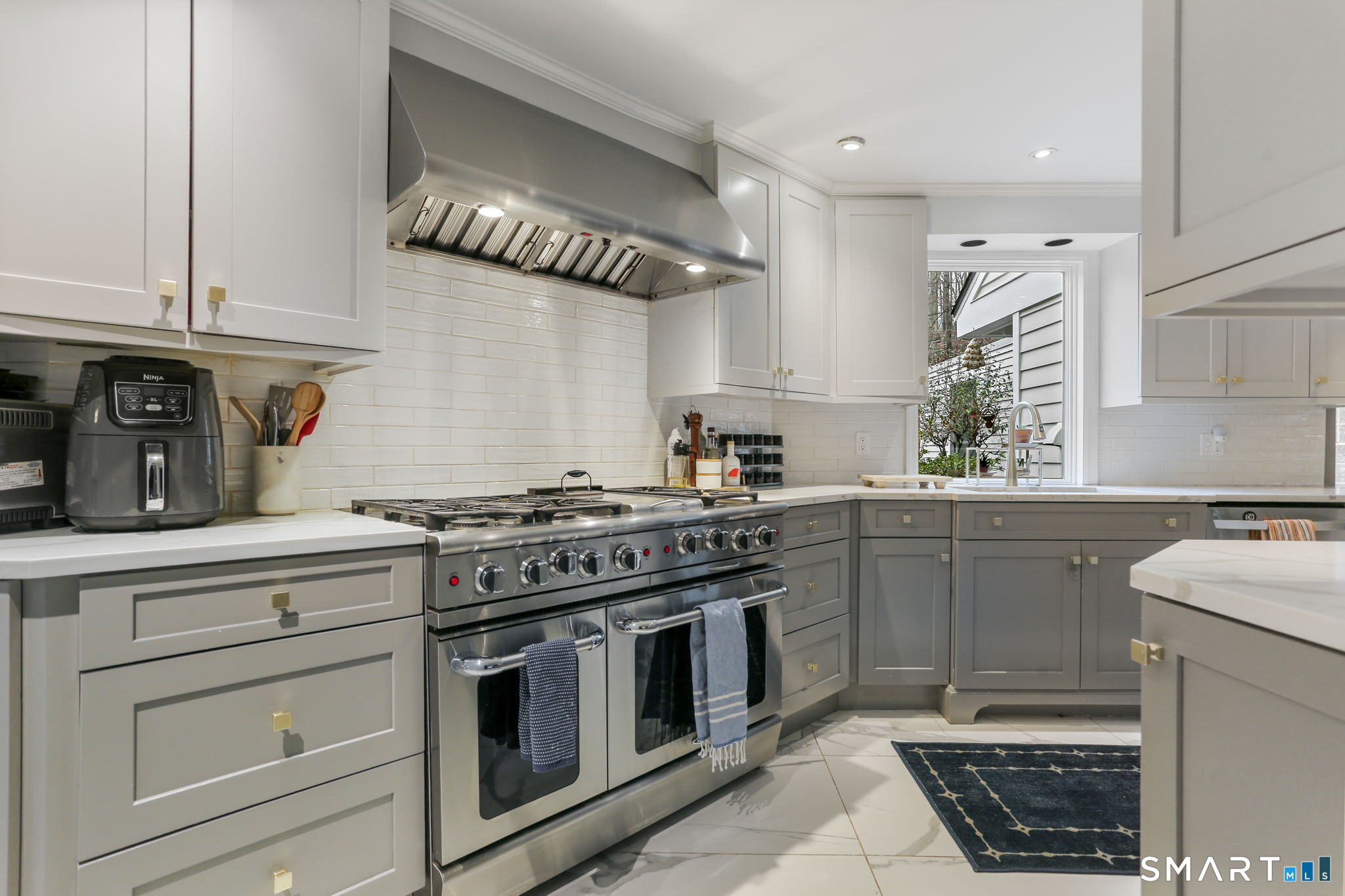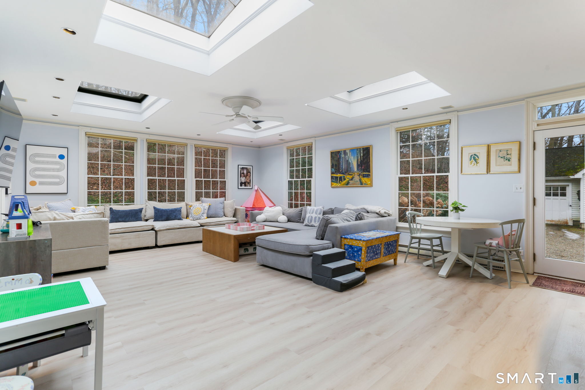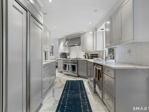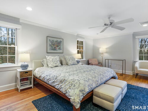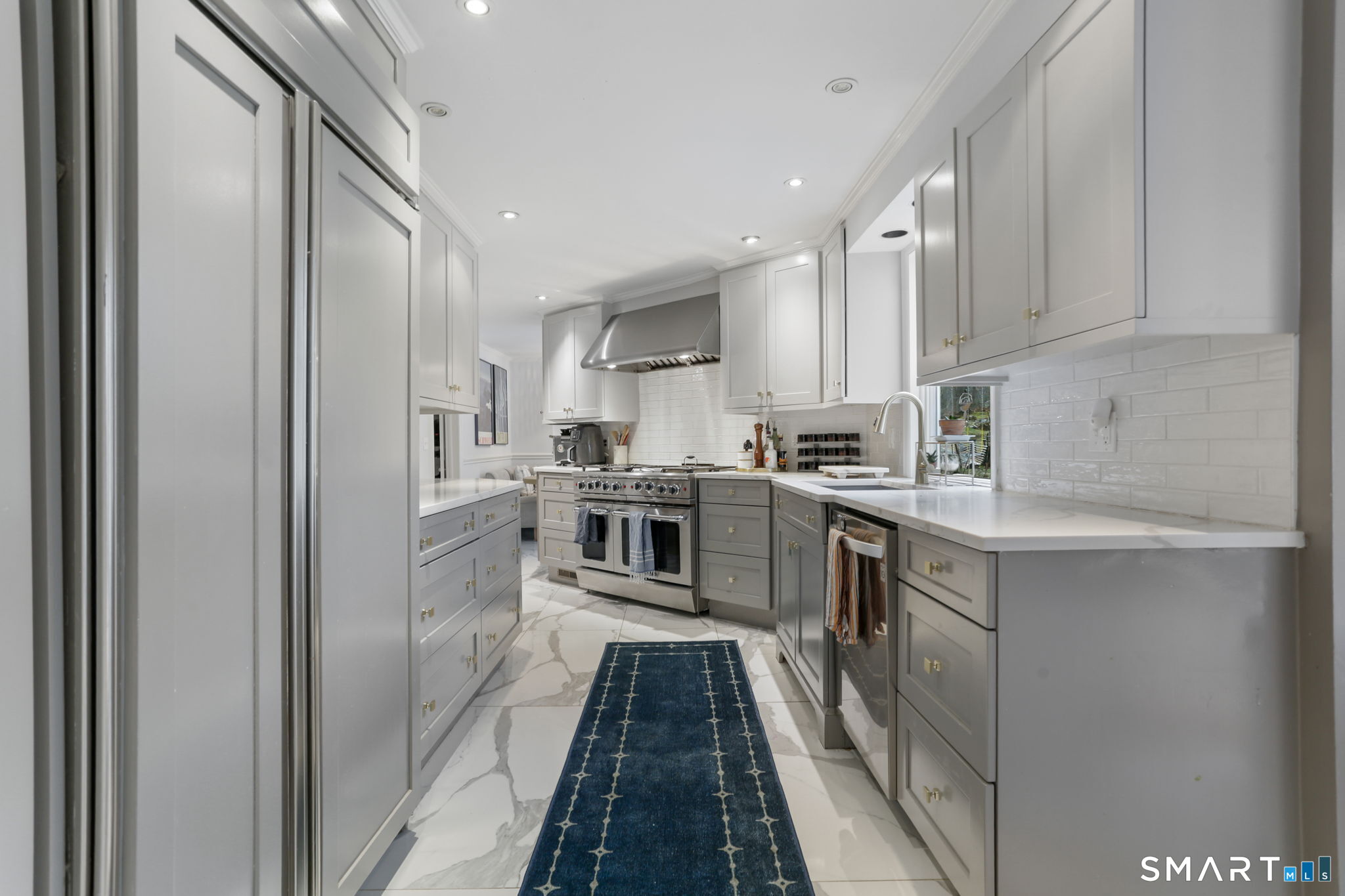 Beautifully updated 4-bedroom home with 4 full baths, set on a private, park-like acre in one of North Stamford's most convenient neighborhoods. The thoughtfully designed layout features a gracious formal living room with fireplace and an oversized dining room with fireplace-ideal for both elegant entertaining and everyday gatherings. The heart of the home is the expansive family room, filled with natural light from abundant windows and skylights, and offering seamless access to the patio, beautifully landscaped backyard, and pool. The updated eat-in kitchen is a chef's delight, featuring quartz countertops, a high-end stainless-steel gas range, and direct walkout access to the patio for easy indoor-outdoor living. A full bath conveniently located off this area is perfect for pool guests. The main level also boasts a luxurious primary suite complete with two generous walk-in closets and an oversized spa-like bathroom with soaking tub and steam shower. Upstairs, you'll find a spacious bedroom with en-suite bath, two additional well-sized bedrooms, and finished storage space. Outside, the private backyard retreat shines with a heated, saltwater in-ground gunite pool and mature landscaping that creates a serene escape. Additional highlights include a detached two-car garage and a full-house generator.