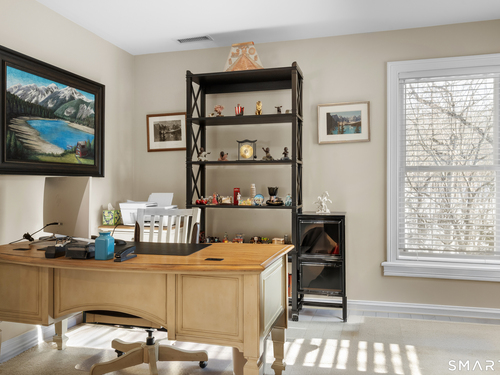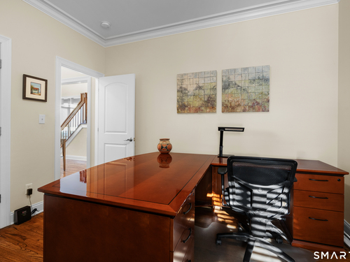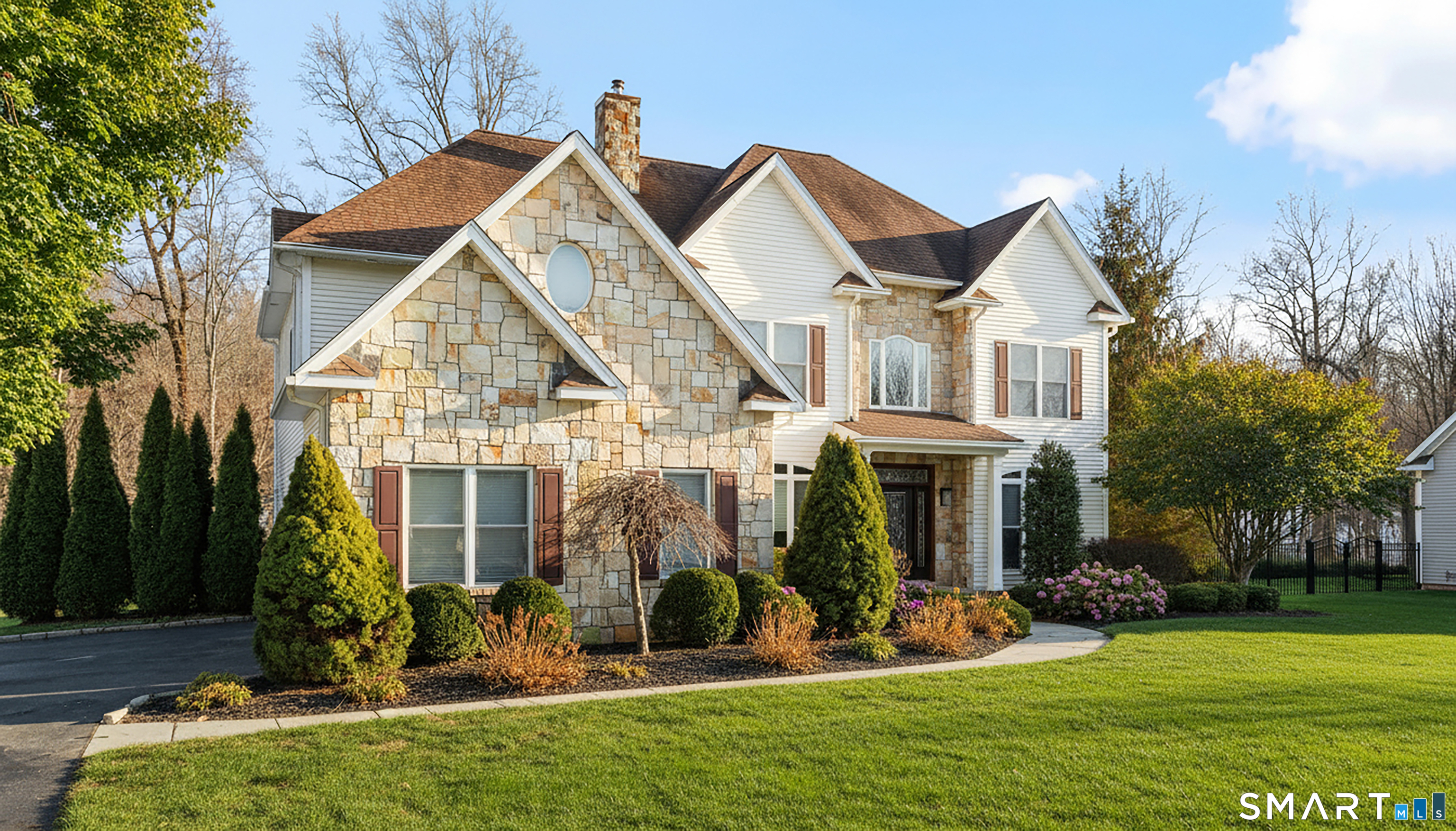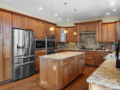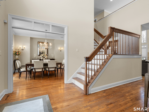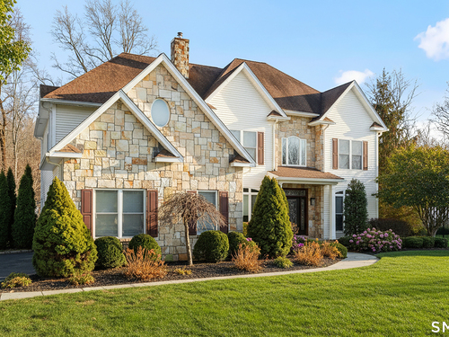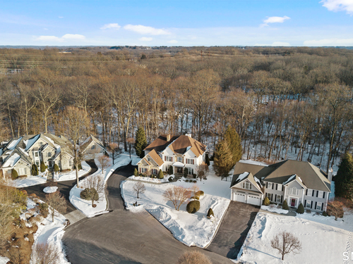 Nestled on a professionally landscaped cul-de-sac in the desirable Huntington Woods subdivision, this stunning 5-bedroom, 4.5-bath Colonial offers over 4,000 square feet of thoughtfully designed living space - backing directly to 30+ acres of preserved wooded open space for unmatched privacy and natural views. A dramatic two-story foyer welcomes you inside, highlighted by an elegant staircase and an upper-level walkway overlooking both the foyer and the family room. Expansive Palladian windows flood the home with natural light while framing serene backyard views. The modern center-island kitchen is designed for both everyday living and entertaining, featuring a Wolf double wall oven and seamless flow into the main living areas. Hardwood floors and 9+ foot ceilings enhance the entire first floor, which also includes a versatile junior primary suite with full bath - ideal for guests, multigenerational living, or a private home office. Upstairs, the spectacular primary suite offers a luxurious retreat complete with a beautifully appointed bath and generous space to unwind. The walkout lower level expands the home's functionality with a spacious family room, game room with custom bar, exercise room, and additional half bath - creating the perfect setting for entertaining or recreation. Located in one of Huntington's most sought-after neighborhoods, this home blends scale, design, and setting - offering privacy, convenience, and exceptional value.