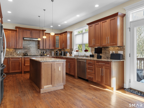 Kitchen (Main Level)Granite Counters, Dining Area, Island, Hardwood Floor