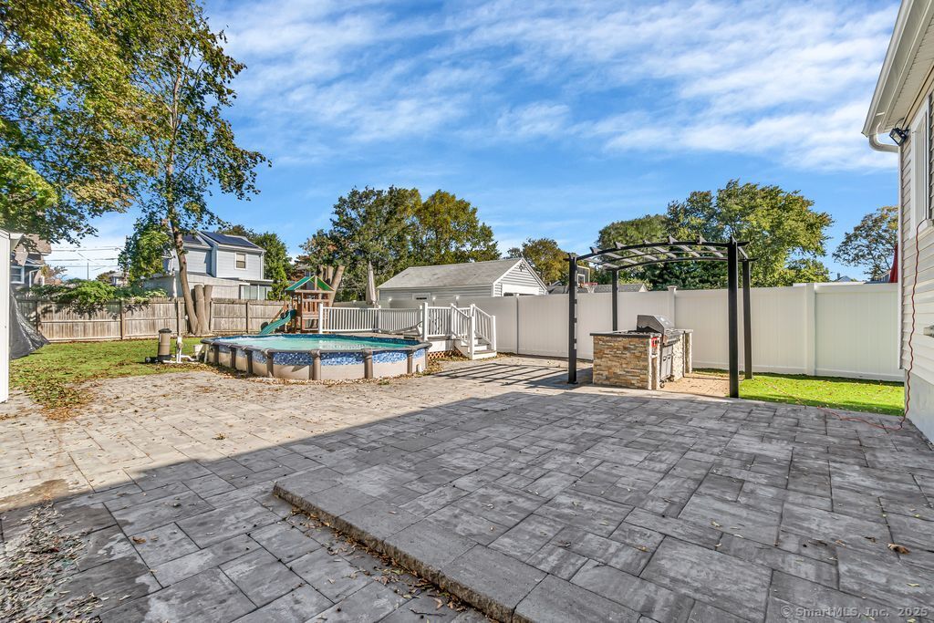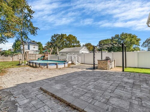 Discover your dream home in this stunning remodeled colonial! Upon entering, you'll find a welcoming living room adorned with recessed lights and a cozy fireplace, setting the perfect ambiance for relaxation. Updated kitchen with stainless steel appliances. Offering three spacious bedrooms, 2.5 modern tiled bathrooms. Fully finished basement offering possible in law suite. The backyard is a true retreat! Enjoy summer days in the above ground pool or entertain under the Pergola with a built-in grill. The beautifully crafted stonework enhances both the front entrance and back patio. One detached car garage. Fenced in yard. Close to restaurants, parks and highways. Truly a must see!