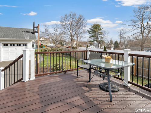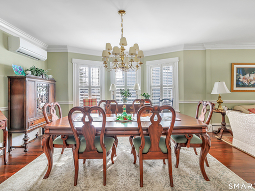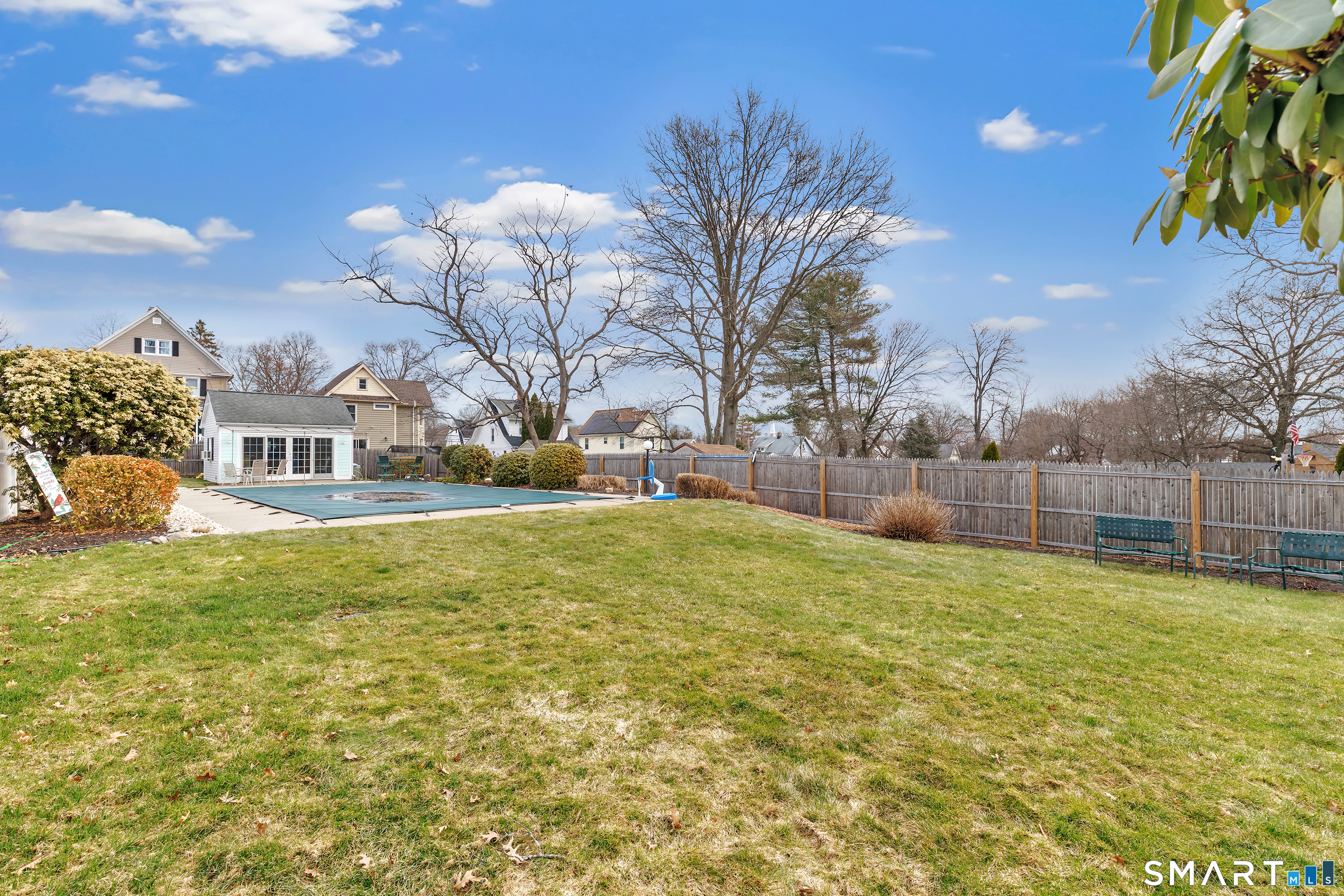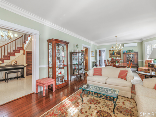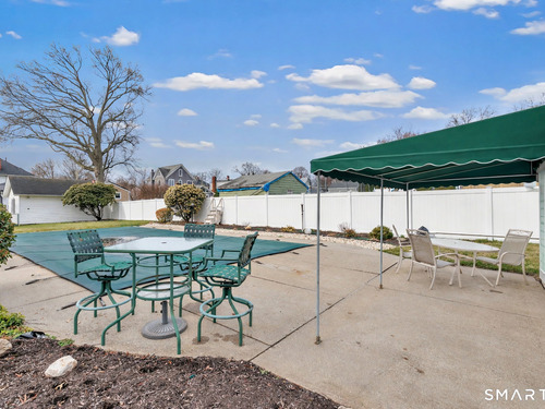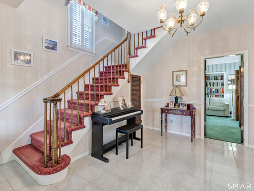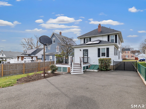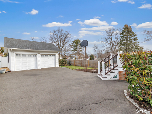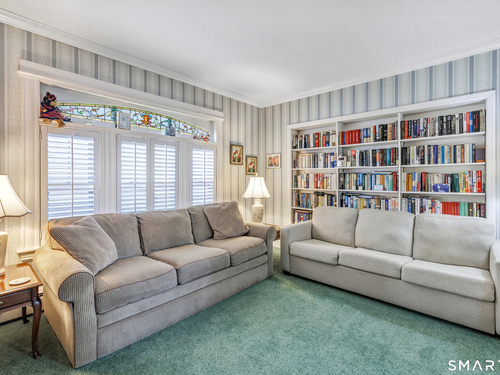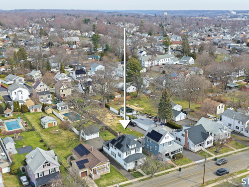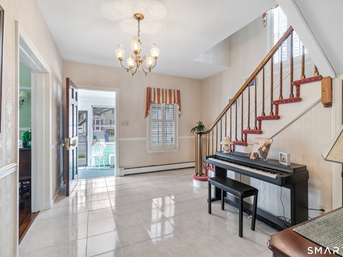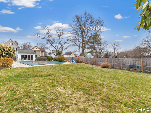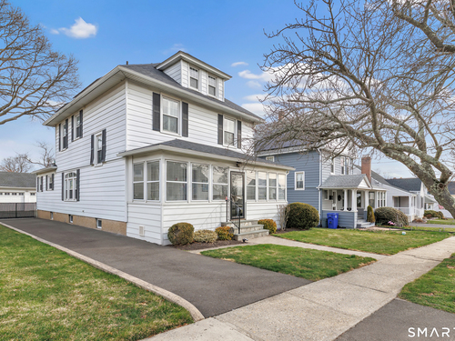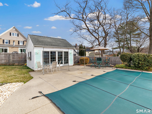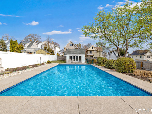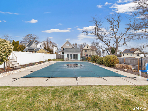 Welcome to a timeless Colonial filled with warmth, character, and over 50 years of pride of ownership. This special home has been lovingly cared for by the same family for 53 years & is now ready for its next chapter. Step inside through the enclosed front porch into a spacious foyer that opens to a bright living & dining room combination featuring recently refinished hardwood floors & impressive 9+ foot ceilings that create an open, airy feel. The main level also includes a cozy den with built-in bookshelves, perfect for a home office or quiet retreat, along with an updated kitchen offering granite countertops and stainless steel appliances. Newer windows throughout the home, most accented with plantation shutters. A full bathroom with a walk-in shower & a convenient stackable washer and dryer complete the first floor. Upstairs you will find three generously sized bedrooms and a second full bathroom. The primary bedroom offers a walk-in closet plus an additional closet. This home also includes an unfinished walk-up attic and a basement with a CT basement system, offering great potential and peace of mind. Major updates include a brand new boiler, split systems added in 2024 for cooling, and a roof only 6 years young & so much more! Step outside to your own private oasis with a fully fenced yard, along with a beautiful in-ground pool & pool house complete with changing area, dry bar & TV. A newer paved driveway leads to a two-car detached gar, completing this incredible home.