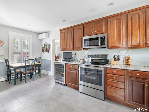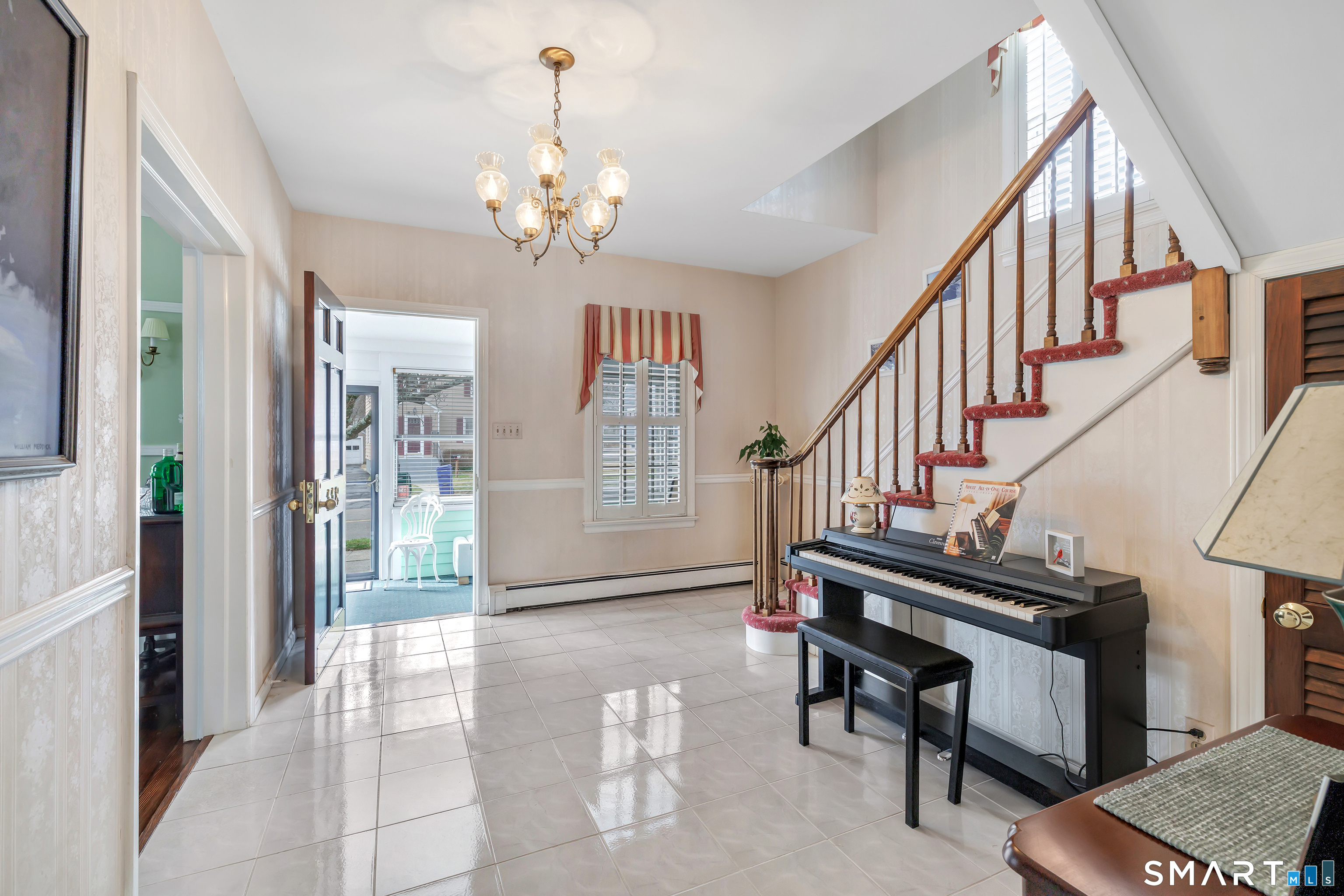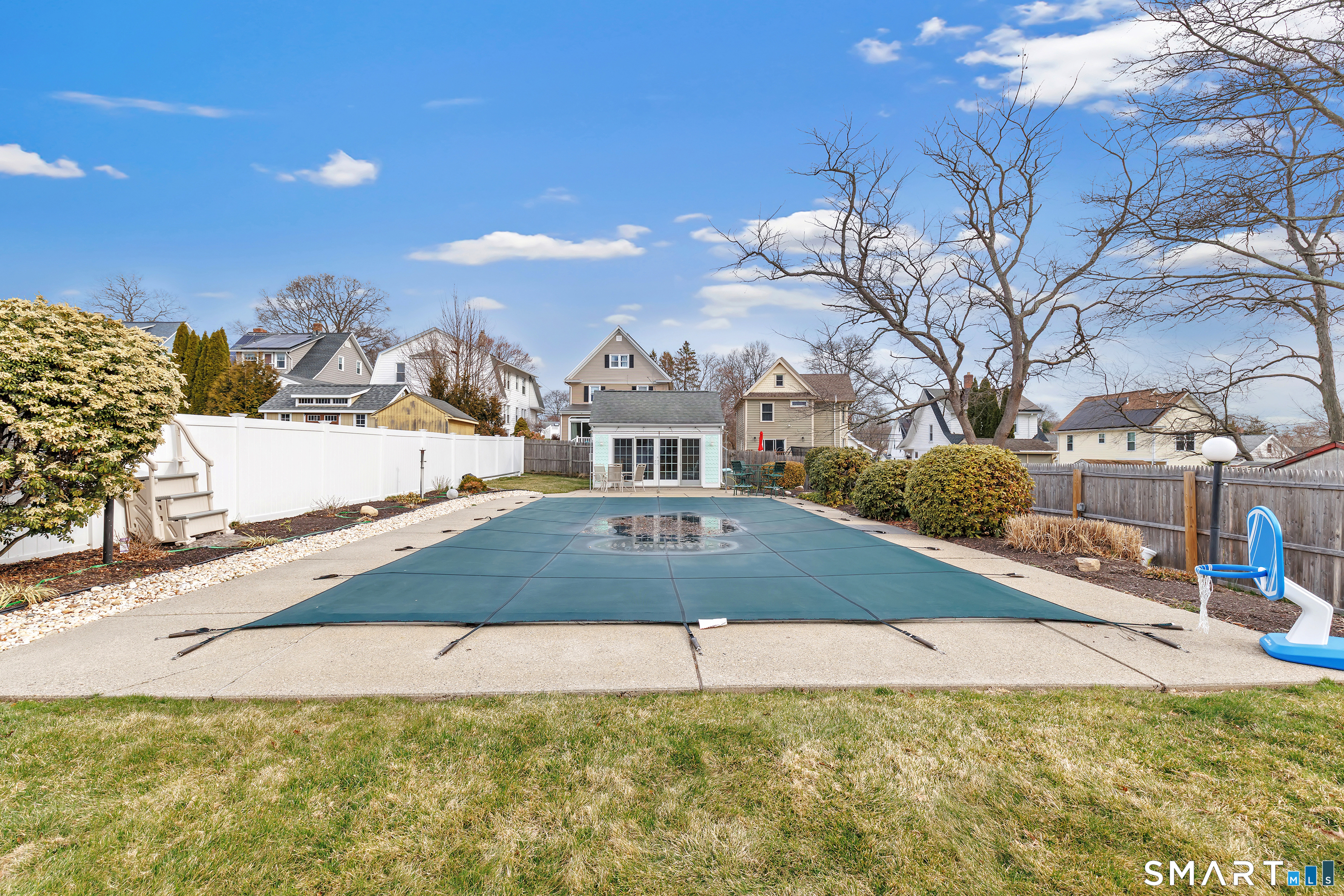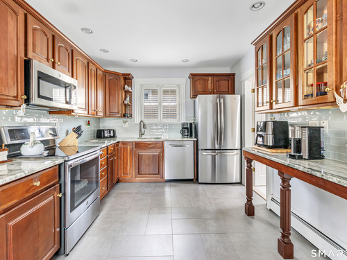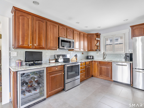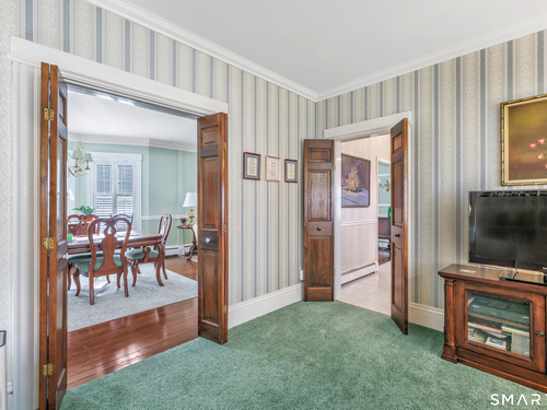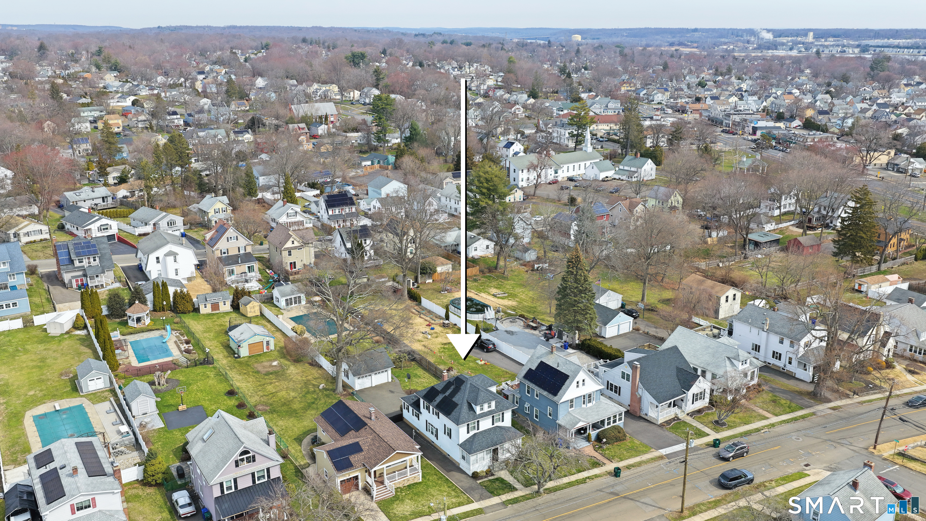 Welcome to a timeless Colonial filled with warmth, character, and over 50 years of pride of ownership. This special home has been lovingly cared for by the same family for 53 years & is now ready for its next chapter. Step inside through the enclosed front porch into a spacious foyer that opens to a bright living & dining room combination featuring recently refinished hardwood floors & impressive 9+ foot ceilings that create an open, airy feel. The main level also includes a cozy den with built-in bookshelves, perfect for a home office or quiet retreat, along with an updated kitchen offering granite countertops and stainless steel appliances. Newer windows throughout the home, most accented with plantation shutters. A full bathroom with a walk-in shower & a convenient stackable washer and dryer complete the first floor. Upstairs you will find three generously sized bedrooms and a second full bathroom. The primary bedroom offers a walk-in closet plus an additional closet. This home also includes an unfinished walk-up attic and a basement with a CT basement system, offering great potential and peace of mind. Major updates include a brand new boiler, split systems added in 2024 for cooling, and a roof only 6 years young & so much more! Step outside to your own private oasis with a fully fenced yard, along with a beautiful in-ground pool & pool house complete with changing area, dry bar & TV. A newer paved driveway leads to a two-car detached gar, completing this incredible home.