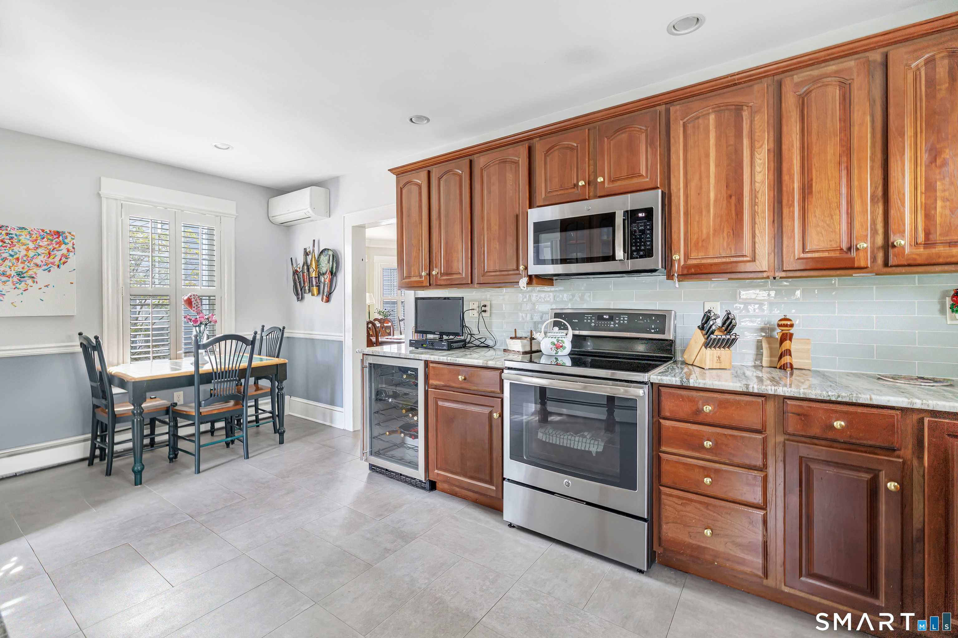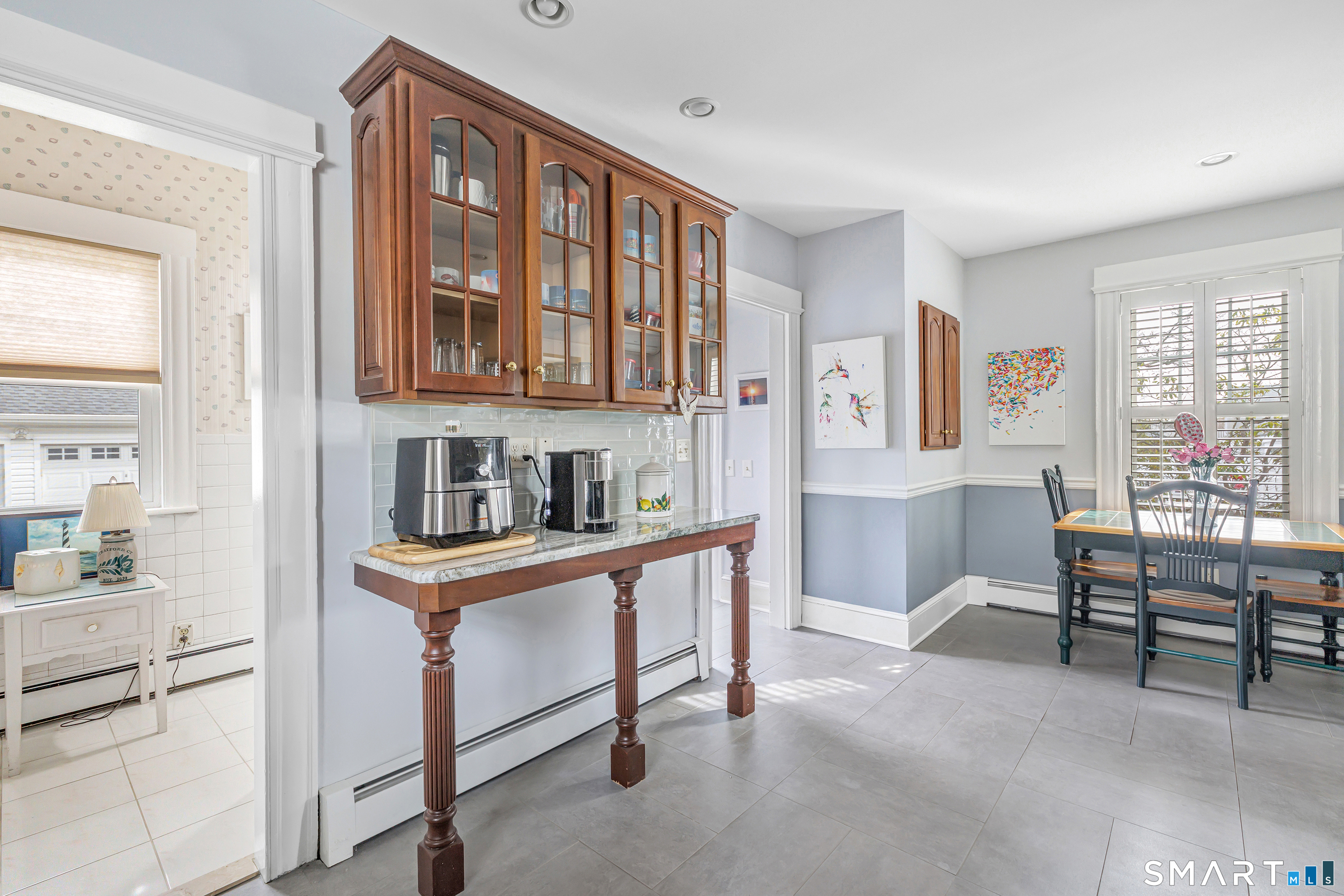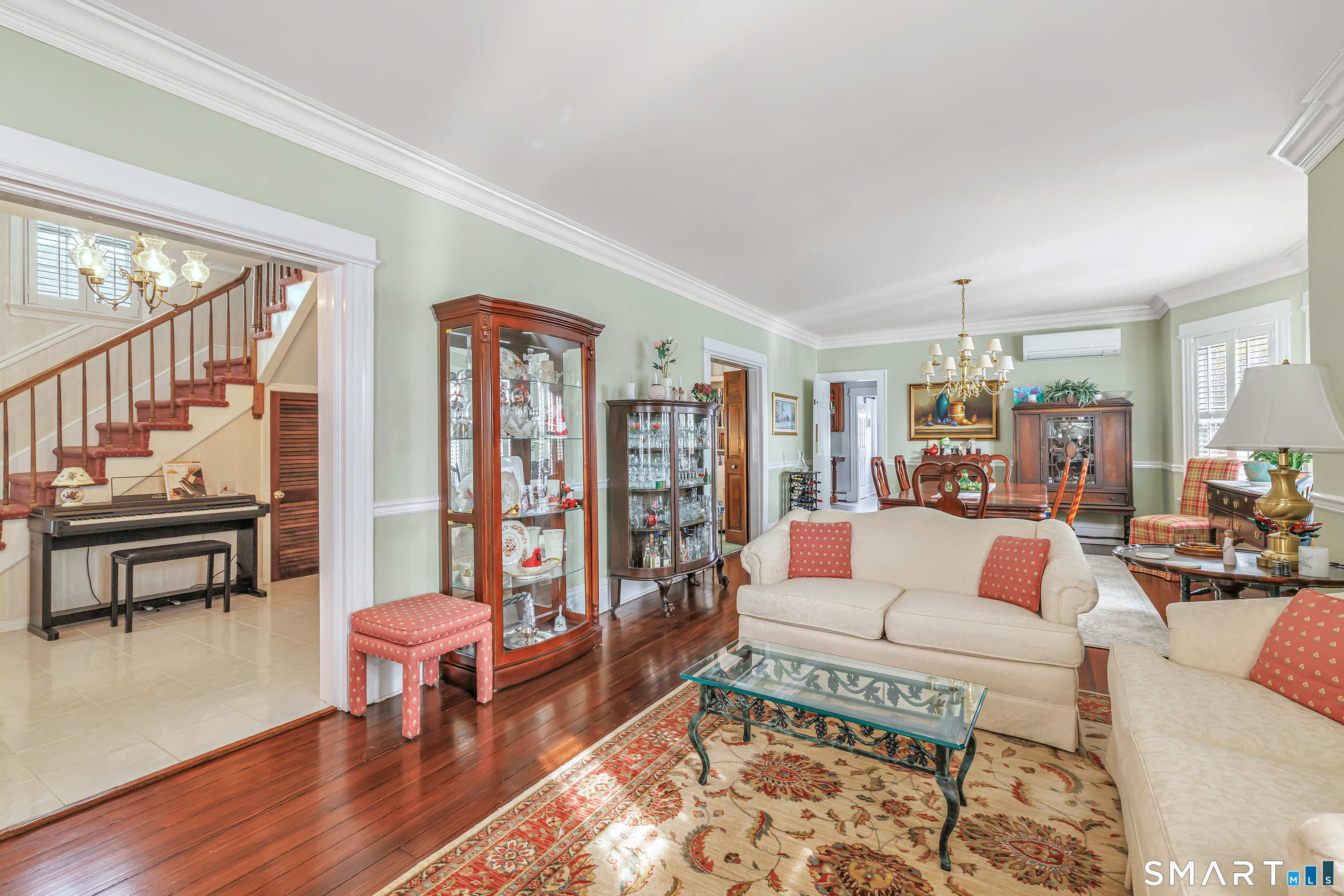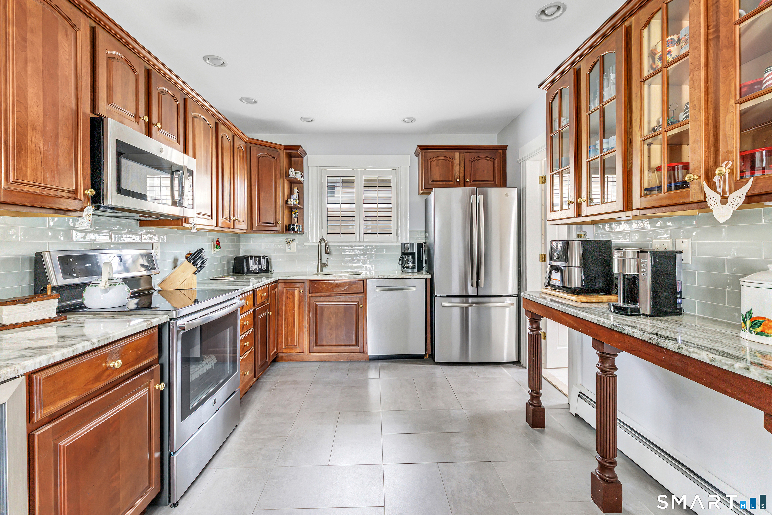 Welcome to a timeless Colonial filled with warmth, character, and over 50 years of pride of ownership. This special home has been lovingly cared for by the same family for 53 years & is now ready for its next chapter. Step inside through the enclosed front porch into a spacious foyer that opens to a bright living & dining room combination featuring recently refinished hardwood floors & impressive 9+ foot ceilings that create an open, airy feel. The main level also includes a cozy den with built-in bookshelves, perfect for a home office or quiet retreat, along with an updated kitchen offering granite countertops and stainless steel appliances. Newer windows throughout the home, most accented with plantation shutters. A full bathroom with a walk-in shower & a convenient stackable washer and dryer complete the first floor. Upstairs you will find three generously sized bedrooms and a second full bathroom. The primary bedroom offers a walk-in closet plus an additional closet. This home also includes an unfinished walk-up attic and a basement with a CT basement system, offering great potential and peace of mind. Major updates include a brand new boiler, split systems added in 2024 for cooling, and a roof only 6 years young & so much more! Step outside to your own private oasis with a fully fenced yard, along with a beautiful in-ground pool & pool house complete with changing area, dry bar & TV. A newer paved driveway leads to a two-car detached gar, completing this incredible home.