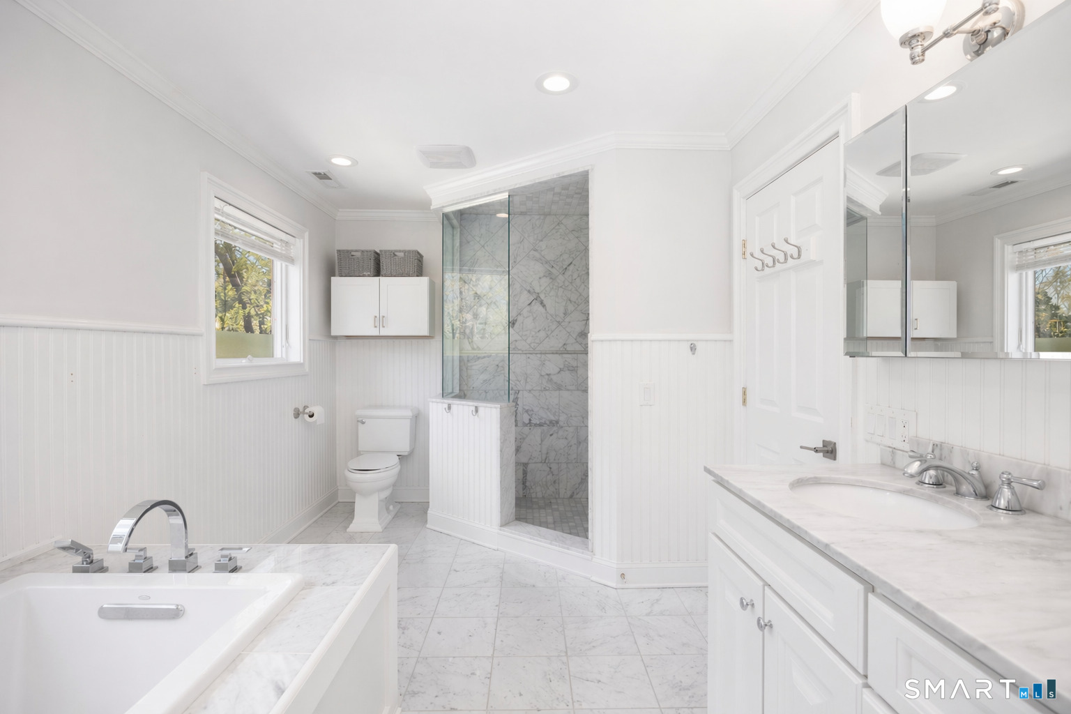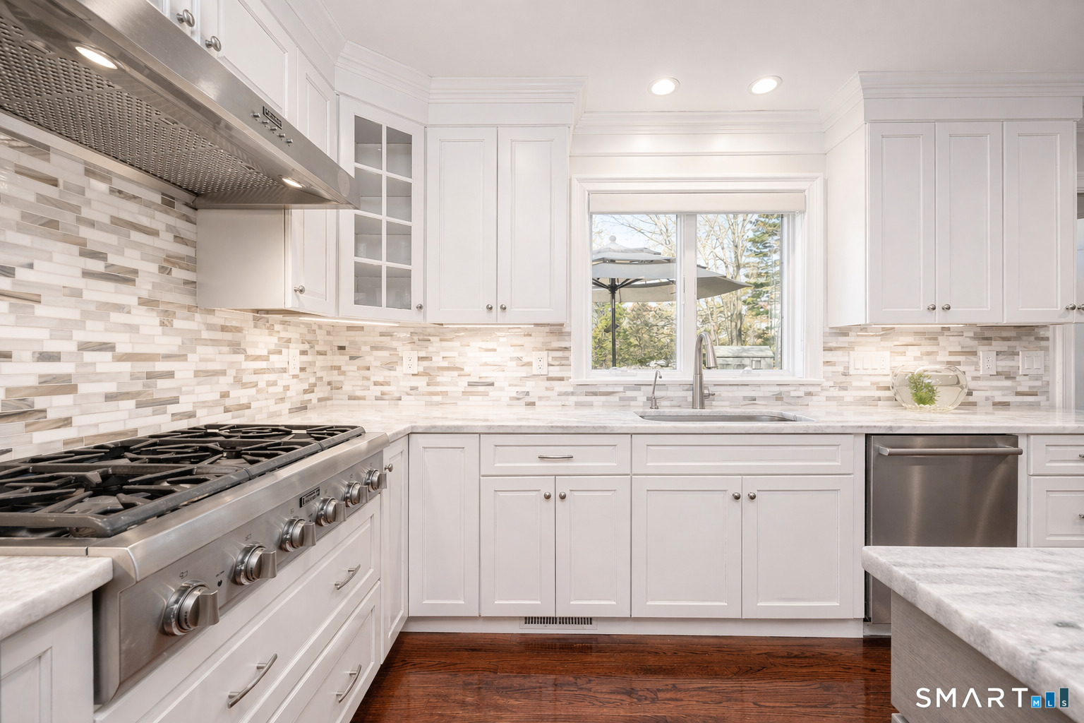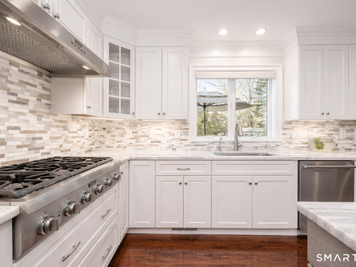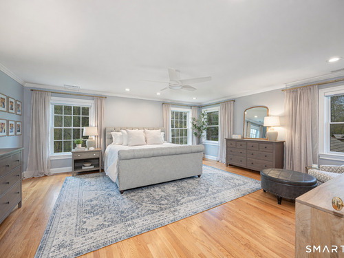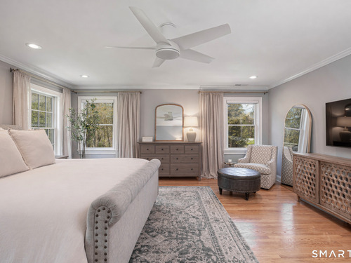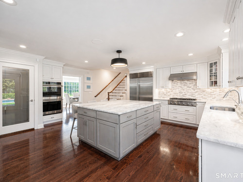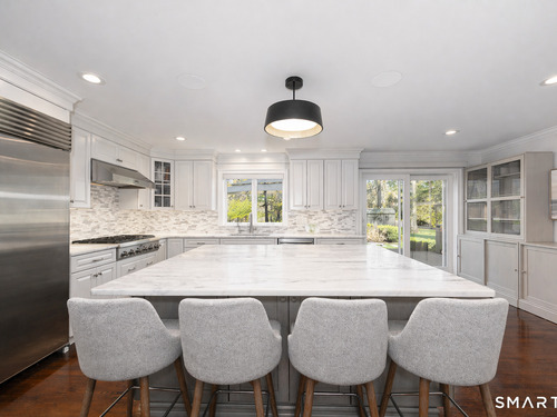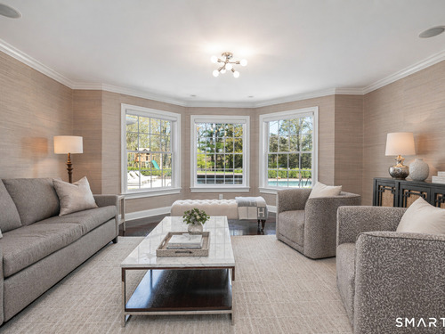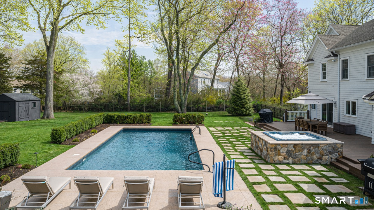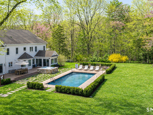 A rare offering in sought-after South Wilton, this exceptional 2009 Colonial pairs over 5,800 square feet of sophisticated living space with the feel of a private retreat. Surrounded by 1.8 acres of park-like grounds, the property offers a serene, resort-like setting just minutes from Rolling Hills Country Club, Ambler Farm, and major commuter routes. Designed for both elegant entertaining and effortless daily living, the home features 5 bedrooms and 6 baths, including a flexible main-level suite ideal for guests or a private office. Sun-filled living spaces include a gracious sitting room, living room, and sunroom, while two fireplaces bring warmth and character throughout. The kitchen is perfectly positioned to overlook the pool and backyard, with sliding doors opening to the deck and outdoor entertaining spaces for seamless indoor-outdoor living. Upstairs, a spacious great room provides ideal flex space for media, play, or gathering, while the expansive primary suite offers walk-in closets and a spacious bath. A second-floor laundry room, walk-up unfinished attic, and finished lower level add versatility and convenience. Outside, the lifestyle is truly exceptional. A saltwater pool, hot tub, expansive deck, level lawn, and indoor/outdoor sound system create the feel of a private oasis-peaceful, polished, and perfectly suited for both quiet enjoyment and entertaining. Offering a rare blend of space, style, and serenity, this home is a true gem. Equipped with an electric