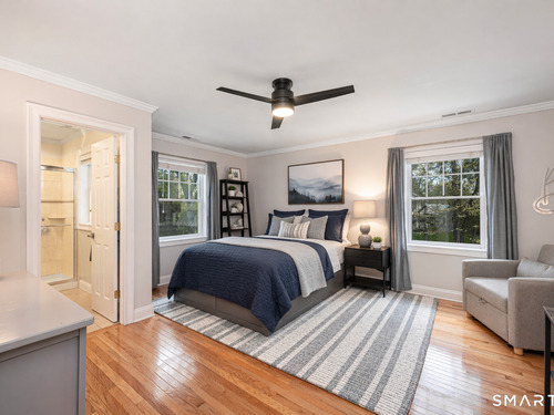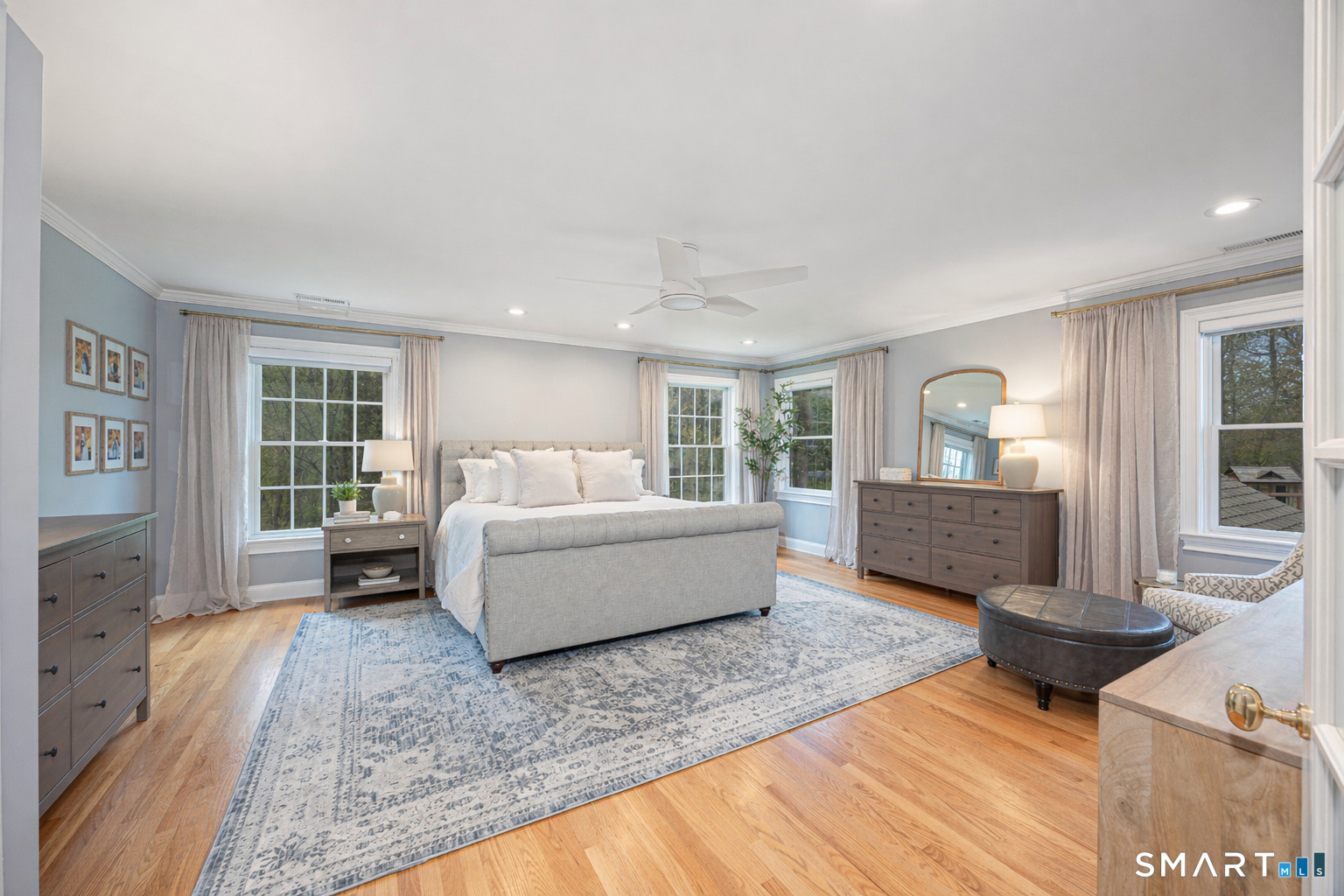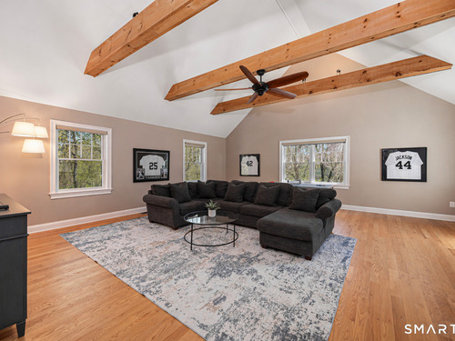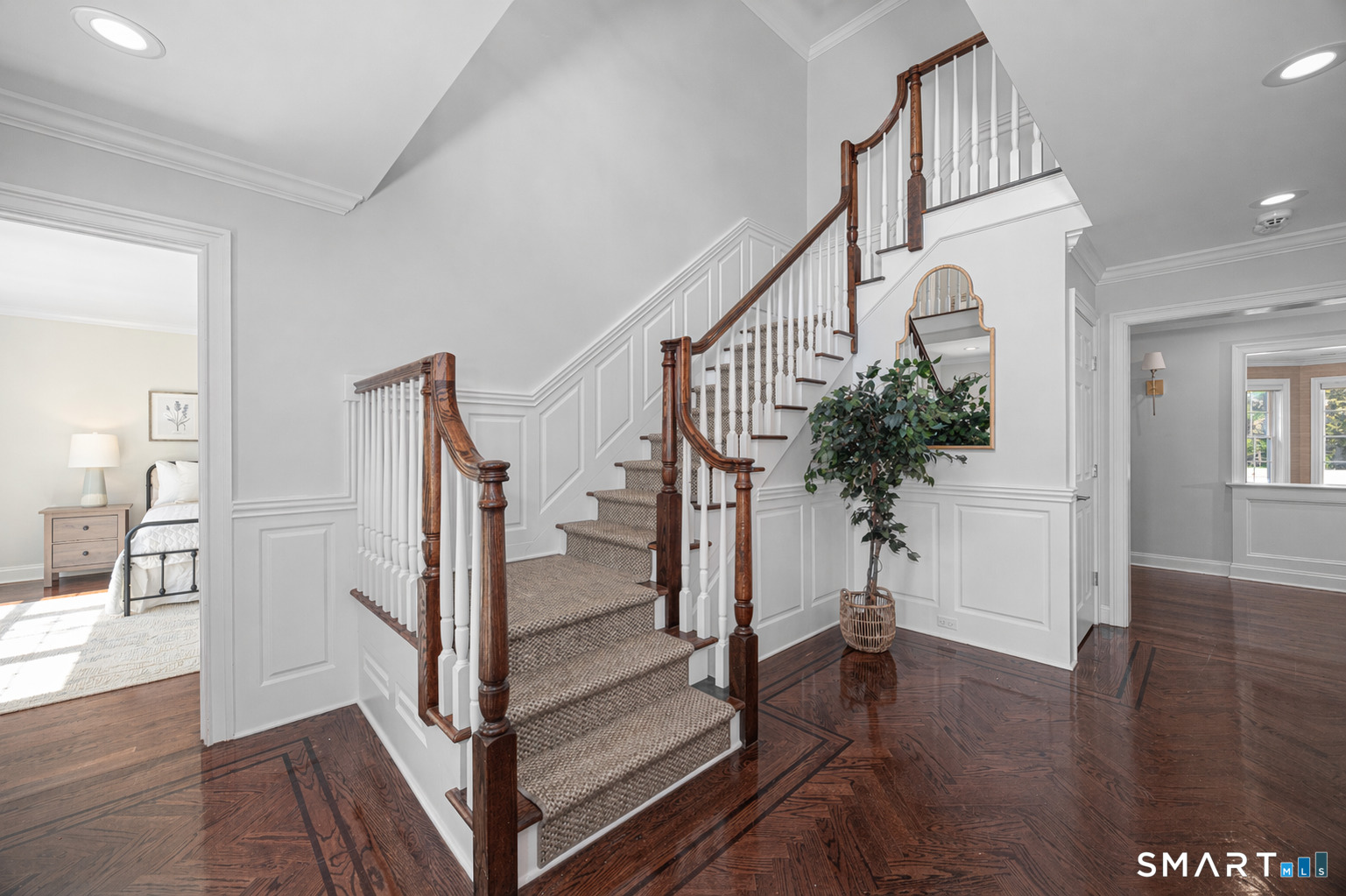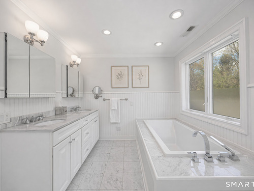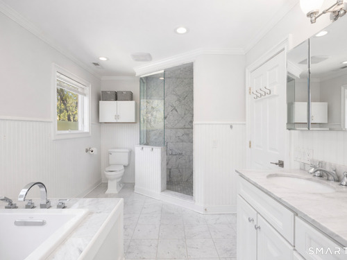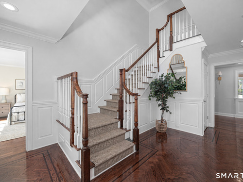 A rare offering in sought-after South Wilton, this exceptional 2009 Colonial pairs over 5,800 square feet of sophisticated living space with the feel of a private retreat. Surrounded by 1.8 acres of park-like grounds, the property offers a serene, resort-like setting just minutes from Rolling Hills Country Club, Ambler Farm, and major commuter routes. Designed for both elegant entertaining and effortless daily living, the home features 5 bedrooms and 6 baths, including a flexible main-level suite ideal for guests or a private office. Sun-filled living spaces include a gracious sitting room, living room, and sunroom, while two fireplaces bring warmth and character throughout. The kitchen is perfectly positioned to overlook the pool and backyard, with sliding doors opening to the deck and outdoor entertaining spaces for seamless indoor-outdoor living. Upstairs, a spacious great room provides ideal flex space for media, play, or gathering, while the expansive primary suite offers walk-in closets and a spacious bath. A second-floor laundry room, walk-up unfinished attic, and finished lower level add versatility and convenience. Outside, the lifestyle is truly exceptional. A saltwater pool, hot tub, expansive deck, level lawn, and indoor/outdoor sound system create the feel of a private oasis-peaceful, polished, and perfectly suited for both quiet enjoyment and entertaining. Offering a rare blend of space, style, and serenity, this home is a true gem. Equipped with an electric