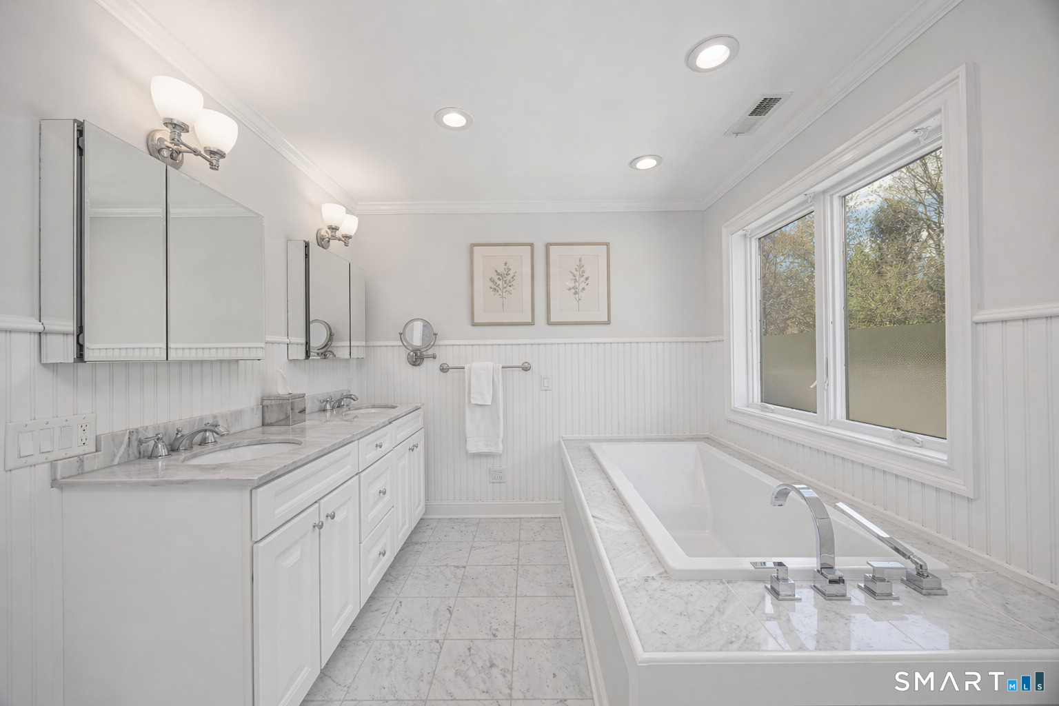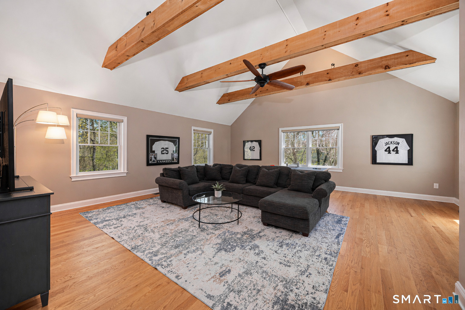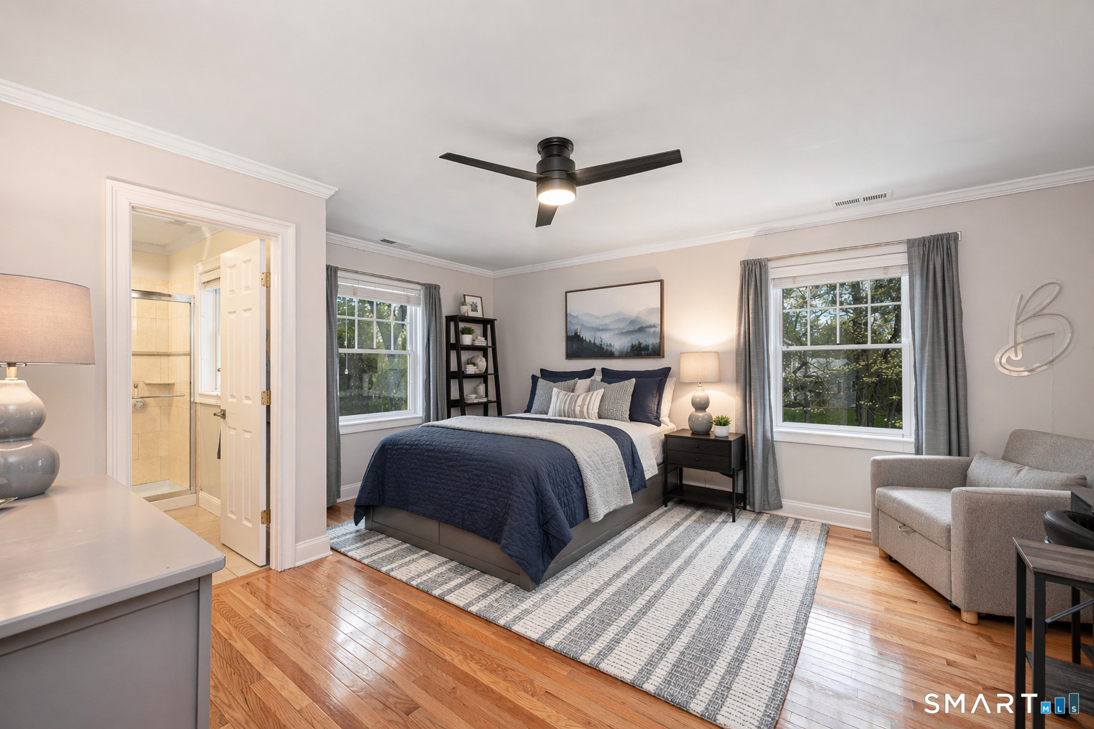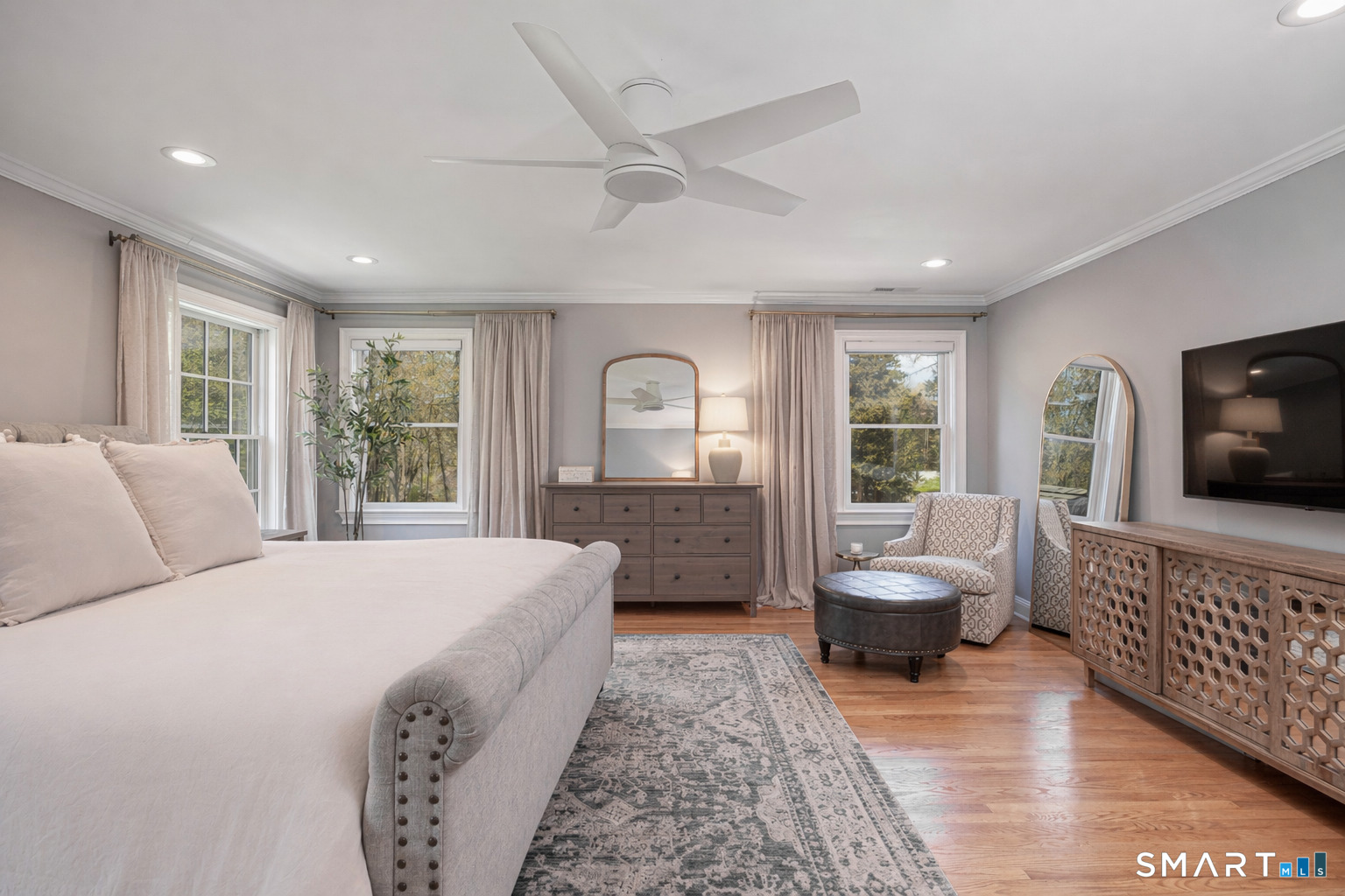 A rare offering in sought-after South Wilton, this exceptional 2009 Colonial pairs over 5,800 square feet of sophisticated living space with the feel of a private retreat. Surrounded by 1.8 acres of park-like grounds, the property offers a serene, resort-like setting just minutes from Rolling Hills Country Club, Ambler Farm, and major commuter routes. Designed for both elegant entertaining and effortless daily living, the home features 5 bedrooms and 6 baths, including a flexible main-level suite ideal for guests or a private office. Sun-filled living spaces include a gracious sitting room, living room, and sunroom, while two fireplaces bring warmth and character throughout. The kitchen is perfectly positioned to overlook the pool and backyard, with sliding doors opening to the deck and outdoor entertaining spaces for seamless indoor-outdoor living. Upstairs, a spacious great room provides ideal flex space for media, play, or gathering, while the expansive primary suite offers walk-in closets and a spacious bath. A second-floor laundry room, walk-up unfinished attic, and finished lower level add versatility and convenience. Outside, the lifestyle is truly exceptional. A saltwater pool, hot tub, expansive deck, level lawn, and indoor/outdoor sound system create the feel of a private oasis-peaceful, polished, and perfectly suited for both quiet enjoyment and entertaining. Offering a rare blend of space, style, and serenity, this home is a true gem. Equipped with an electric
