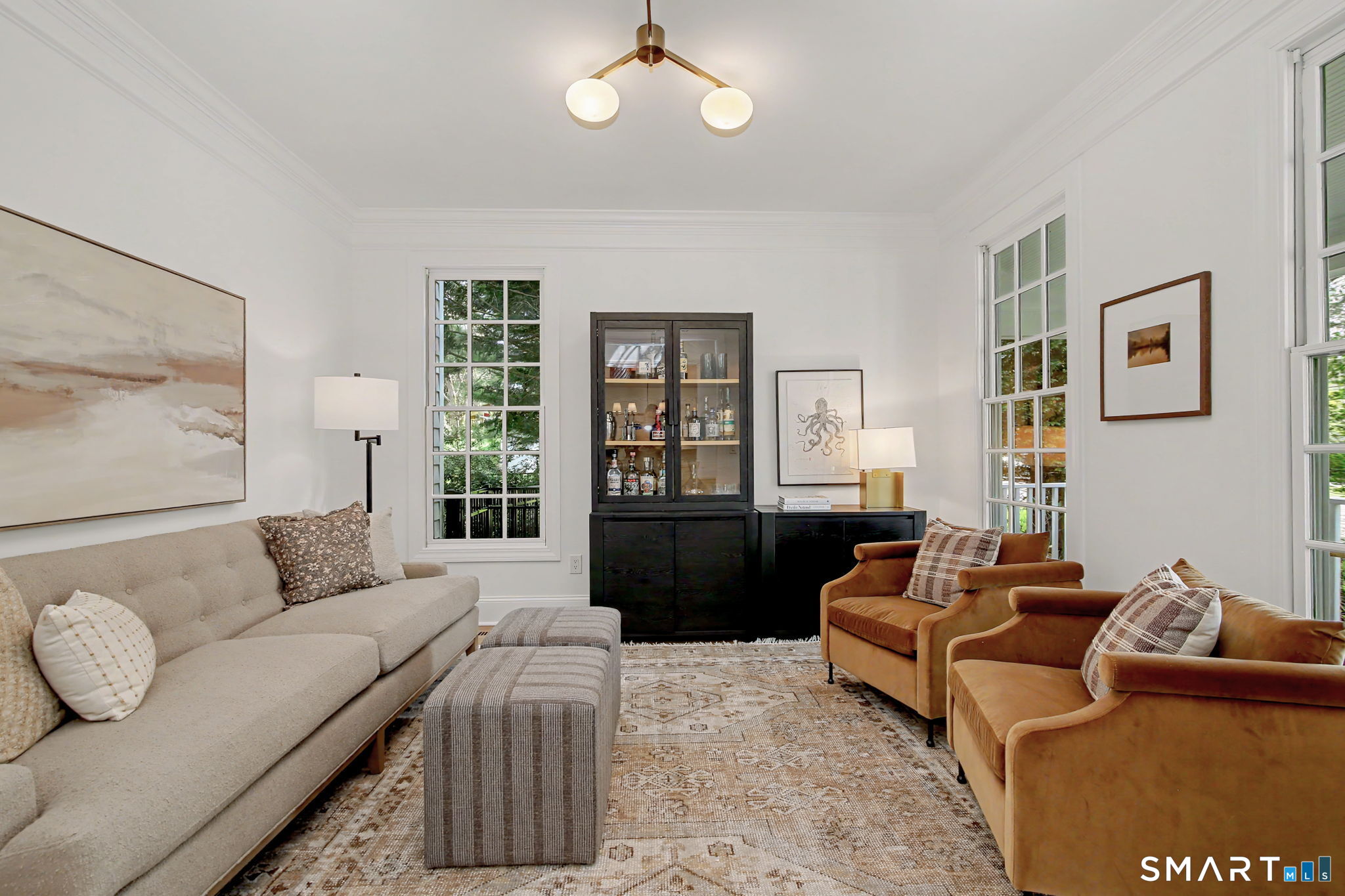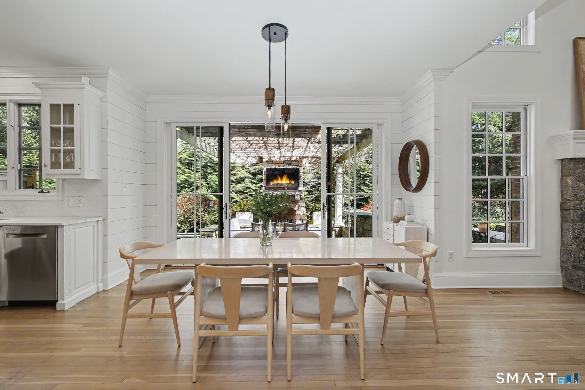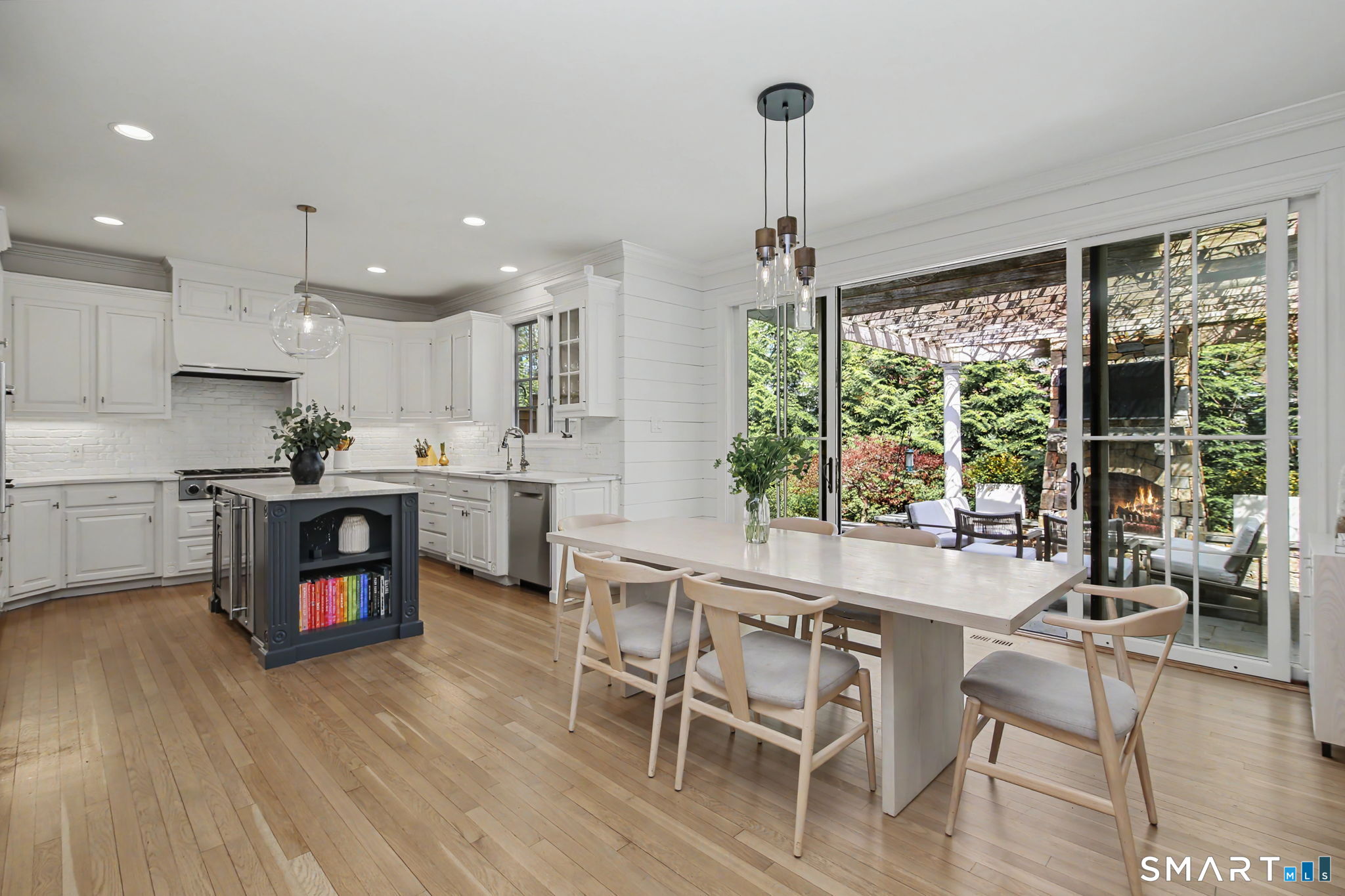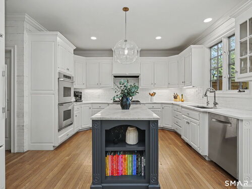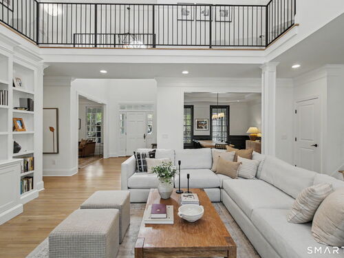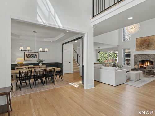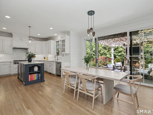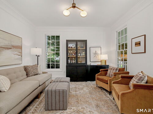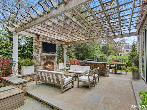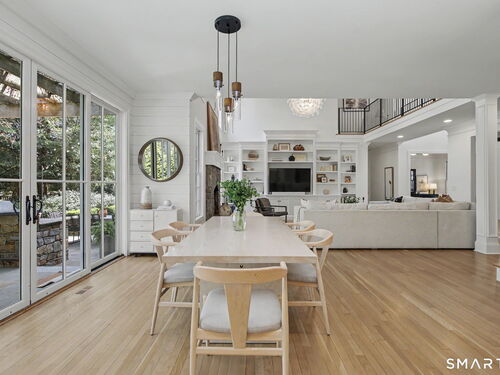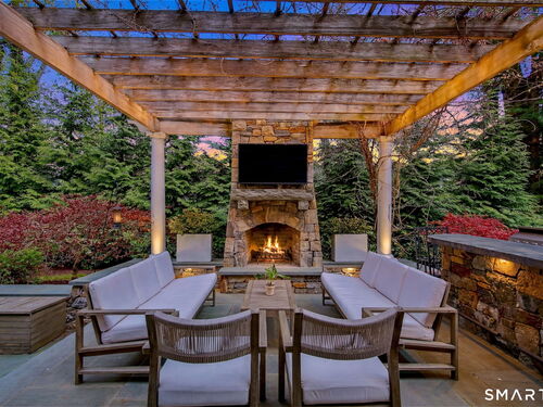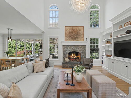 Set on a quiet street in the seaside village of Rowayton, 12 Ledge Road captures the essence of coastal living with an easy walk-to-town lifestyle. This 5-bedroom, 4.5-bath home offers over 4,600 square feet of beautifully designed living space, blending comfort and style throughout. An inviting oversized front porch leads into a striking two-story living room, where natural light and an open floor plan create an effortless flow. The dining room and spacious chef's kitchen are ideal for both everyday living and entertaining, while a first-floor flex bedroom or private office adds versatility. Outside, a thoughtfully designed patio features an outdoor kitchen, fireplace, and lounge, perfect for summer evenings and relaxed gatherings, along with an outdoor shower for the ultimate post-beach rinse. Upstairs, the serene primary suite is a true retreat with a fully renovated, spa-like bath and oversized walk-in closet. Three additional bedrooms include one en suite and two connected by a Jack and Jill bath. The finished lower level expands the living space with a full bath, gym area, and wine cellar. Enjoy Rowayton's coveted lifestyle with nearby beaches, parks, and a vibrant, close-knit coastal community just moments from your door.