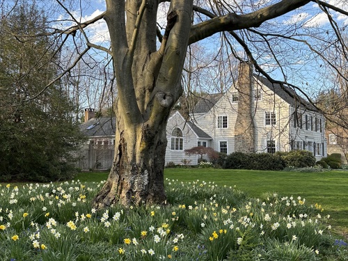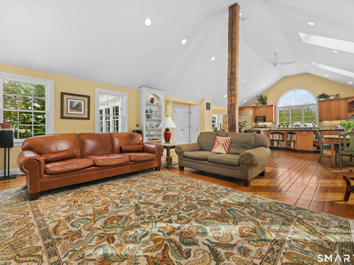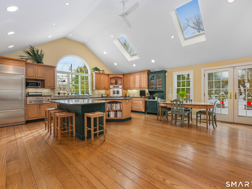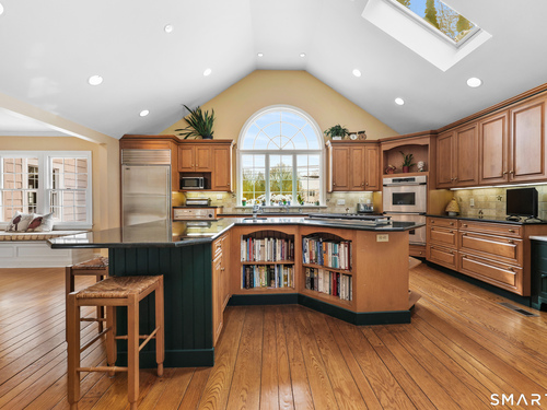 Welcome to 12 Ridgeway Road in Easton! Nestled on one of Easton's most coveted streets, this charming 1930's vintage home has had many updates over the years to blend in the modern updates you desire. Step in to the foyer and you will be greeted with period details. Enter the arched doorway to a spacious living room with fireplace and built-in bookshelves. Custom made french doors lead you to the private office area. The dining room is large enough for all of your holiday gatherings, but retains a warm and inviting feel. The kitchen/family room is a showstopper! Formerly a music studio, it was reimagined to become an open concept living space with vaulted ceilings and a gorgeous stone fireplace. The kitchen has high-end appliances, granite & marble counters and lots of prep and servicing space. A separate laundry room, half bath and mud room with cubbies complete this floor. Upstairs is the gracious master suite with its own luxurious bath with separate shower and tub, as well as a huge walk-in-closet. There are 2 additional bedrooms and a full bath to complete this level. Walk up to the 3rd floor and there is the 4th bedroom with full bath plus a bonus room great for media or use as an office. Enjoy the cozy nooks and custom finishes you just don't find in other homes. Step outside and you will see the pride in ownership with the beautiful garden areas and plantings as well as the flagstone patio with curved stone wall. Fall in love!