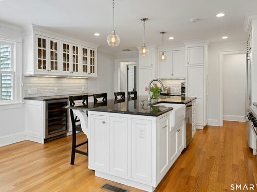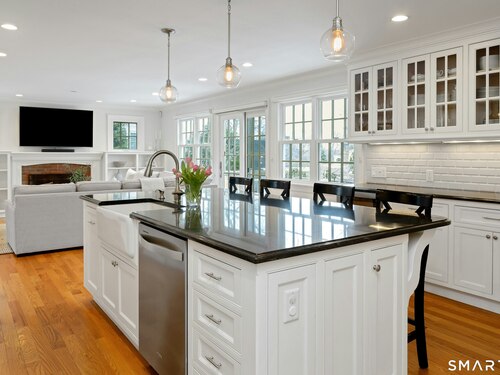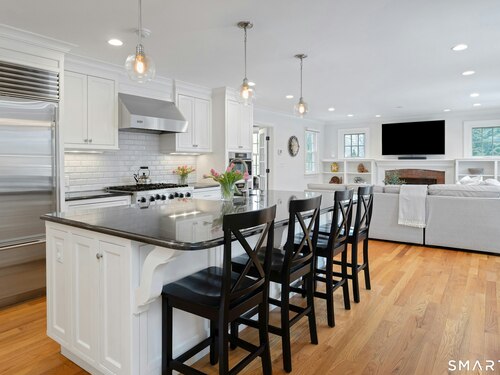 Welcome to the heart of Noroton Heights nestled on one of the most sought-after streets in Darien. This incredible neighborhood offers the perfect blend of community, convenience, & everyday amenities just moments from your door! Renovated in 2008 with a significant addition, this home combines timeless charm, curb appeal & plenty of room for any lifestyle. Inside, you'll find 5 beds/ 3.5 baths, tons of natural light, hardwood floors, & recessed lighting throughout. The first floor features a formal living room, dining room, guest bedroom & bath, mudroom & office. The open-concept family room flows seamlessly to the backyard w/ sliding glass doors leading to a stone patio, perfect for indoor/outdoor entertaining. At the center of the home is a chef's kitchen, complete w/ a massive island, high-end stainless-steel appliances, granite counters, custom cabinets & a tile backsplash. Upstairs are 4 add'l beds, including a spacious primary ensuite w/ vaulted ceilings, a walk-in closet & luxurious bath. The property sits on a large, flat, fenced-in lot w/ eastern exposure & beautiful sunsets-ideal for gatherings, outdoor play, or simply relaxing at home. All of this is less than a 10 min walk to the Noroton Train Station (55 mins to GC), Heights Crossing, Darien Commons, offering numerous restaurants, coffee shops, boutique shopping, Equinox, SolidCore, grocery stores & more! Conveniently located near Darien's schools, daycare & beaches-this is Darien living at its finest!