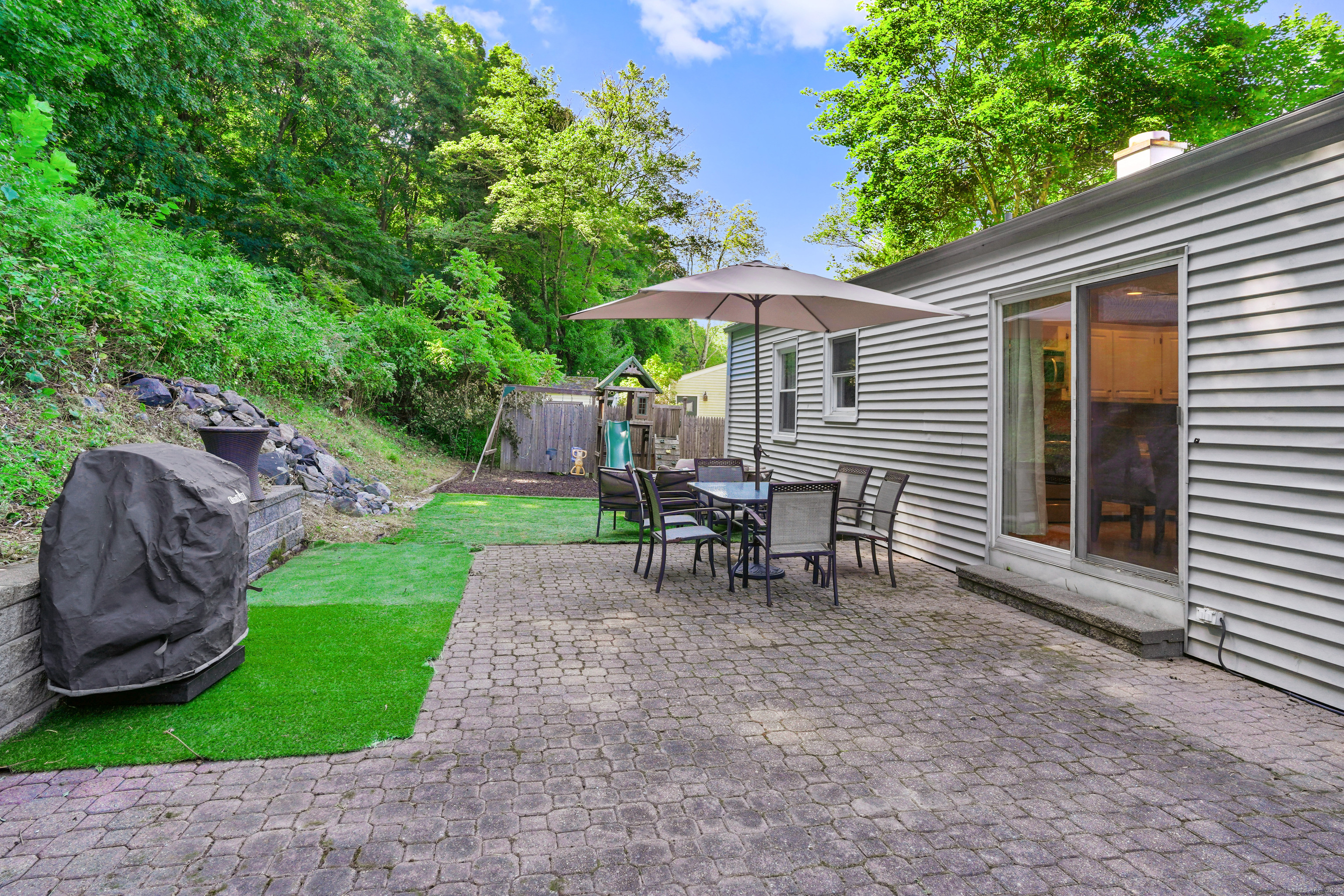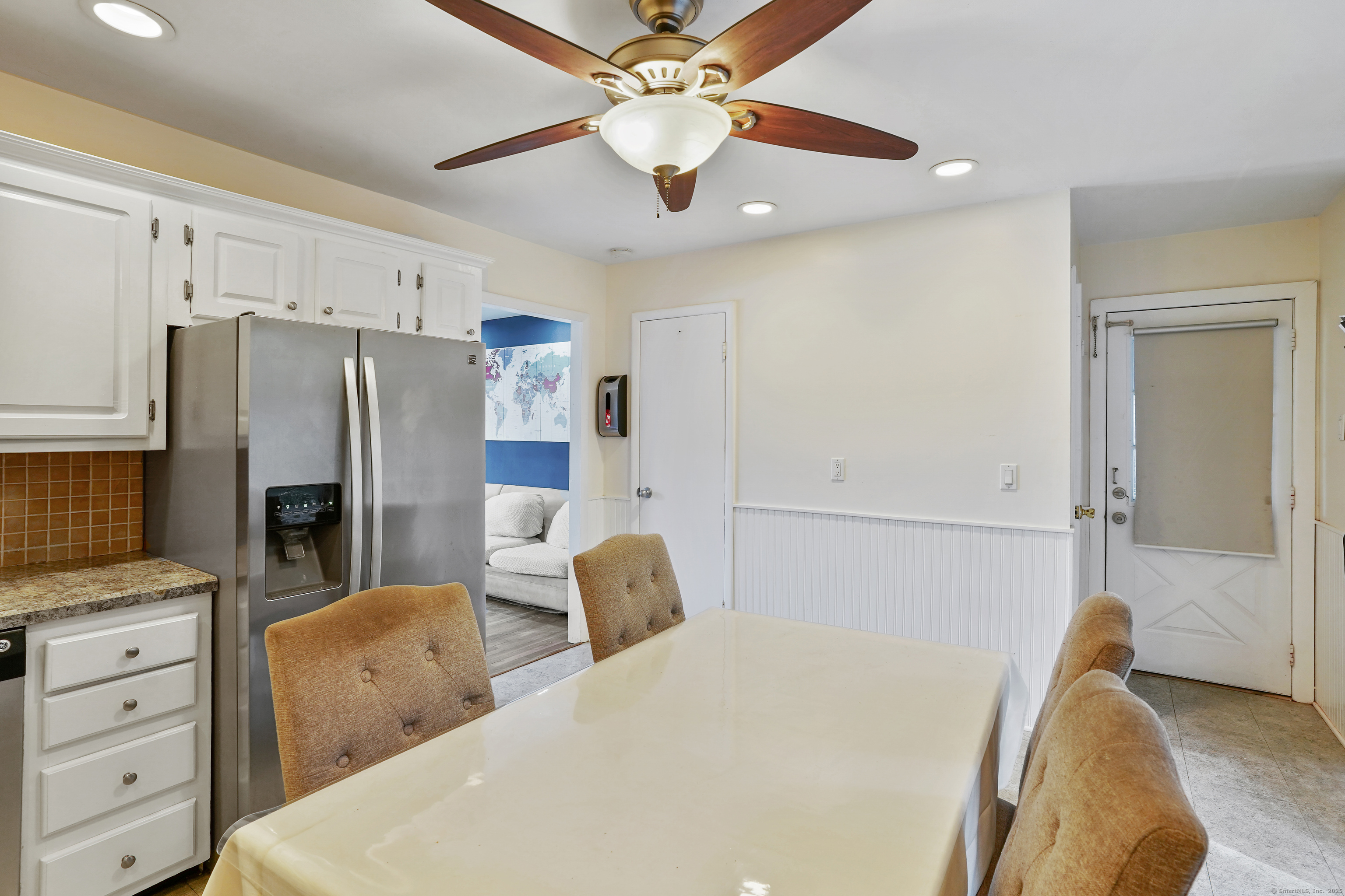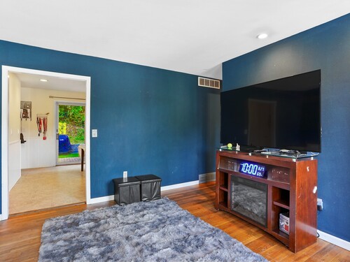 Embrace the warmth of this inviting 3-bedroom, 2-full-bathroom home, crafted for cozy, comfortable living with desirable hardwood floors flowing through most of the main level and wall-to-wall carpeting in the partially finished basement. The welcoming living room, with a charming bay window, offers serene sunset views-perfect for quiet evenings. The basement adds a warm touch with a modern electric fireplace, featuring remote control and color-changing lights for ultimate ambiance. Both full updated bathrooms offer a touch of luxury with radiant heated floors, providing toasty comfort after a shower or bath. A convenient laundry space tucked in the basement simplifies everyday tasks. Step outside to a quaint backyard featuring a tranquil waterfall, ideal for serene moments or small gatherings with loved ones. Just steps from Bethel's charming downtown, stroll through lively streets filled with restaurants, shops, and a movie theater; the home's close proximity to award-winning Bethel schools adds to its appeal. Connected to city water and sewers, this delightful home offers hassle-free living. Featuring a brand new electric service including panel and meter box, along with a central air system just 5 years old, this home ensures modern efficiency and comfort. Carport with easy access to kitchen. Perfect for first-time owners or if you are downsizing! Don't miss your chance to own this cozy gem in the heart of Bethel! Schedule a showing today!