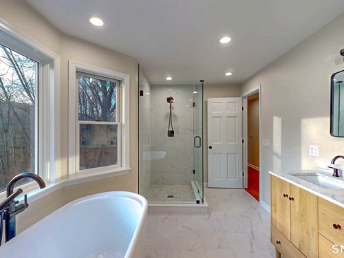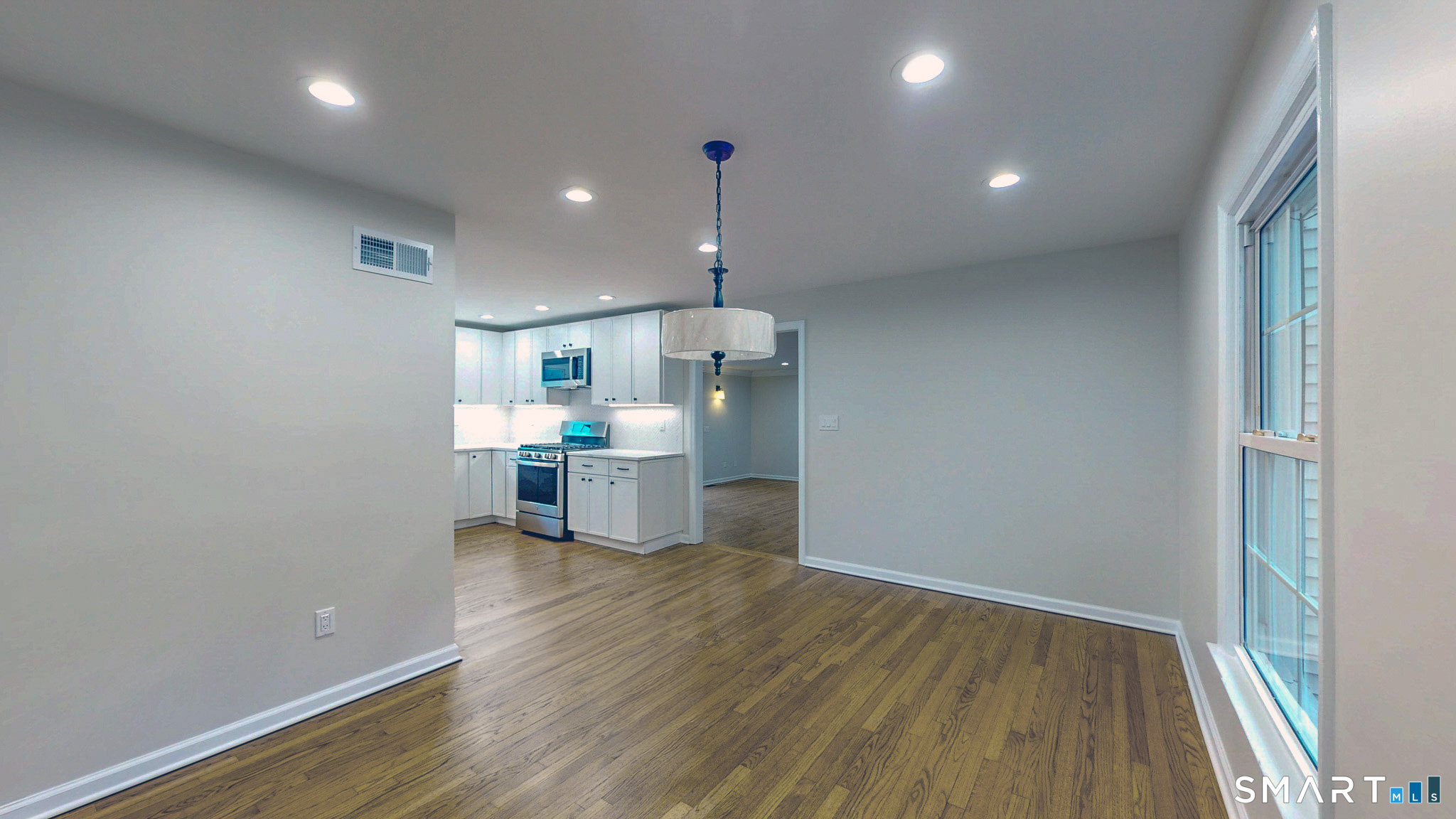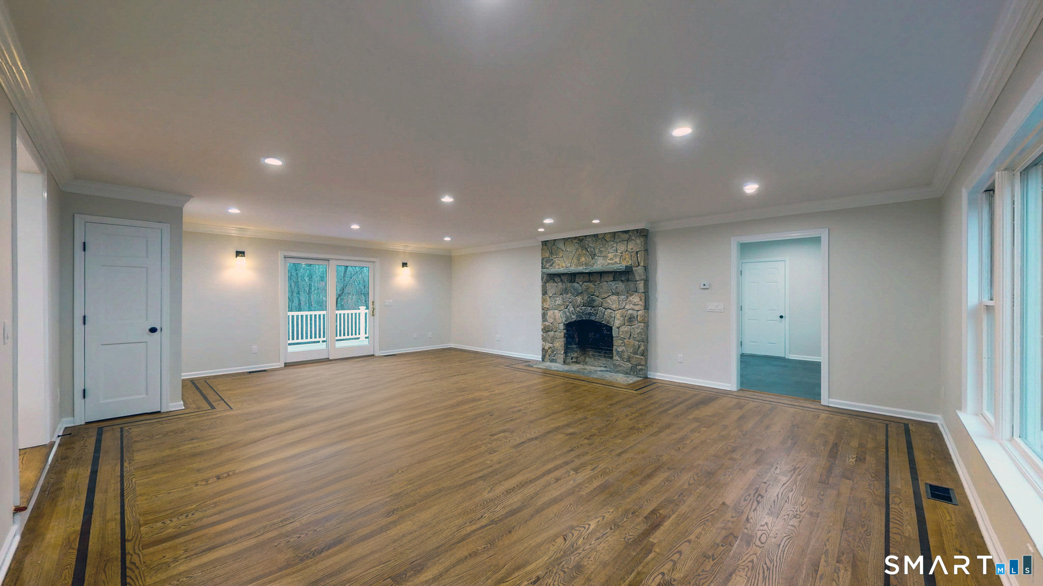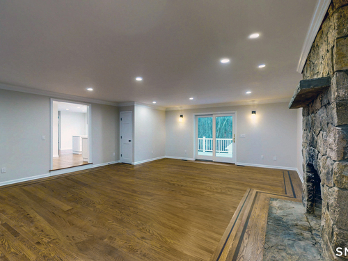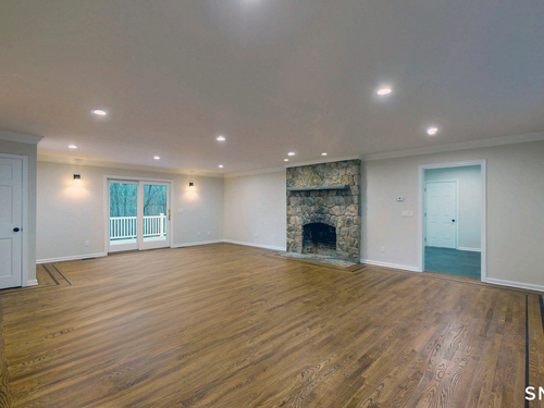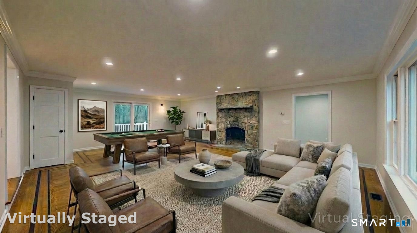 Welcome to this expansive and beautifully updated six-bedroom Colonial, offering three full and two half baths and thoughtfully positioned on a sprawling 2.42-acre lot that provides both privacy and presence. A grand wraparound driveway creates a striking approach to the home, offering ample parking in addition to a two-car attached garage ideal for guests, entertaining, and everyday convenience. Upon entering, you are greeted by a gracious foyer showcasing refinished hardwood flooring that flows seamlessly throughout much of the main level. The foyer opens to an elegant living room, anchored by a classic fireplace that adds warmth and timeless character. The home's open-concept layout is designed to balance refined traditional elements with modern living, creating an inviting atmosphere for both intimate gatherings and large-scale entertaining. The heart of the home is the stunning open-concept kitchen, meticulously designed for both form and function. The kitchen features sleek quartz countertops, stainless steel appliances, updated cabinetry, and new finishes throughout. The spacious eat-in kitchen offers plenty of room for casual dining and flows effortlessly onto a large back deck, where you can enjoy peaceful views overlooking the expansive backyard perfect for outdoor dining, relaxation, or entertaining.