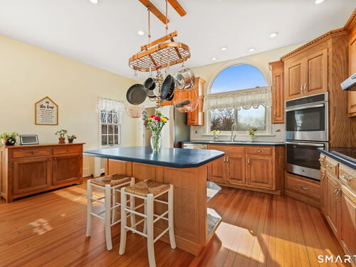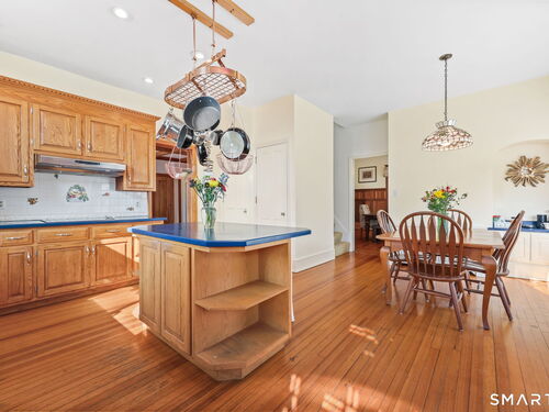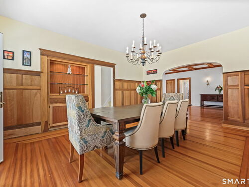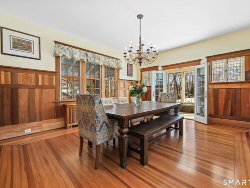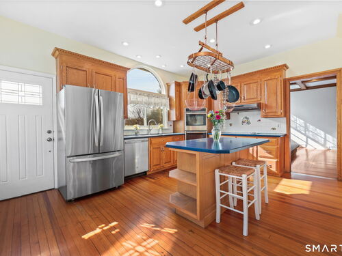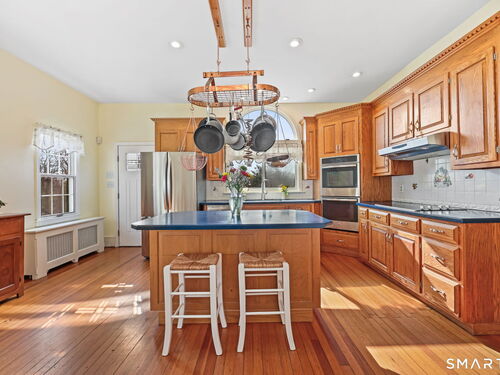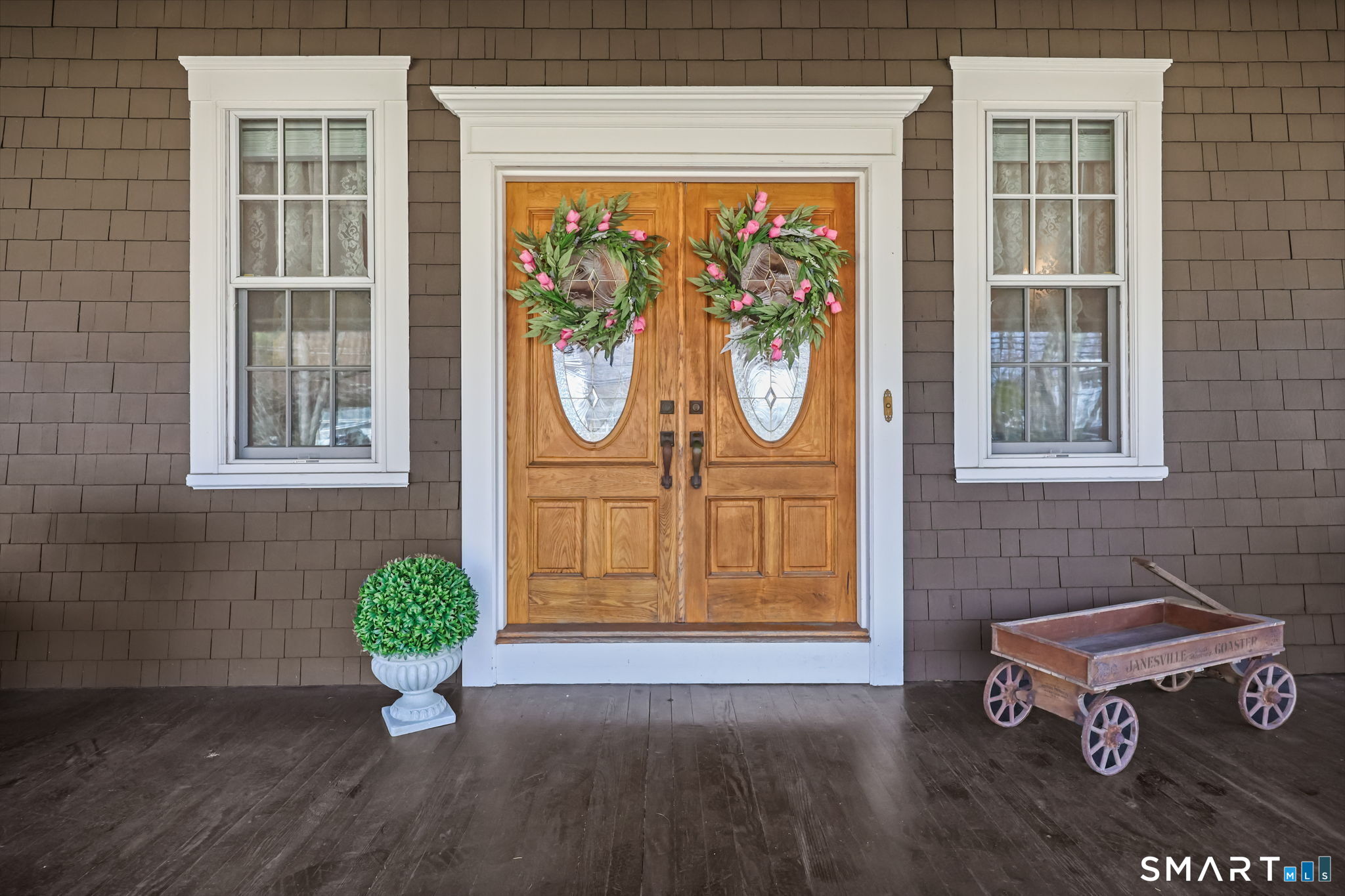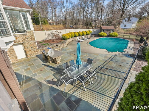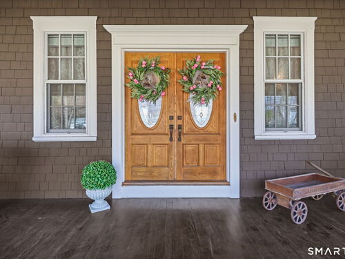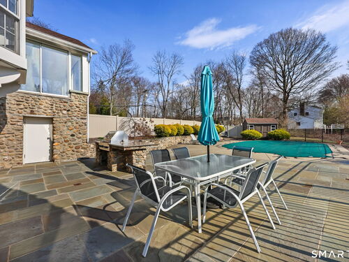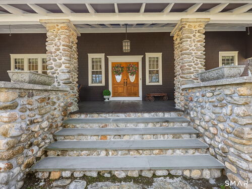 Step into a piece of Trumbull's history with this enchanting, updated Craftsman Cape loc in the highly sought-after Daniels Farm section, close to top-rated schools, parks, shopping, restaurants, & major highways. Originally built by Col. William C. Weeks when Daniels Farm Rd was a rural farm district, this unique home, known as "Kobble Cot," blends historic charm w/ modern comfort & has long been a place where generations gathered & created lasting memories. From the moment you arrive, you'll feel the warmth-relax on the expansive stone front porch, perfect for morning coffee or evening gatherings, then enter through double doors into a grand Great Room featuring exposed beams & a striking stone FP. The formal DR w/ built-in glass shelving flows seamlessly into the living space & opens via French doors to a bright Sunroom overlooking the in-ground pool & patio. The updated Kitchen offers SS appliances, center island, & access to a spacious deck overlooking the landscaped yard. The main level includes a BR, Den, & full Bath, ideal for guests or home office. Upstairs features a Primary Suite w/remodeled bath, 2 add'l BRs, & updated bath w/wood slider door, along w/ charming cottage windows & cedar closet. The fin LL includes a game rm, laundry, 1/2 bath, & walk-out to pool area. The property, once filled w/apple trees where children played and made memories, now offers a spacious yard, in-ground pool, large patio, built-in BBQ, & 2 sheds. Circular drive provides ample parking.