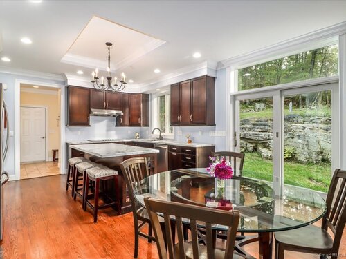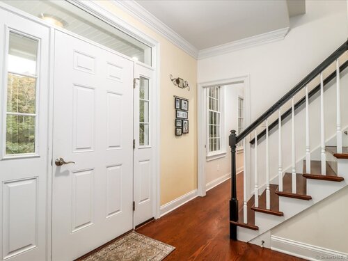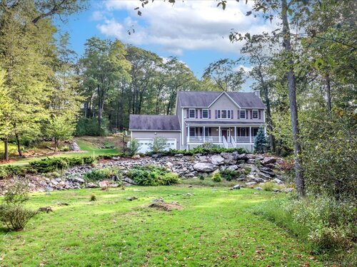 Beautifully maintained 12-year young Colonial Farmhouse set on 2.15 private acres in the charming and highly sought-after town of Ridgefield. With its open concept design, thoughtful floor plan, and natural sunlight streaming throughout, this home blends modern convenience with timeless farmhouse charm. At the heart of this 4-bedroom home is the kitchen, dining area, and great room, featuring a stunning stone fireplace with a wood-burning insert and built-in blower that circulates heat throughout the living room-perfect for cozy evenings or entertaining guests. The kitchen boasts abundant cabinetry, large island, stainless-steel appliances, and plenty of counter space to make cooking and entertaining effortless. 9+foot ceilings, half bath, laundry, garage access complete main level. The second floor offers 4 spacious bedrooms plus a versatile sitting/office/loft, providing flexibility for today's lifestyles. The unfinished walk-out basement with high ceilings, windows, and plumbing is ready to be transformed into a 5th bedroom, home theater, playroom, gym, or guest suite-while leaving ample storage space. Step outside and enjoy peaceful mornings or relaxing afternoons on the inviting covered front porch, overlooking a beautiful butterfly garden that attracts Monarchs, Yellow Swallowtails, and hummingbirds-a true nature-lover's retreat. Within walking distance to Mountain Lakes State Park, you'll have easy access to scenic hiking trails, yet still be just minutes from schools
