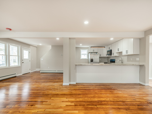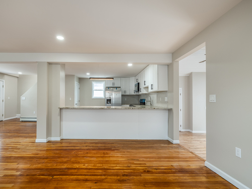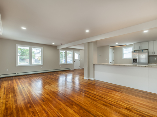 Beautifully remodeled and expanded 4 bedroom Colonial. When you first walk in you will be amazed by the open concept Living room/dining room/kitchen space this home has. The kitchen offers brand new white cabinetry with granite counter tops, gorgeous backsplash, stainless steel appliances, and a huge island that connects with the dining room area. Living room/dining room and kitchen all have new recessed lighting and a split system making this section bright and airy. From the dining area you can go to the family room with vaulted ceilings, sliders to deck and a brand new half bath with a unique black vanity. On this home 2nd level you can find 3 good size full bedroom with large mirror closet doors. A full bath with stunning finishes on tile and vanity and the designated laundry room. Both 1st and 2nd floors offer gleaming hardwood floors throughout. But wait there's MORE! This home is completed with a BRAND NEW PRIMARY ROOM with vinyl floor, new large windows, recessed lighting, walk in closet and a full bath with the latest styles in vanity and tile. This property also comes with a brand new roof, most of the windows are new, brand new oil tank. Home has a welcoming open front porch and a fenced backyard with a large deck ideal for entertaining. Home is just minutes from train station, major shopping areas and I-95. Truly a must see!