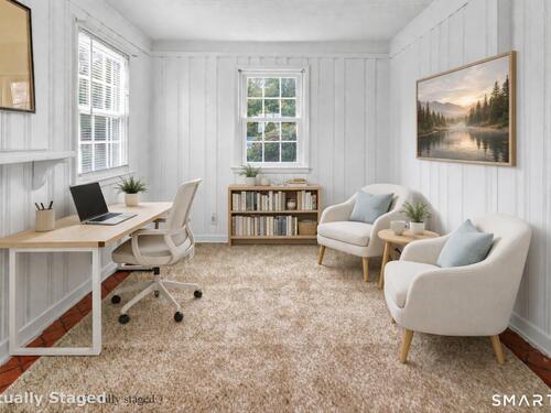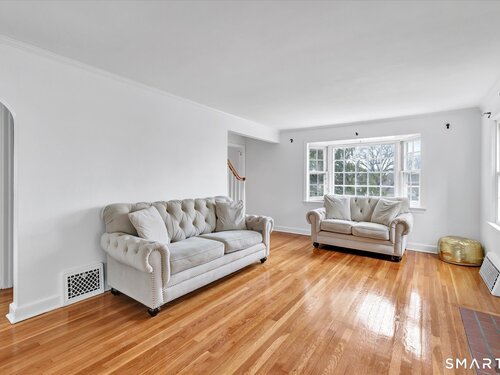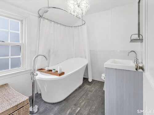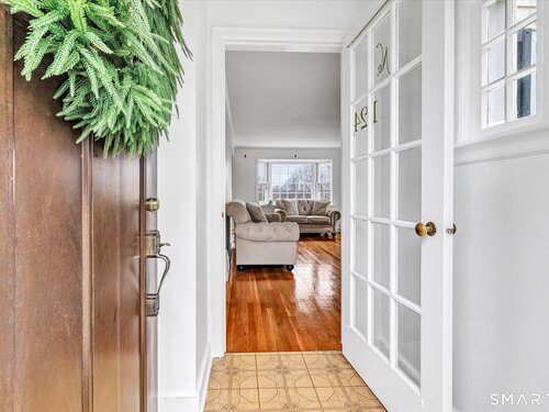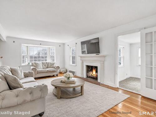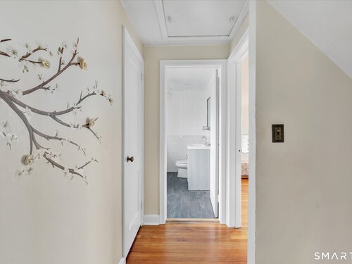 Welcome to this charming 1,600 sq ft Colonial nestled on a quiet dead-end street in Stratford's sought-after Paradise Green neighborhood. Set on a deep, private lot, this home offers both comfort and space in a peaceful setting, with low-maintenance vinyl siding adding to its appeal. Inside, you're sure to love the floor plan, from the kitchen located right off the garage you'll find a spacious living room with hardwood floors & a cozy fireplace, perfect for relaxing or entertaining, along with a formal dining room ideal for holidays. A charming main-level sunroom provides the perfect space for a home office, den, or reading room filled with natural light. Upstairs, the expansive primary bedroom offers a true retreat, complete with a large walk-in closet & a picture window for the perfect view to wake up to. 2 additional tandem bedrooms provide flexible space with hardwood floors and ample closets. The home features 2.5 baths, including a beautifully updated 2nd floor bath with a luxurious soaking tub. Additional highlights include central air, updated heating, and a newer water heater for added efficiency and peace of mind. The walk-out lower level is partially finished and includes a full bath with shower and laundry area, offering great potential for a rec room or guest space. A wonderful opportunity to own a well-maintained home in a desirable location-walk to the green with farmers market Mondays, restaurants and be sure to stop by the tea shoppe!