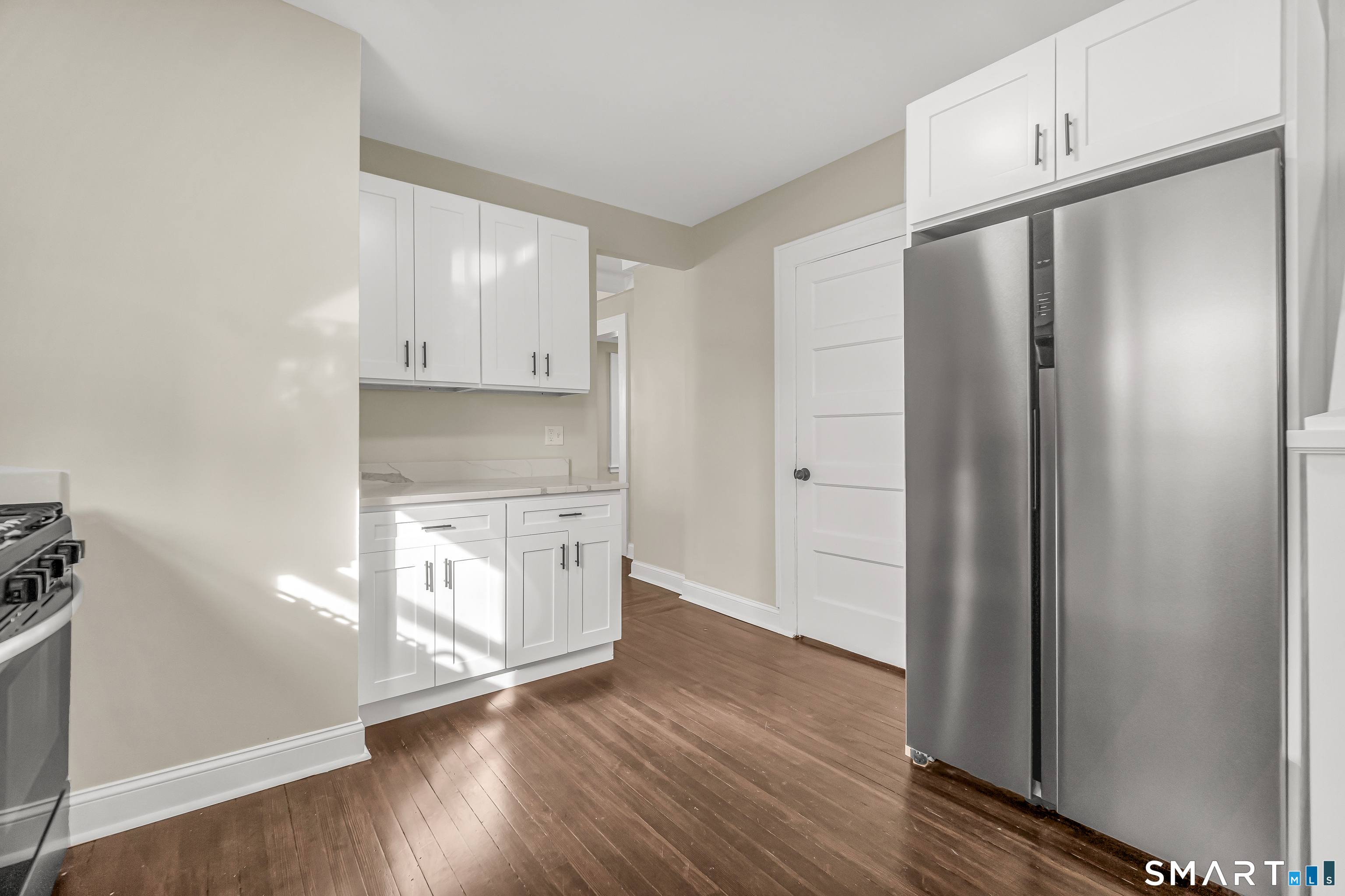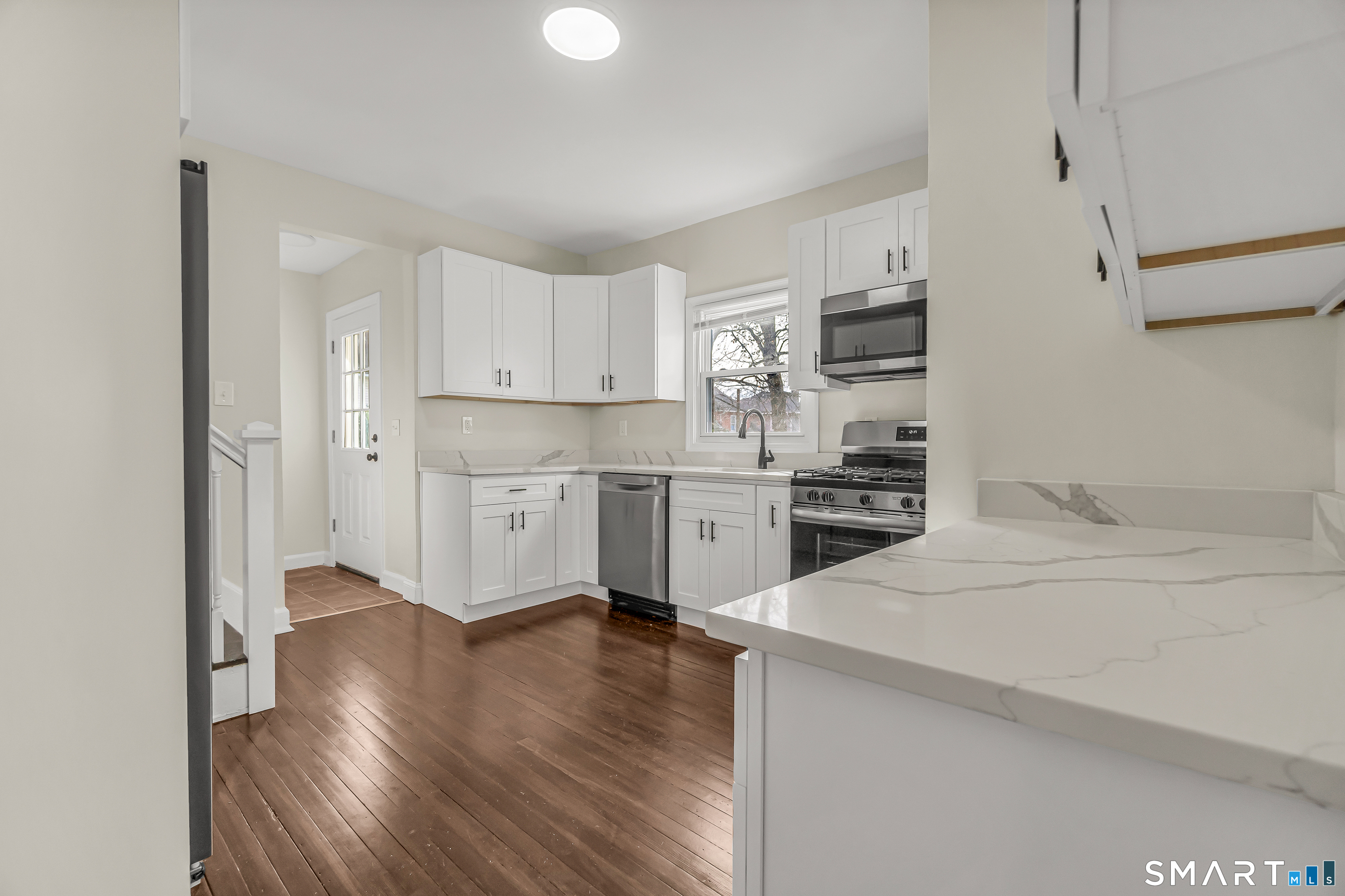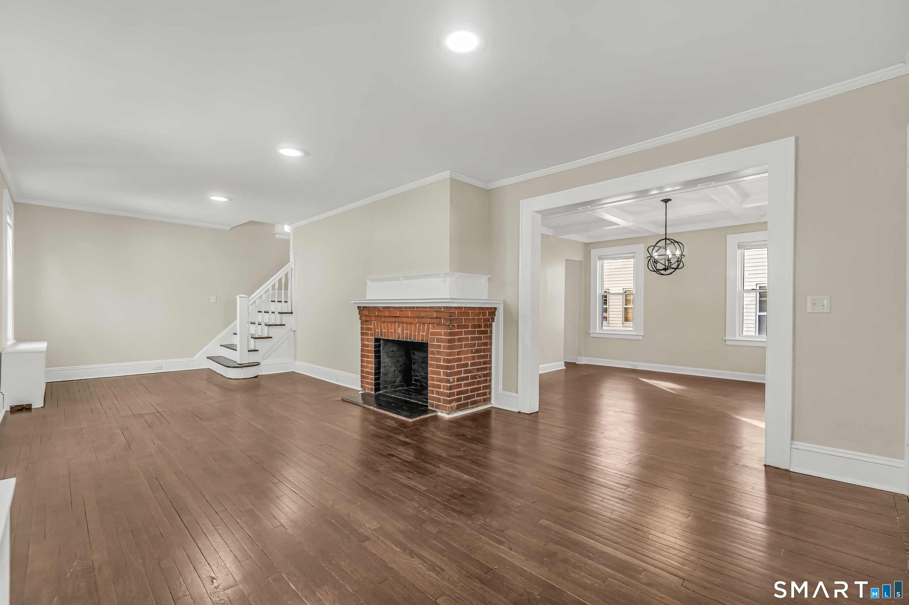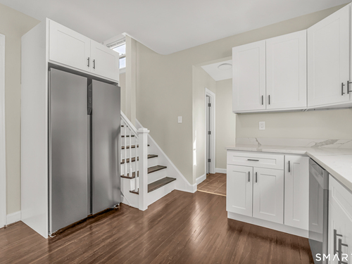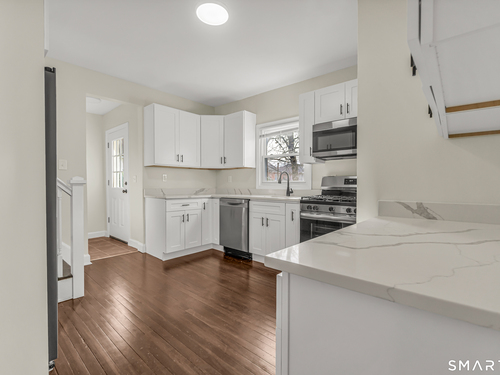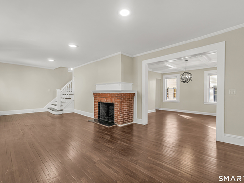 Beautifully renovated Victorian Colonial located at the end of a quiet street, offering three finished levels of living space. This spacious 4-bed, 2.5-bath home blends classic charm with modern updates throughout. The main level features a large living room with a cozy fireplace, a formal dining room with elegant coffered ceilings, and a stunning new kitchen with shaker cabinetry and stainless steel appliances. All baths have been fully renovated, and the home boasts fresh paint, refinished hardwood floors, new LED lighting, black hardware, and updated gas heat and hot water for efficiency and comfort. The finished third floor provides incredible flexibility, featuring a 5th bedroom and its own newly renovated full bath-perfect as a guest suite, office, or additional living area. Enjoy a private yard ideal for outdoor entertaining and a new driveway. Conveniently located near the train, major highways, shopping, and parks. Move-in ready and truly a must see.