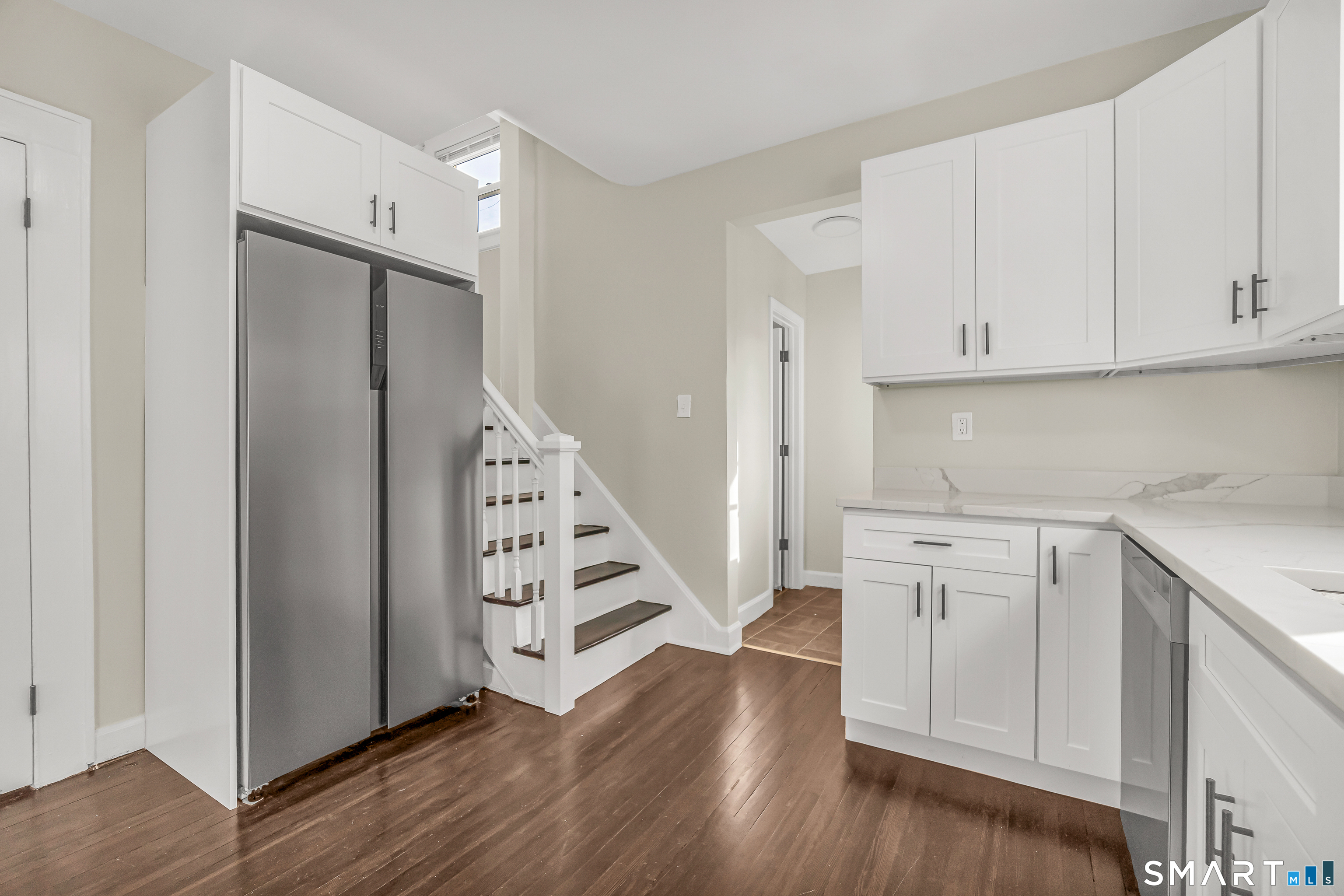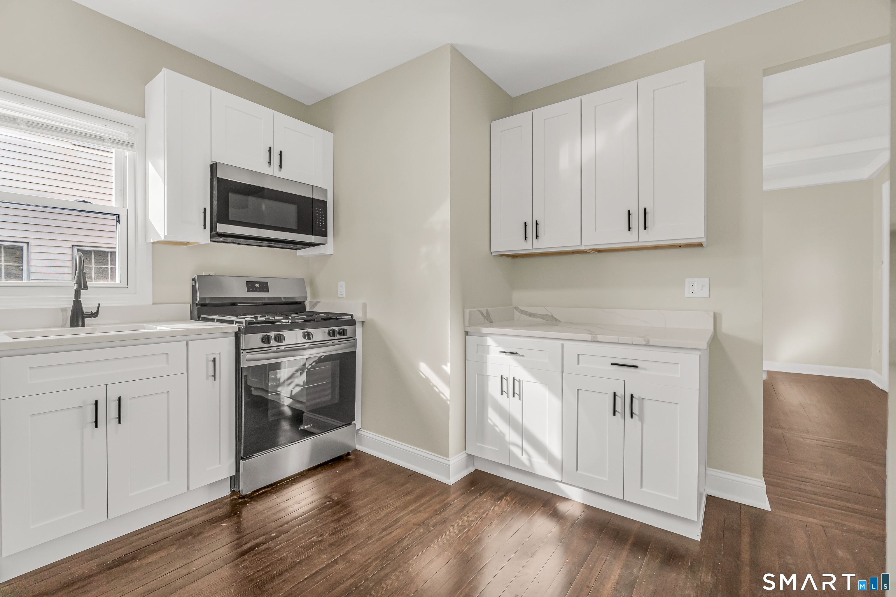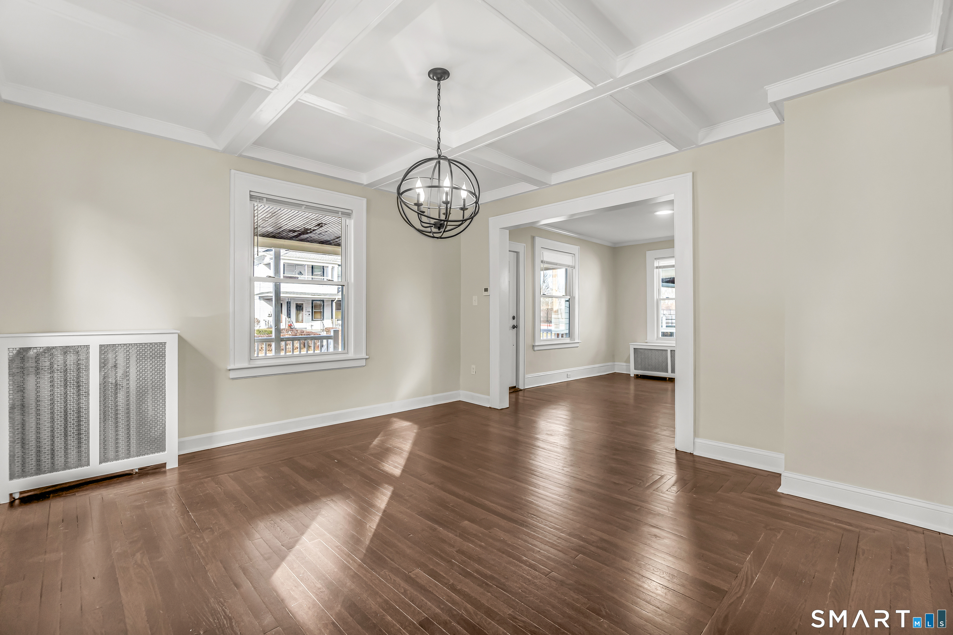Beautifully renovated Victorian Colonial located at the end of a quiet street, offering three finished levels of living space. This spacious 4-bed, 2.5-bath home blends classic charm with modern updates throughout. The main level features a large living room with a cozy fireplace, a formal dining room with elegant coffered ceilings, and a stunning new kitchen with shaker cabinetry and stainless steel appliances. All baths have been fully renovated, and the home boasts fresh paint, refinished hardwood floors, new LED lighting, black hardware, and updated gas heat and hot water for efficiency and comfort. The finished third floor provides incredible flexibility, featuring a 5th bedroom and its own newly renovated full bath-perfect as a guest suite, office, or additional living area. Enjoy a private yard ideal for outdoor entertaining and a new driveway. Conveniently located near the train, major highways, shopping, and parks. Move-in ready and truly a must see.