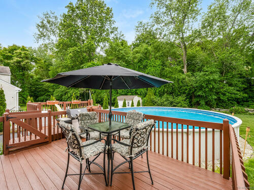 This natural light-filled colonial in Stratford's North End features an open floor plan and everything you want in a home! Start with the location: nestled on a quiet cul-de-sac and convenient to Rt 15 and Rt 8. Step inside to a welcoming interior enhanced by elegant crown molding: formal living and dining rooms, a cozy family room with fireplace open to a large eat-in kitchen with quartz counters, gas range, and sliders leading to a private, fenced-in backyard-perfect for entertaining. Enjoy outdoor living with a large deck, above-ground pool, patio, and plenty of room for volleyball, bocce or simply celebrating life's moments. This home offers space for every kind of gathering you can imagine! Upstairs features a primary bedroom suite with walk-in closet and a bathroom with tub and separate shower. Three additional bedrooms and another full bathroom complete the second level. All bedrooms are on the 2nd level, along with a pull-down attic for storage. The lower level offers flexible living space-it can be a family room, rec room, office, or whatever you desire. There is a full bathroom on this level plus laundry and extra storage. The attached 2-car garage adds daily convenience. Besides the location, size, and features, this home is close to New Haven, Stamford/NYC, and Black Hawk Country Club. If you would love to live near a Fairfield County 18-hole golf course, this is your chance! With a backyard like this, you might just want to party and play at home.