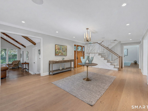 Set on 1.79 gated acres in the heart of mid-country Greenwich, this extraordinary property offers a rare combination of complete privacy, refined elegance, and modern luxury living. Tucked far back from a quiet country road and within a neighborhood of $10+ million estates, this property unfolds like a private botanical retreat--featuring sweeping perennial gardens, flowering shrubs, magnificent specimen plantings, and expansive open lawns that create year-round beauty and serenity. Completely rebuilt in 2019, the sophisticated Colonial residence spans 5,417 square feet with 4 bedrooms and 5 baths, masterfully designed for both grand entertaining and comfortable everyday living.