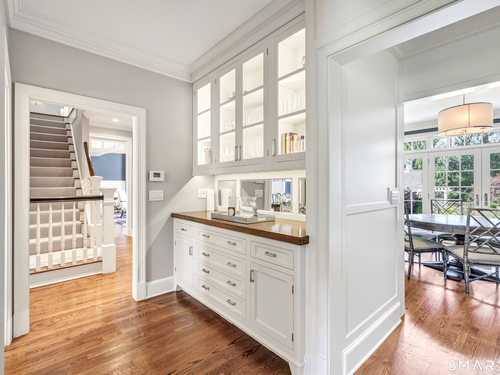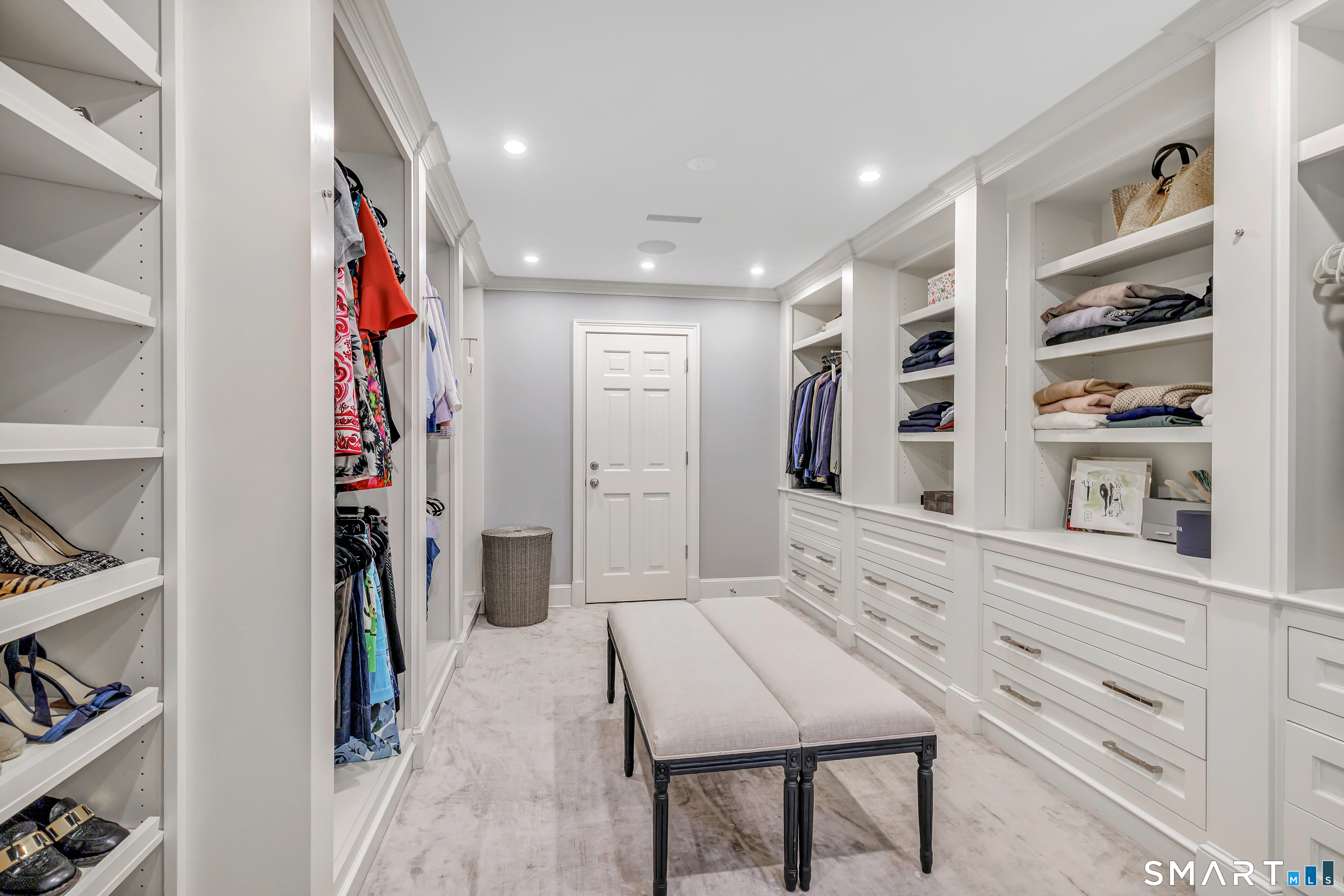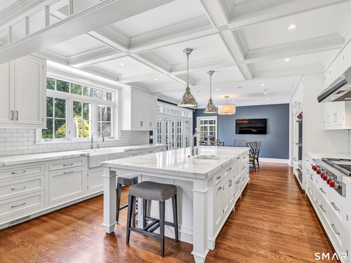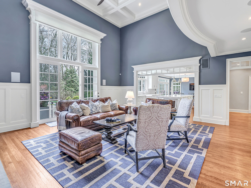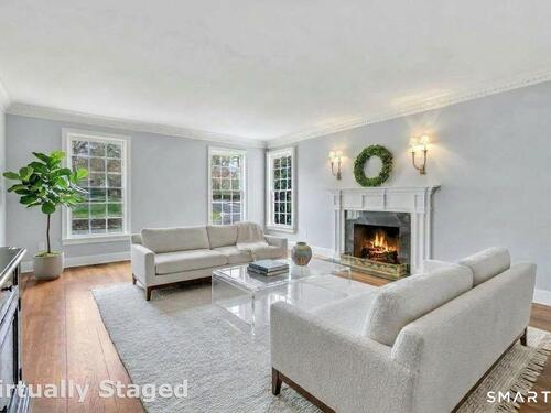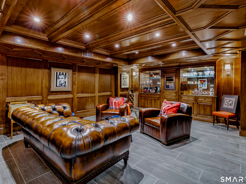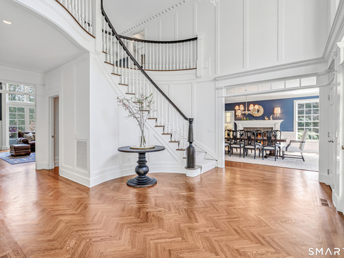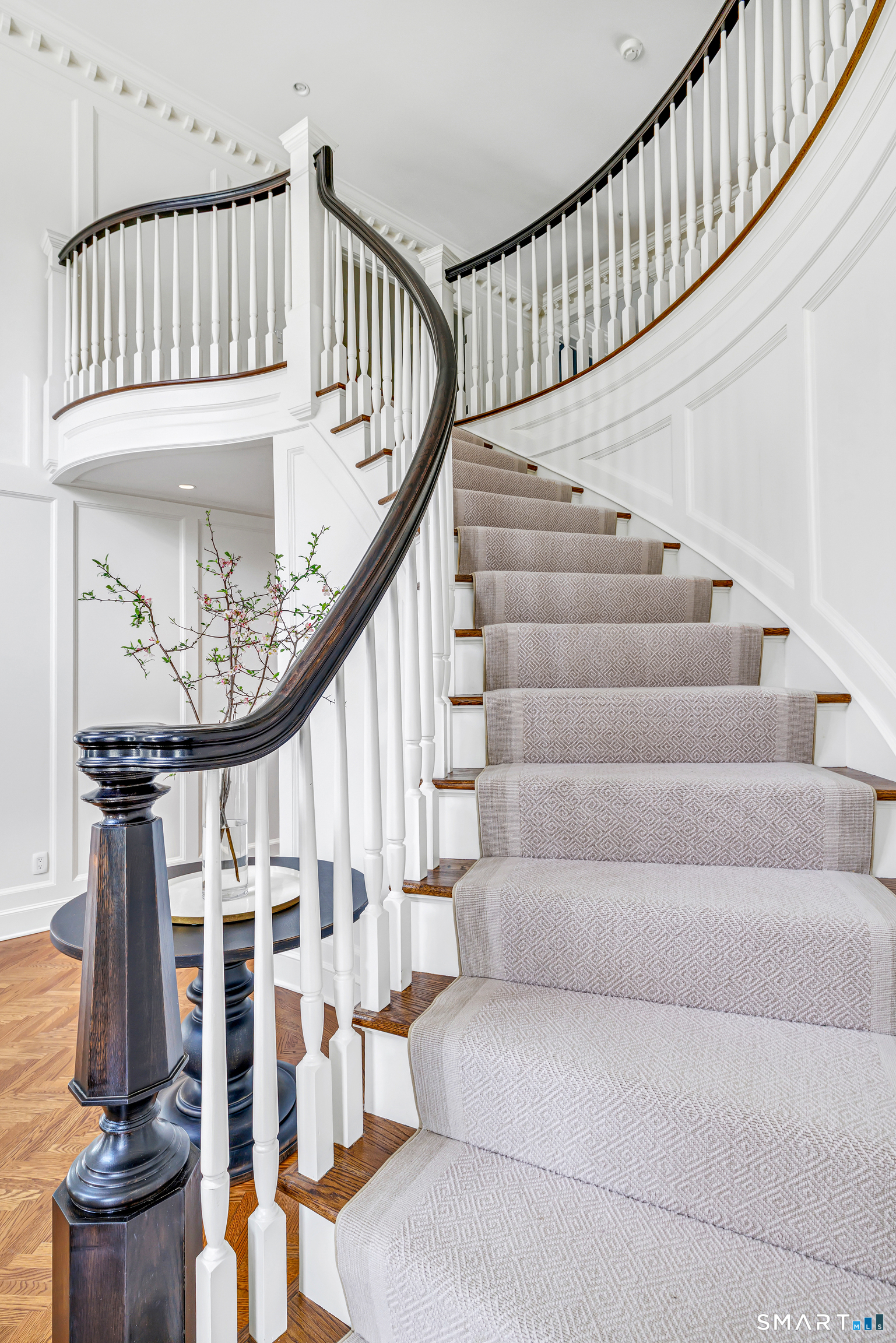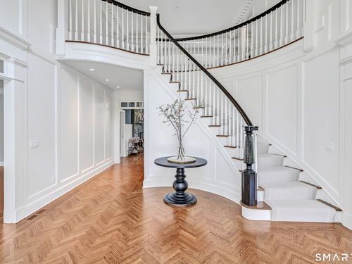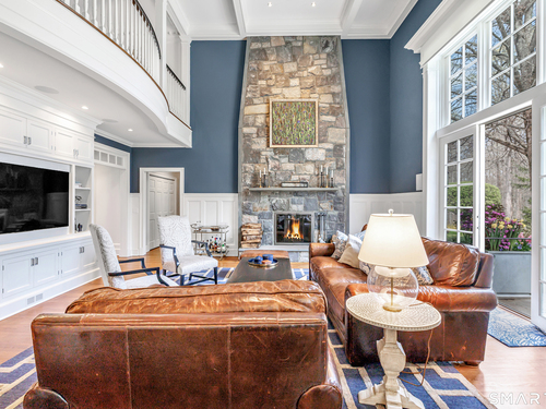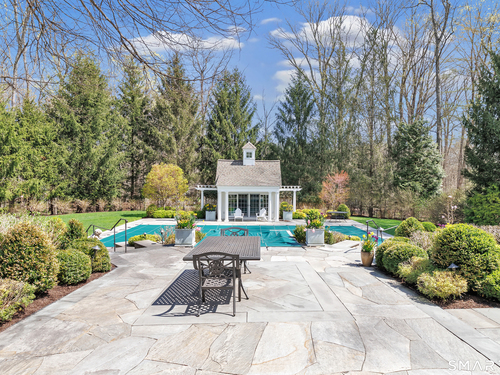 Tucked away on a quiet cul-de-sac in the heart of Greenfield Hill,this exceptional 7,100-sqft estate is set on two meticulously landscaped acres,offering a rare blend of timeless elegance & modern luxury.A sweeping two-tiered bluestone terrace frames the stunning 20'x40' heated gunite pool,creating a private outdoor sanctuary designed for both relaxation & grand-scale entertaining.Completely reimagined by an award-winning local builder in 2015,every finish & detail has been thoughtfully curated with an uncompromising eye for quality,craftsmanship,& design.Spanning 4 finished levels,the home offers 5-6 bedrooms;luxurious primary suites on both the 1st & 2nd floors,ideal for multigenerational living or accommodating guests with ease.Refined architectural elements & bespoke millwork enhance the home's stately presence,while a seamless flow of formal & informal spaces elevates everyday living.Designed for effortless entertaining, the gracious formal living room & the elegant dining room both feature gas fireplaces.The classic butler's pantry is complemented by a stylish wet bar. The chef's kitchen is a showpiece,featuring a dramatic 10-ft island with 2" Calacutta marble,dual sinks,premium appliances & a coffered ceiling,all opening to a spectacular 2-story family room anchored by a floor-to-ceiling stone fireplace.