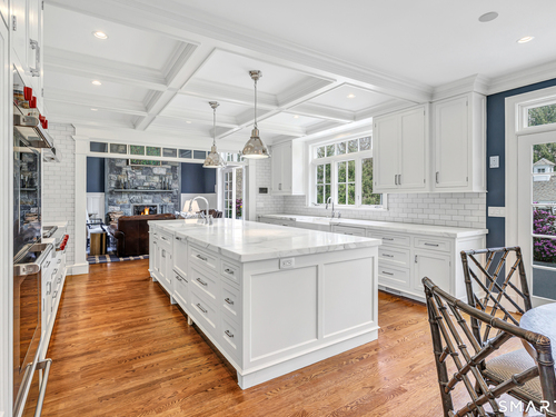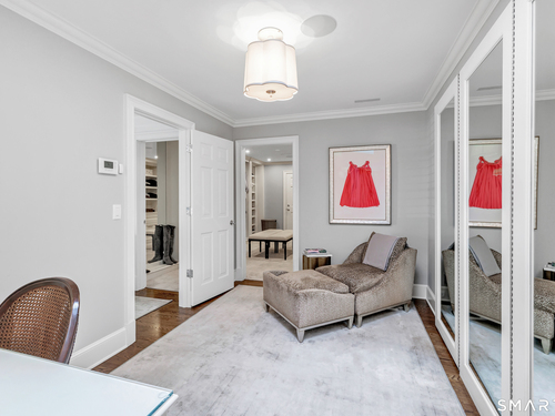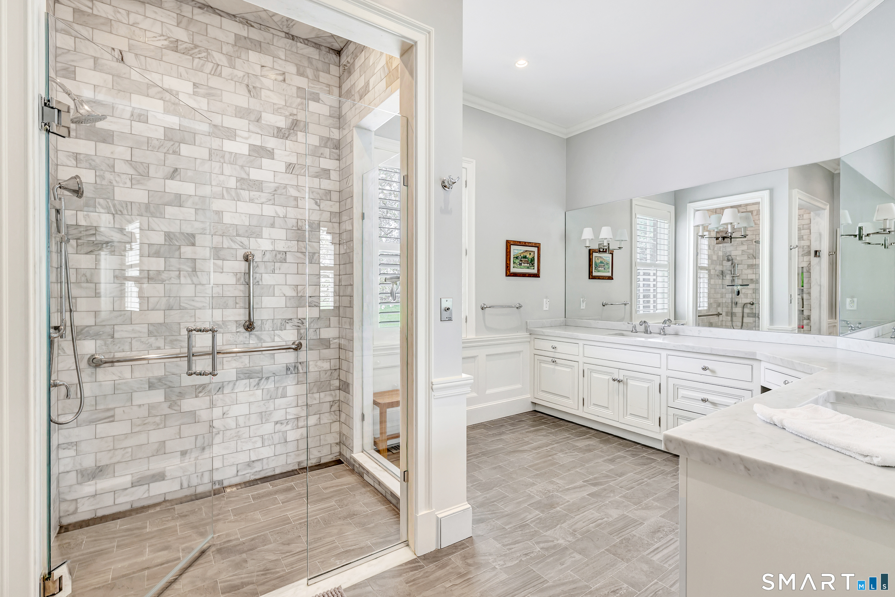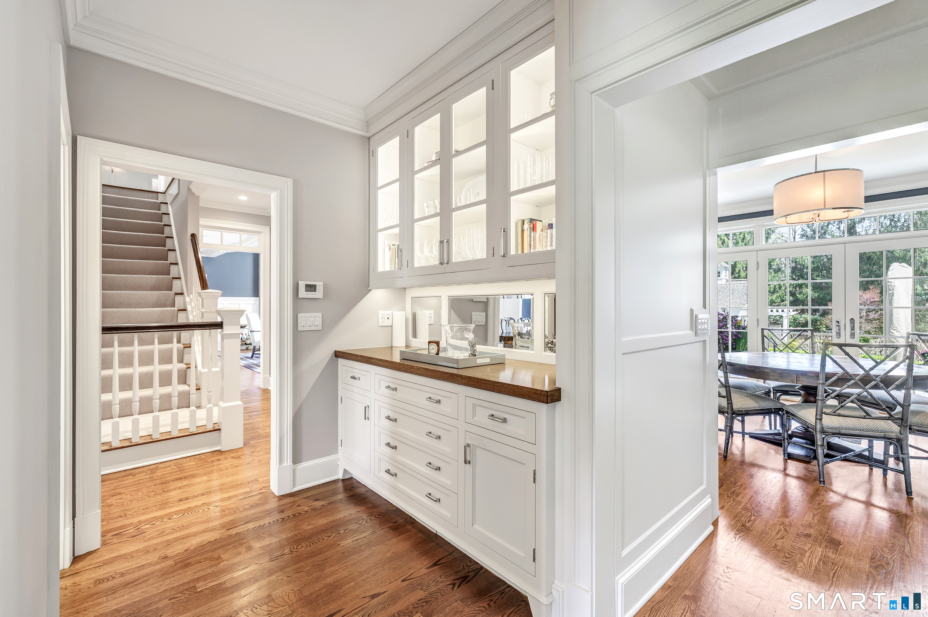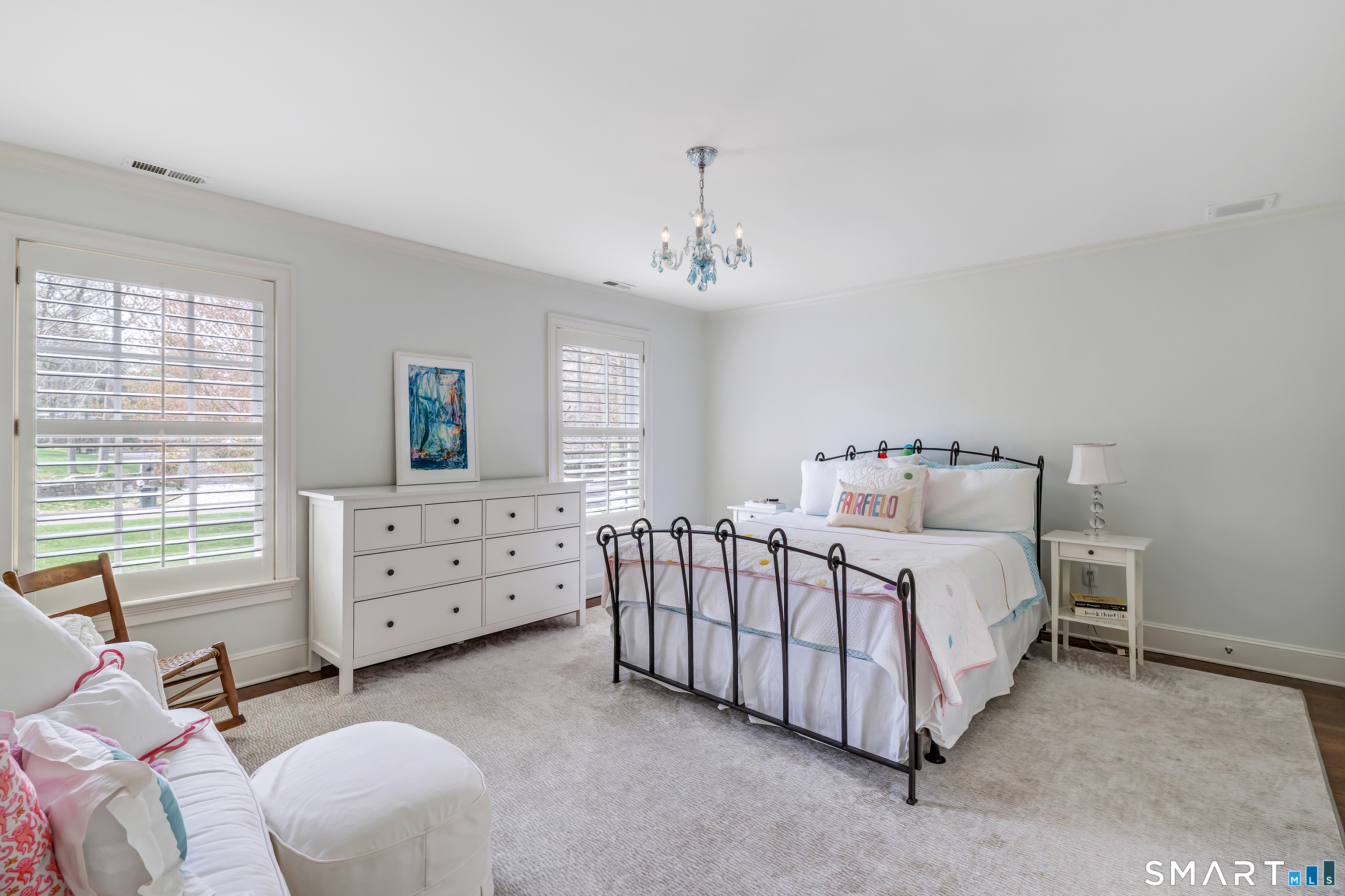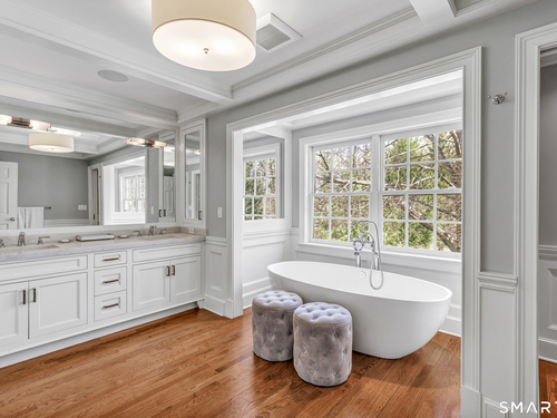 Tucked away on a quiet cul-de-sac in the heart of Greenfield Hill,this exceptional 7,100-sqft estate is set on two meticulously landscaped acres,offering a rare blend of timeless elegance & modern luxury.A sweeping two-tiered bluestone terrace frames the stunning 20'x40' heated gunite pool,creating a private outdoor sanctuary designed for both relaxation & grand-scale entertaining.Completely reimagined by an award-winning local builder in 2015,every finish & detail has been thoughtfully curated with an uncompromising eye for quality,craftsmanship,& design.Spanning 4 finished levels,the home offers 5-6 bedrooms;luxurious primary suites on both the 1st & 2nd floors,ideal for multigenerational living or accommodating guests with ease.Refined architectural elements & bespoke millwork enhance the home's stately presence,while a seamless flow of formal & informal spaces elevates everyday living.Designed for effortless entertaining, the gracious formal living room & the elegant dining room both feature gas fireplaces.The classic butler's pantry is complemented by a stylish wet bar. The chef's kitchen is a showpiece,featuring a dramatic 10-ft island with 2" Calacutta marble,dual sinks,premium appliances & a coffered ceiling,all opening to a spectacular 2-story family room anchored by a floor-to-ceiling stone fireplace.