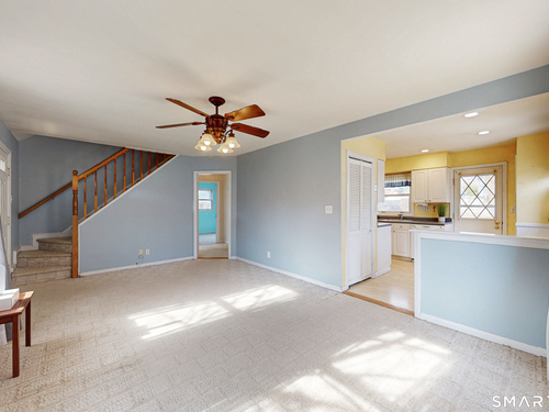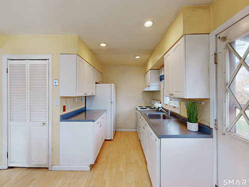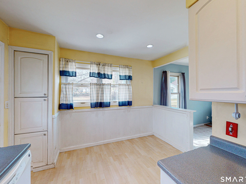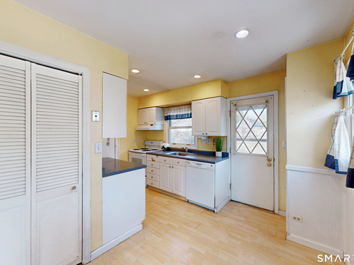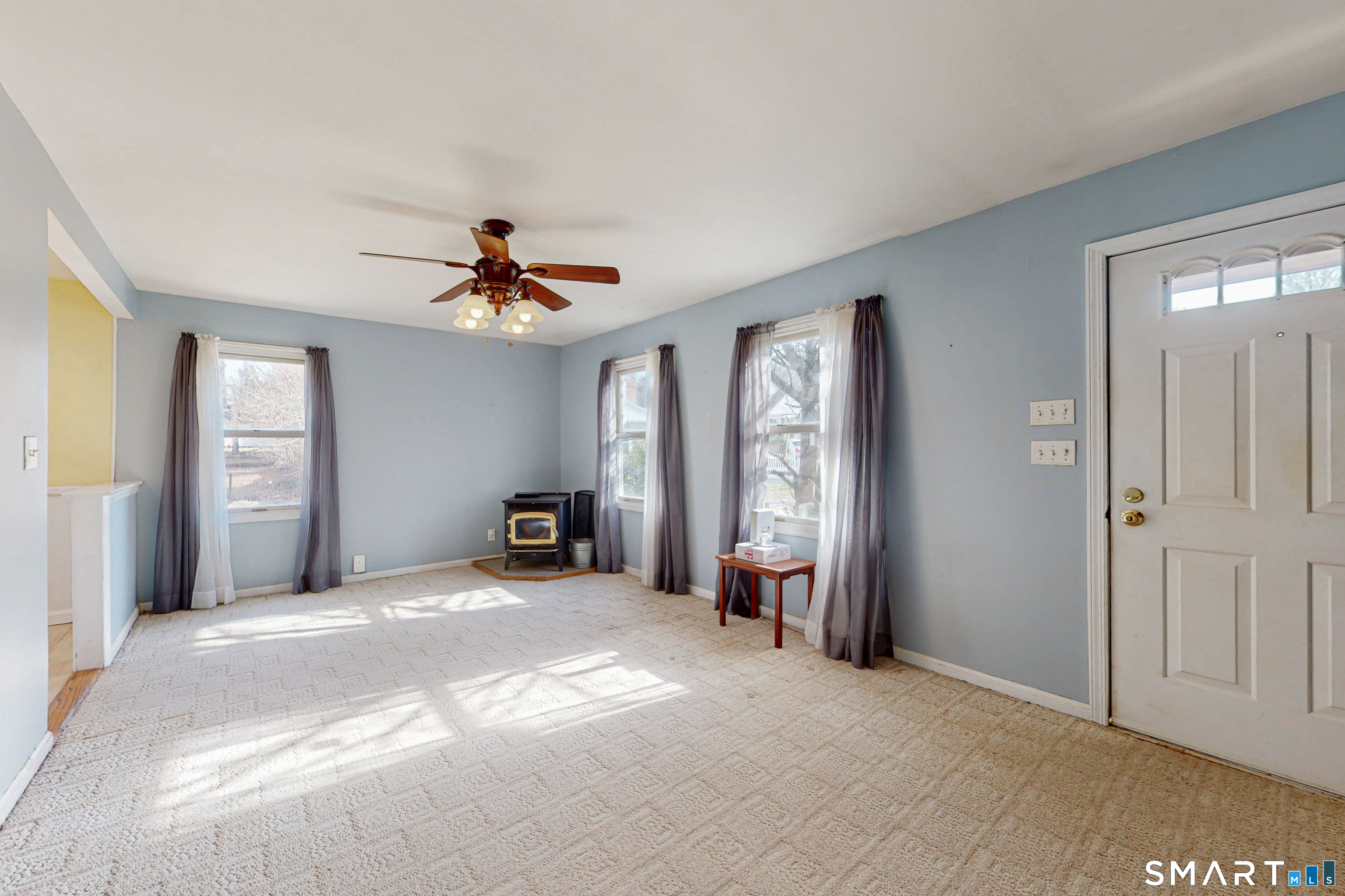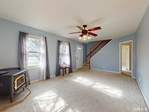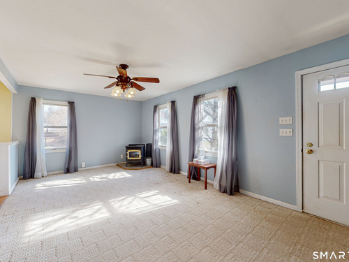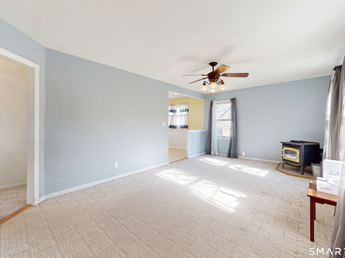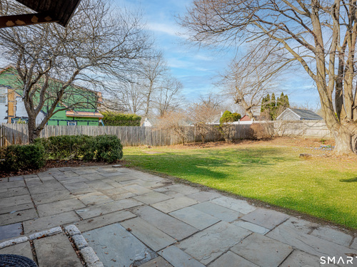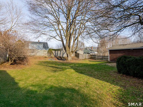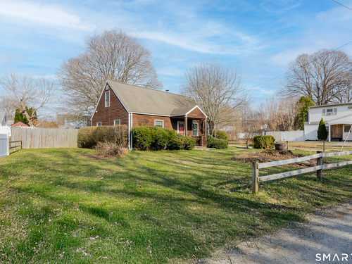 Discover incredible value in this charming 3/4 bedroom Cape Cod, perfectly situated on a quiet circular street in a highly desirable neighborhood. Bathed in an abundance of natural light, the interior features a spacious living room with cozy wall-to-wall carpeting, a ceiling fan, and a pellet stove perfect for chilly evenings. The heart of the home is the bright eat-in kitchen, offering ample counter and cabinet space along with a casual dining area that overlooks a sprawling, level, fenced-in backyard. Convenience is key with a main-level full bath featuring built-in laundry, while the generously sized bedrooms provide plenty of closet and storage space throughout. Experience efficient living with a Burnham oil furnace and the added benefit of city water and sewer. Outside, the property shines with a large detached one-car garage, extensive parking, and an extensive blue stone patio shaded by a majestic center tree-an ideal setting for summer barbecues and picnics. Sold "as-is," this home is a rare find and a fantastic opportunity to move into a prime location at an excellent price point.
