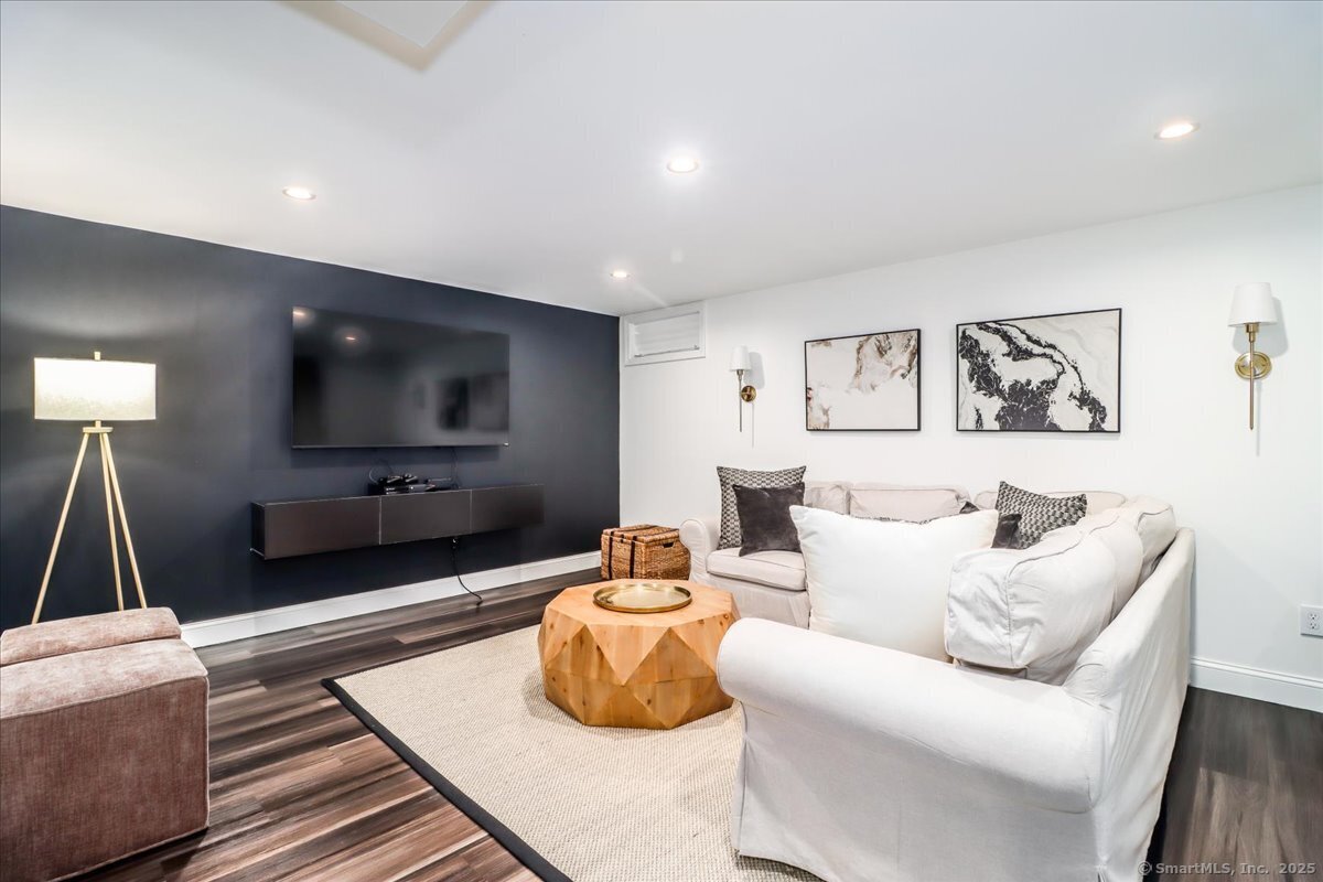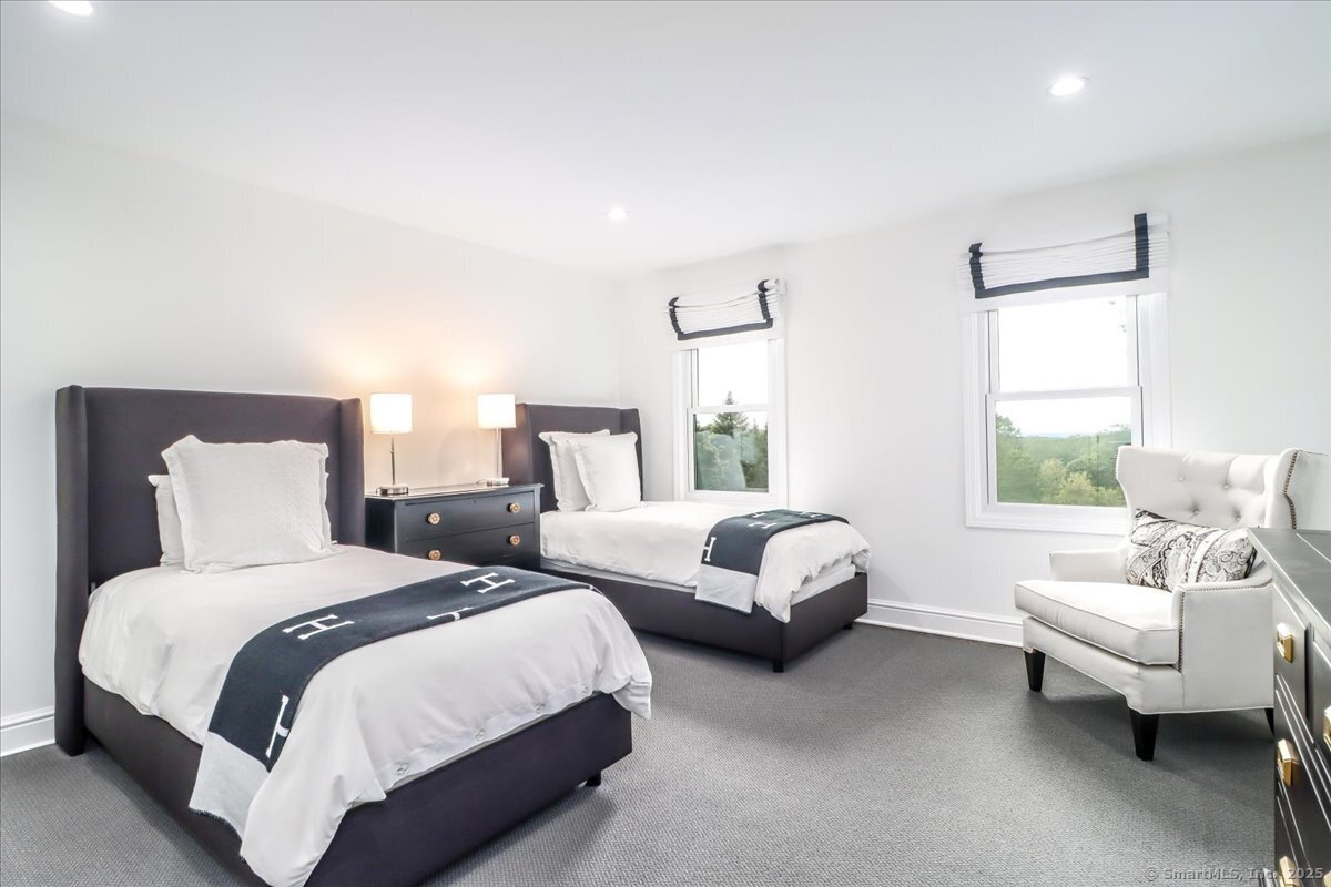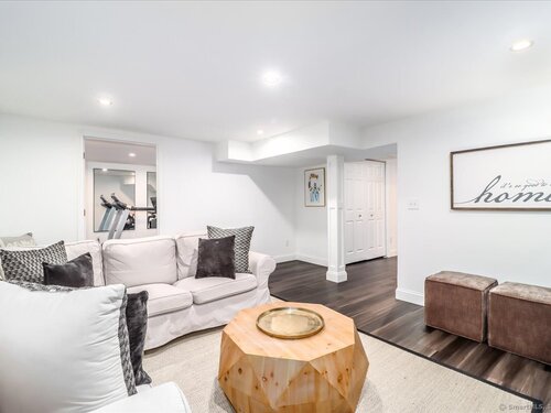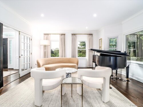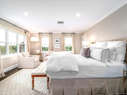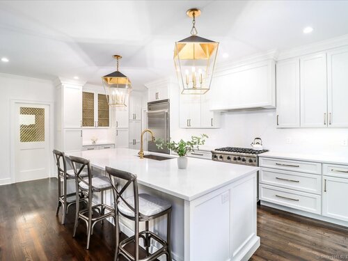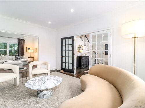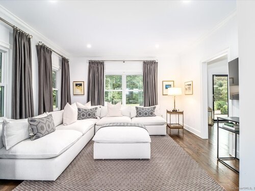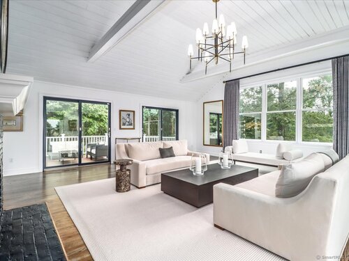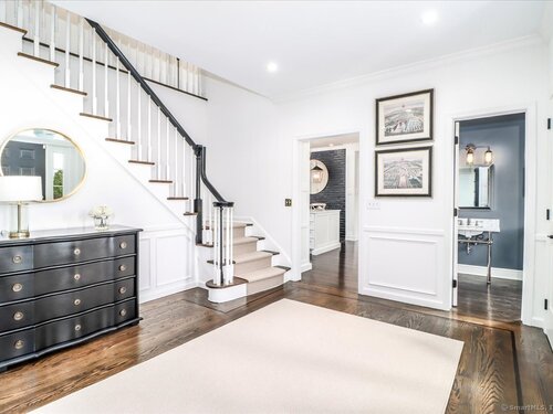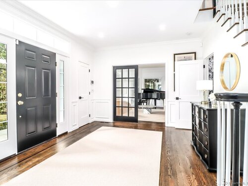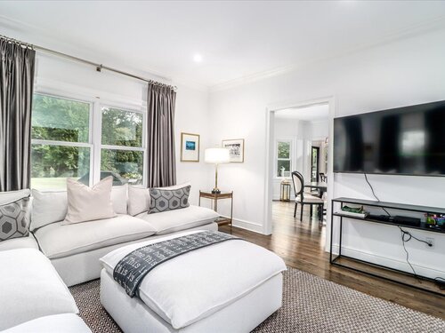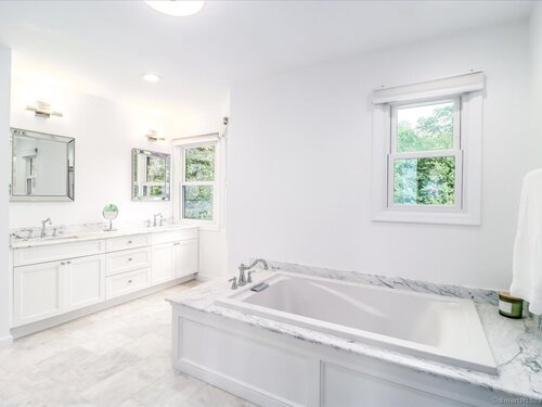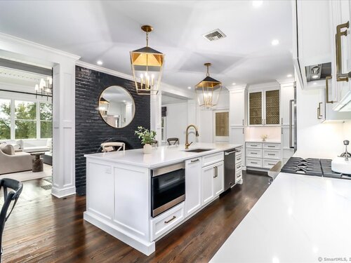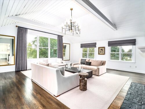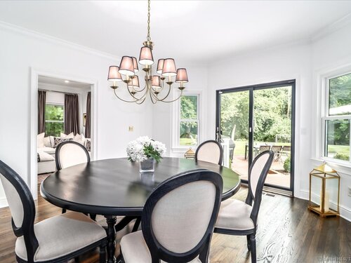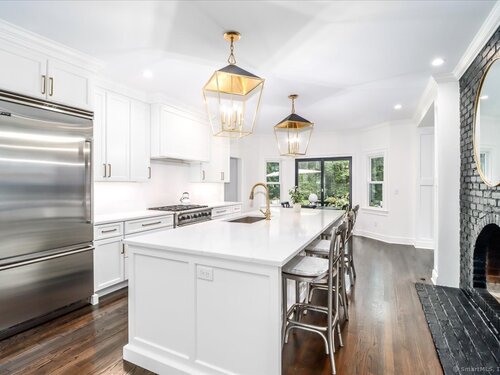 Welcome to 13 Old Castle Drive, a stunning, fully reimagined Colonial set on 1+ level acre lot and nestled on a peaceful cul-de-sac in one of Newtown's most sought-after neighborhoods with scenic views of the Borough. Thoughtfully renovated over the past three years, this elegant 4-bedroom, 2.5-bath residence combines timeless architecture with upscale modern living across 4,300+ square feet of beautifully finished space. Step inside to find refinished hardwood floors flowing throughout, fresh interior paint, and designer lighting that elevates each room. Remodeled gourmet, eat-in kitchen-with top-of-the-line Viking appliances, Quartz countertops, an expansive 10'x4' center island, walk-in butler's pantry with sink and beverage fridge. A double-sided gas fireplace connects the kitchen to the dramatic vaulted-ceiling family room, which features double sliding glass doors that open to new patio and decking. Main level also includes an oversized foyer with French doors leading to a music room or office, den space, inviting formal Dining Room along with a stylishly updated powder room. Upstairs, the primary suite boasts a new custom walk-in closet, full bath with spa-like ambiance. Renovated hall bathroom serves the additional 3 bedrooms with style and function. New Andersen windows and French doors on the main level, and Harvey replacement windows upstairs. Finished lower level with a home gym, media room, designer laundry with barn door, and mudroom and generous storage.