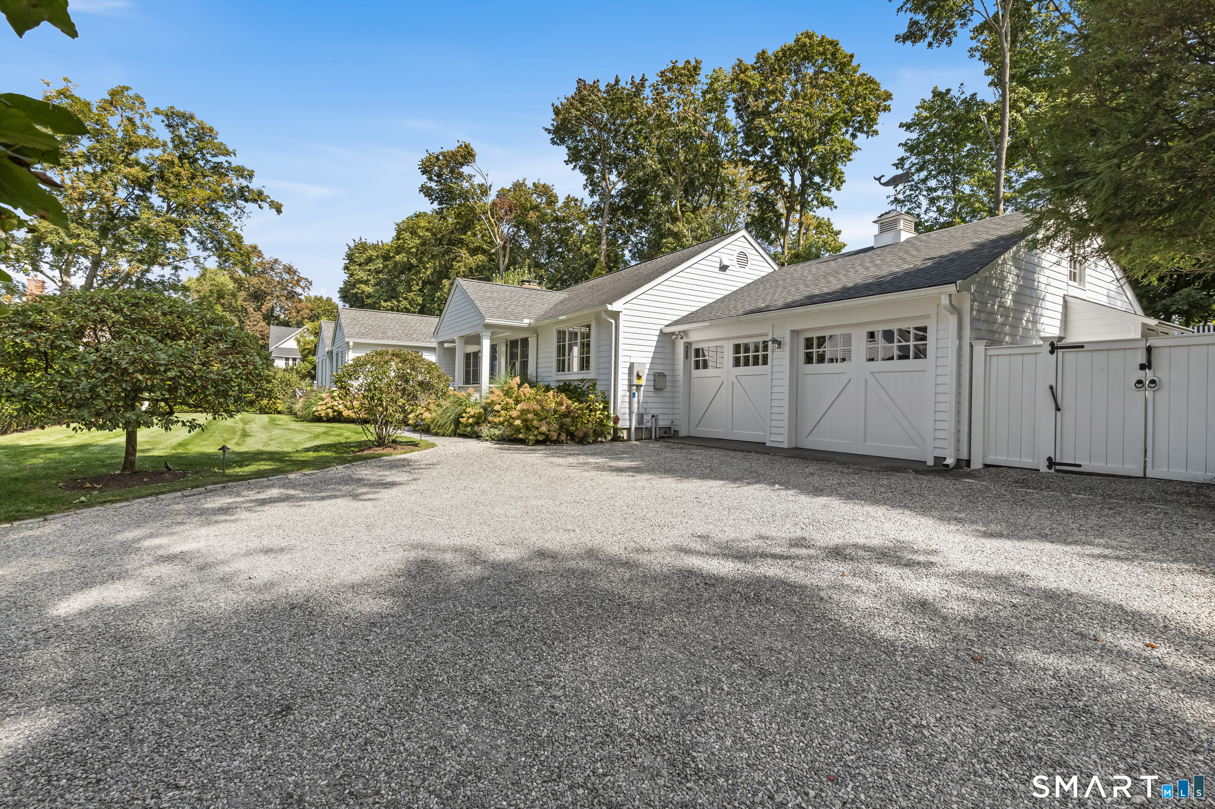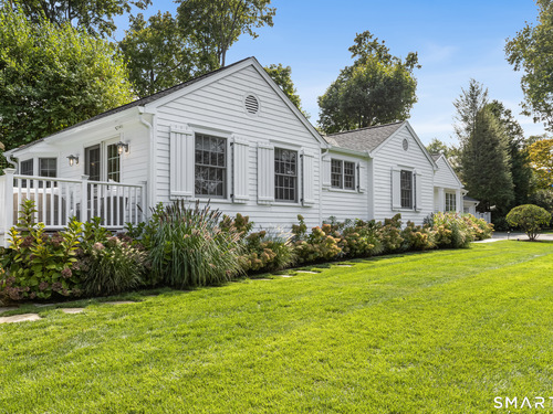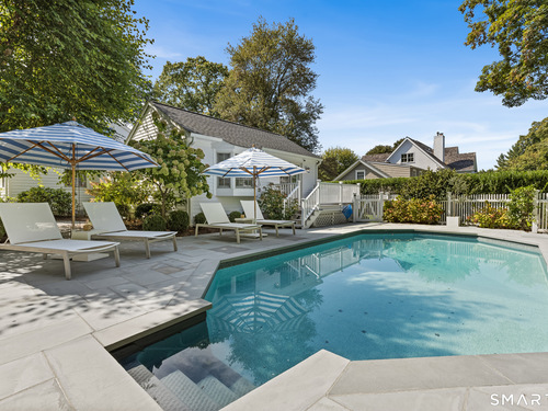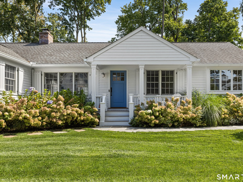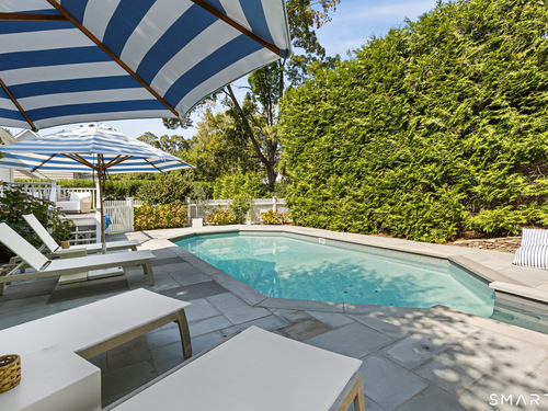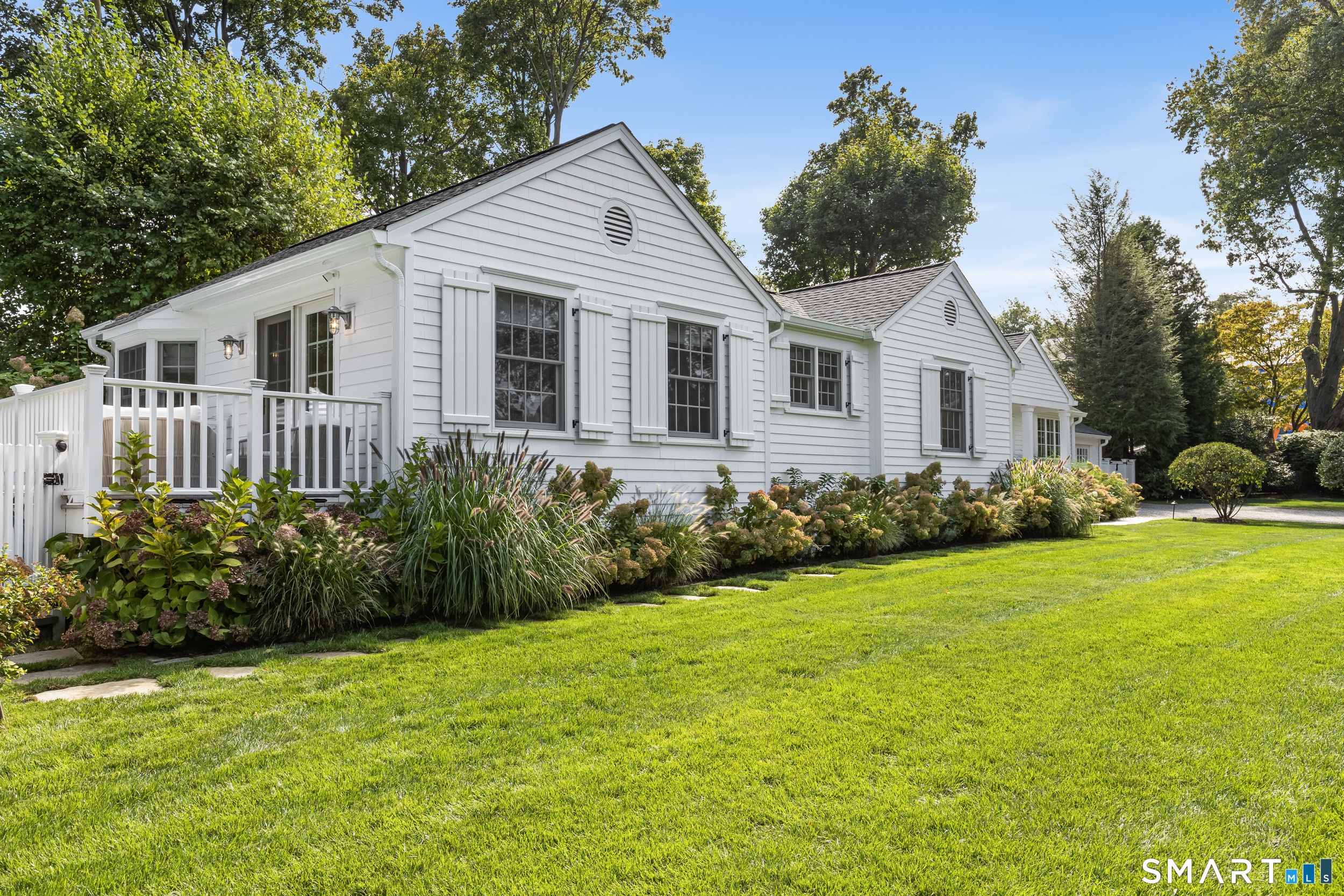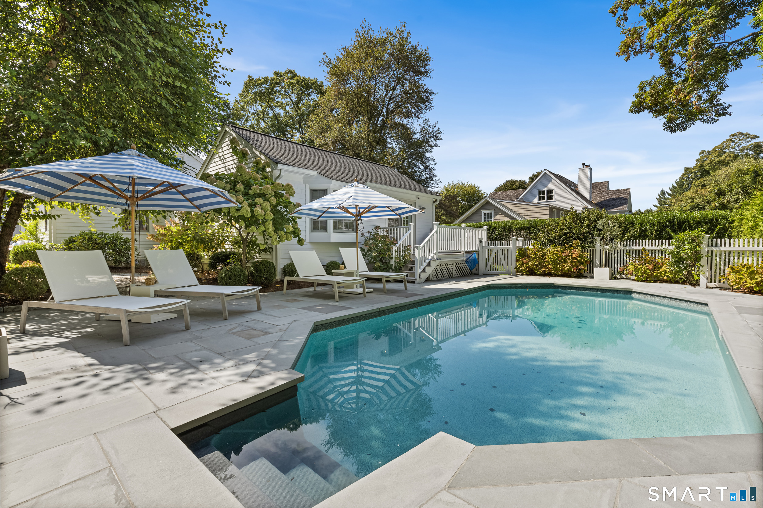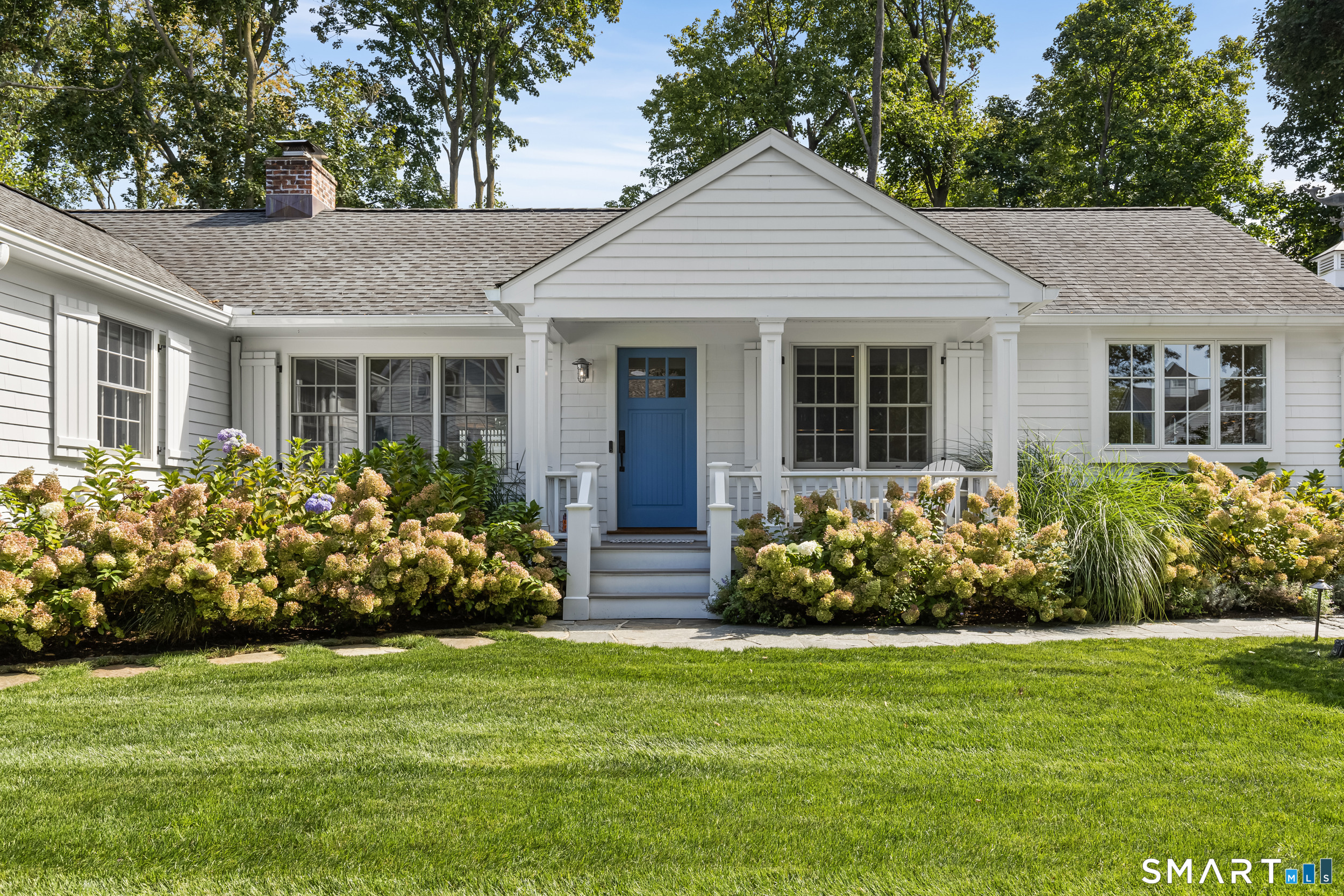 A charming Rowayton home, in a prime location, expertly styled by Lynn Morgan Designs. Situated in the vibrant heart of Rowayton, this residence is just steps away from 101, Rowayton Seafood, quaint downtown Rowayton, and Bayley Beach. Escape to your serene .32-acre retreat with a pool, privately tucked away at the end of the street. The impeccably landscaped property offers outdoor spaces perfect for entertaining, along with a private pool for relaxation. The stylish kitchen with a large island flows seamlessly into the updated dining room and spacious living room featuring a cozy fireplace, creating an ideal setting for gatherings. The generous primary suite includes a vaulted cathedral ceiling, a luxurious bathroom, and an office nook for remote work. Two additional bedrooms and a bathroom complete the main floor. The total square footage of 3,167 includes the lower-level, offering a family room, exercise area, bedroom, and full bathroom. The attached two-car garage and driveway offer ample parking for extra convenience in this centrally located Rowayton residence. The property's location at the end of the street, with elevation, sits safely outside of the flood zone.