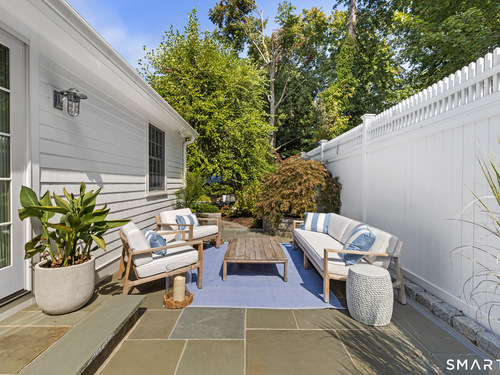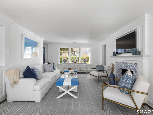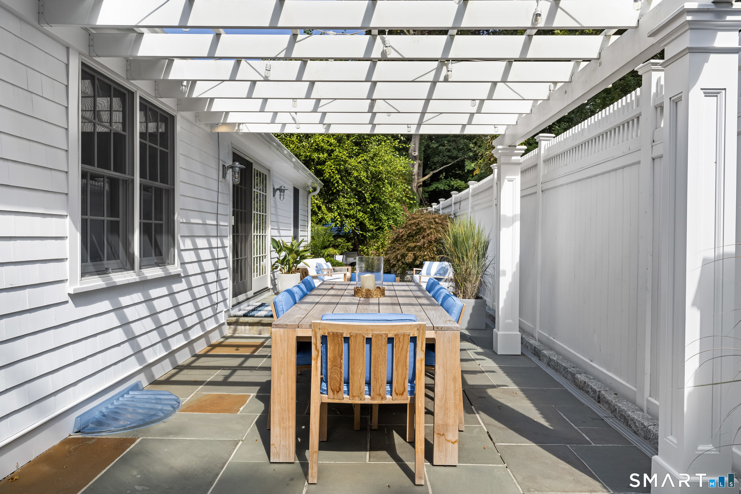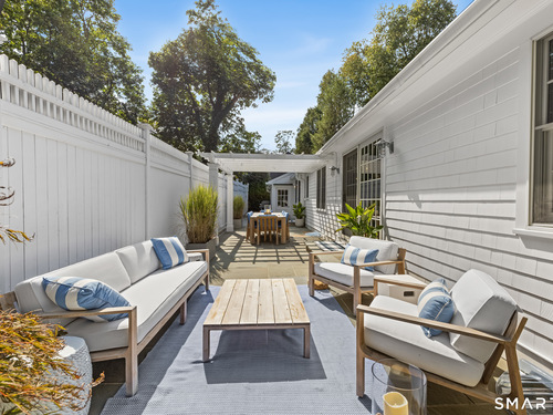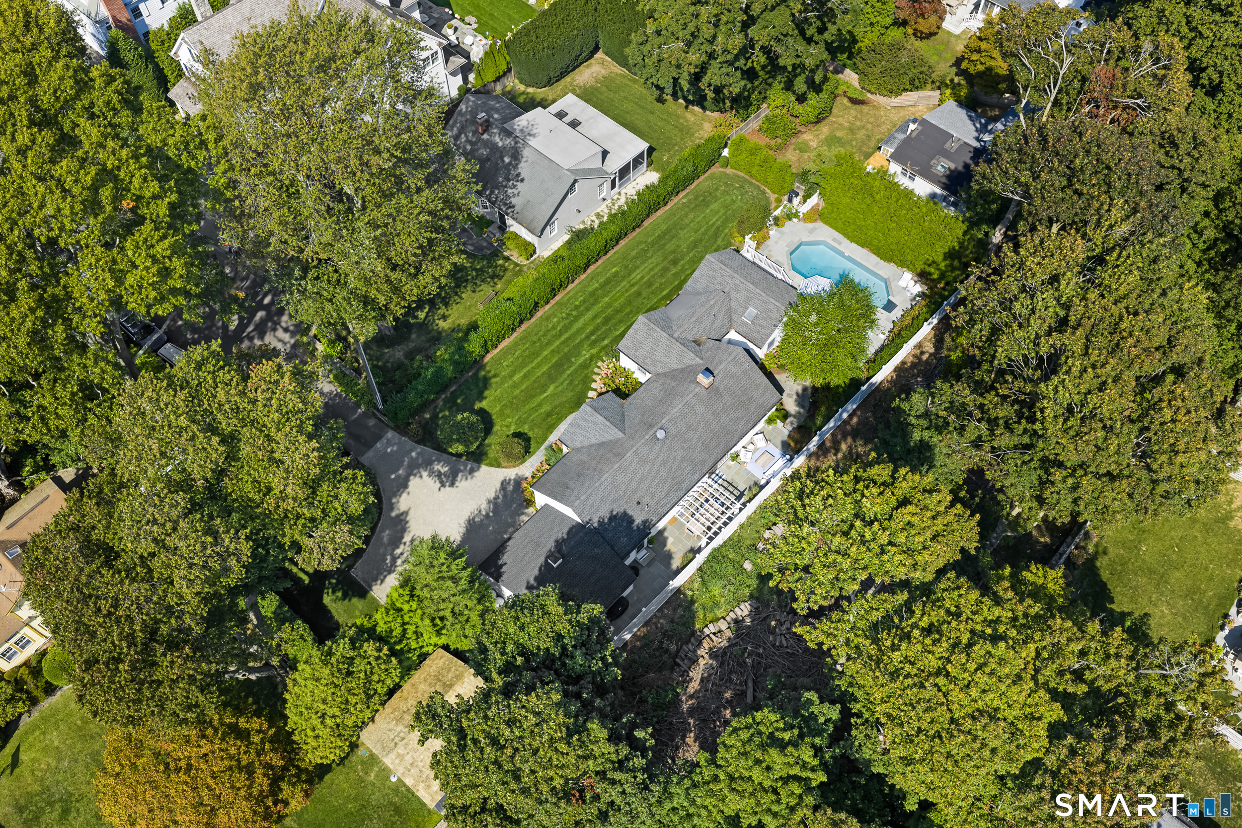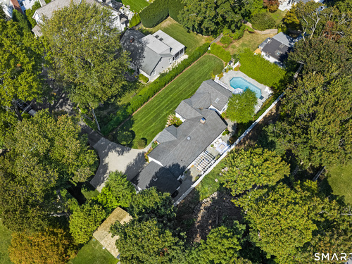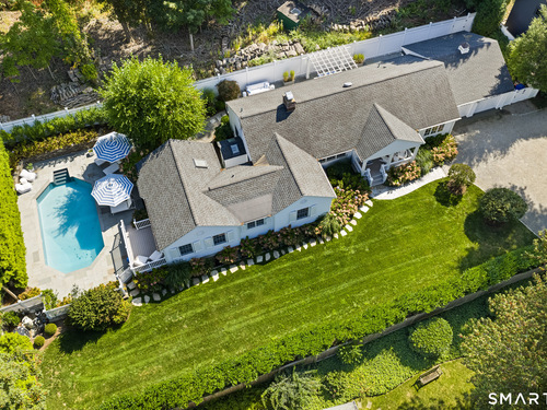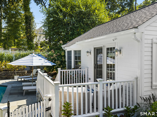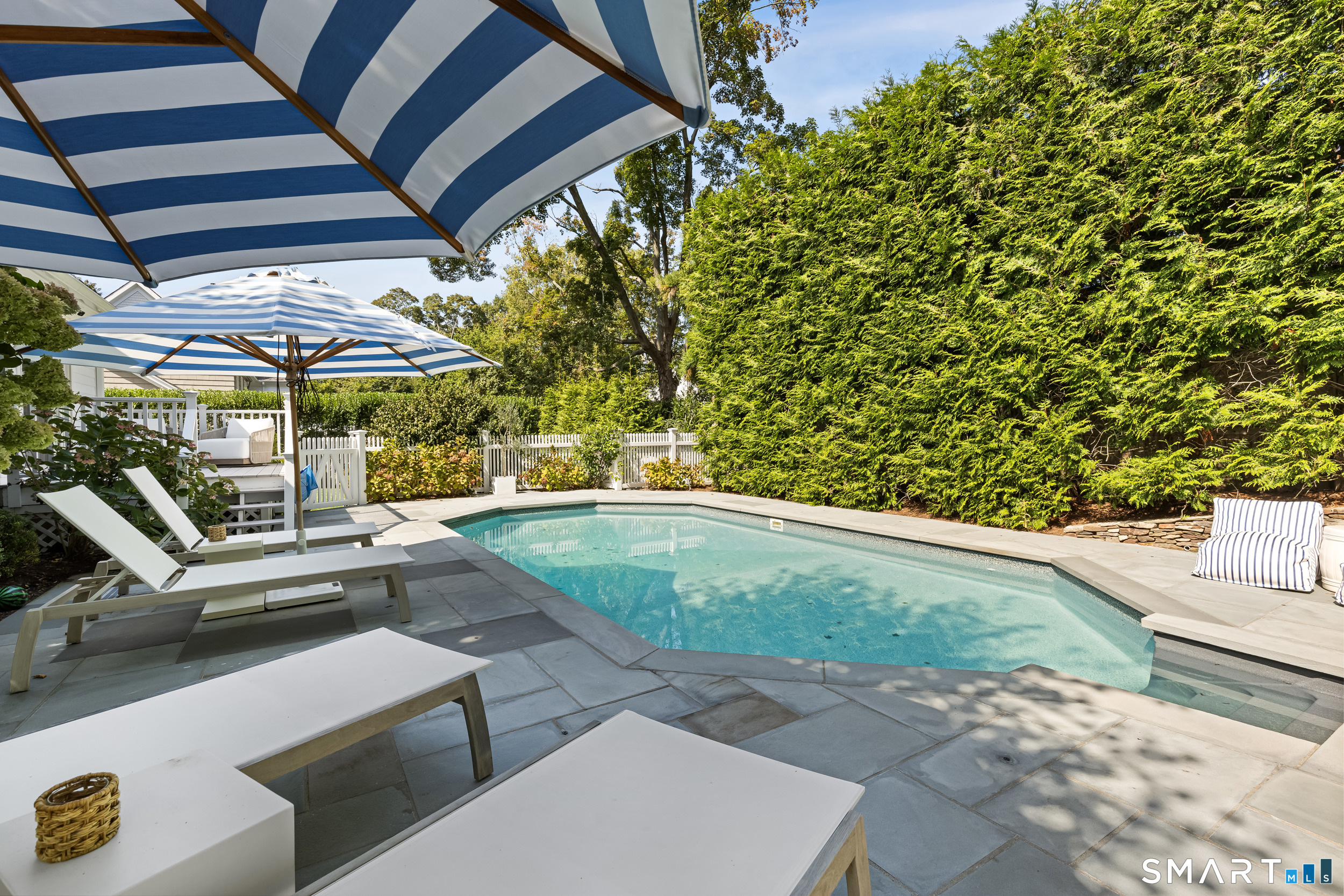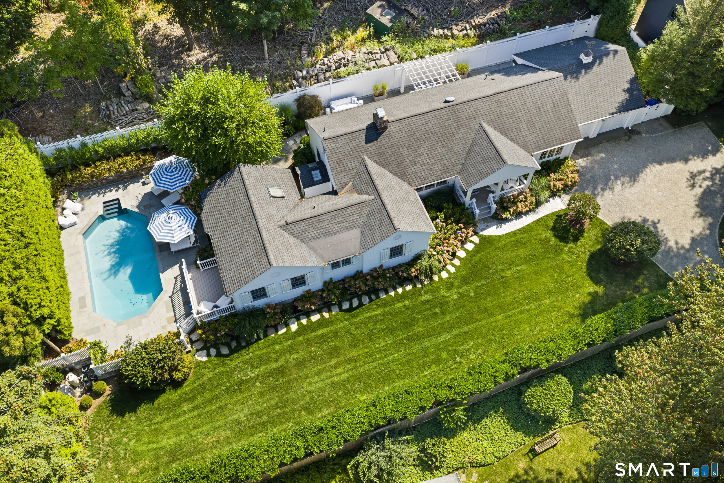 A charming Rowayton home, in a prime location, expertly styled by Lynn Morgan Designs. Situated in the vibrant heart of Rowayton, this residence is just steps away from 101, Rowayton Seafood, quaint downtown Rowayton, and Bayley Beach. Escape to your serene .32-acre retreat with a pool, privately tucked away at the end of the street. The impeccably landscaped property offers outdoor spaces perfect for entertaining, along with a private pool for relaxation. The stylish kitchen with a large island flows seamlessly into the updated dining room and spacious living room featuring a cozy fireplace, creating an ideal setting for gatherings. The generous primary suite includes a vaulted cathedral ceiling, a luxurious bathroom, and an office nook for remote work. Two additional bedrooms and a bathroom complete the main floor. The total square footage of 3,167 includes the lower-level, offering a family room, exercise area, bedroom, and full bathroom. The attached two-car garage and driveway offer ample parking for extra convenience in this centrally located Rowayton residence. The property's location at the end of the street, with elevation, sits safely outside of the flood zone.