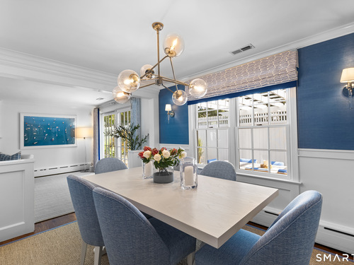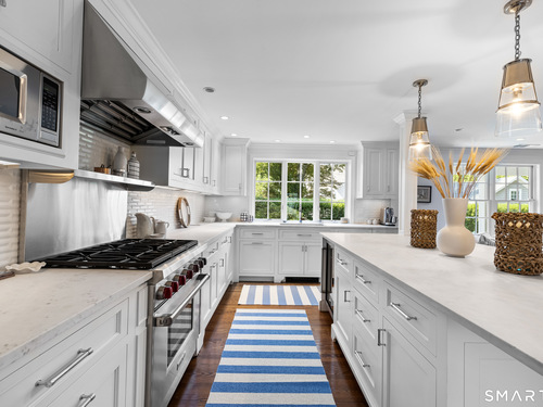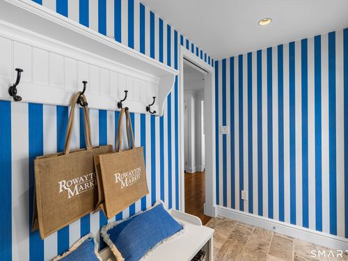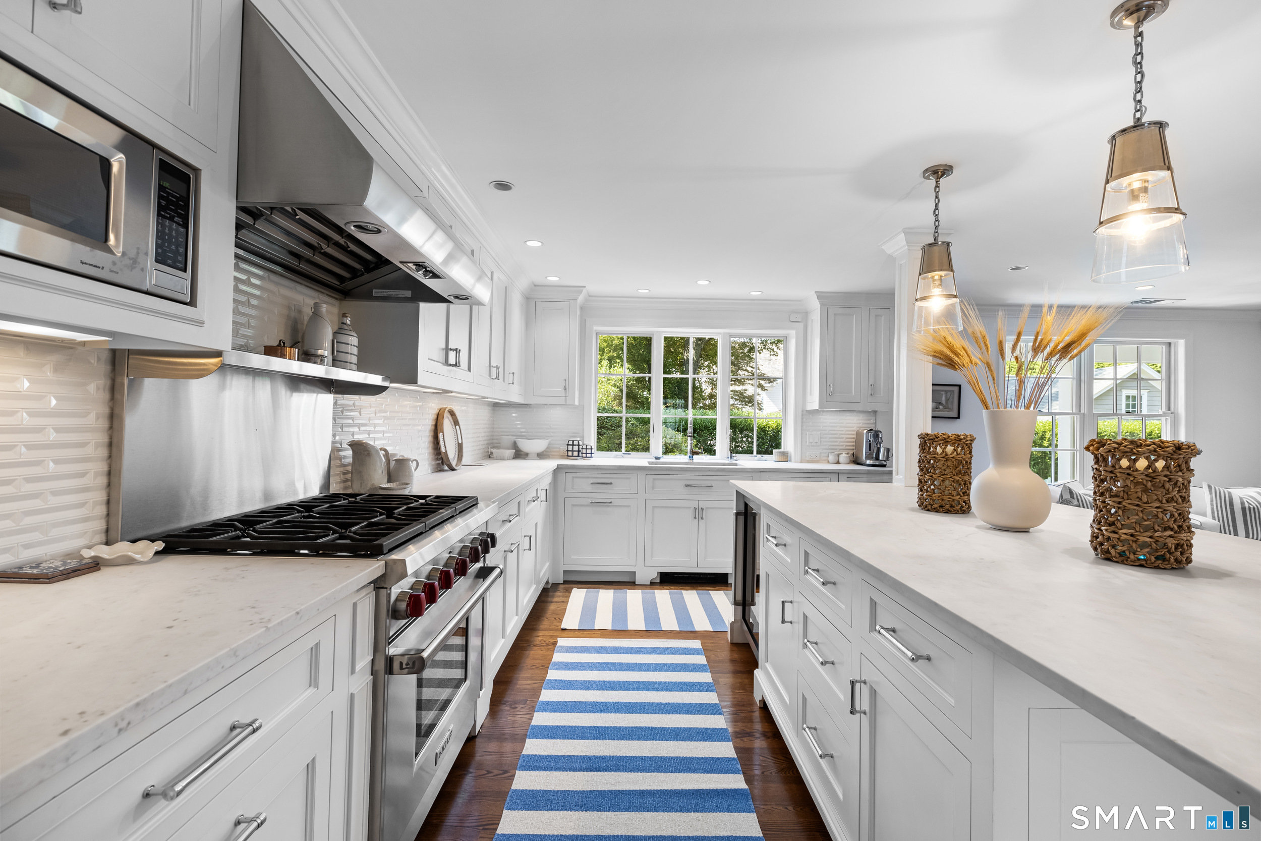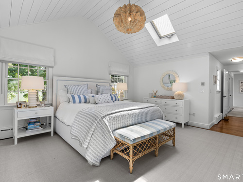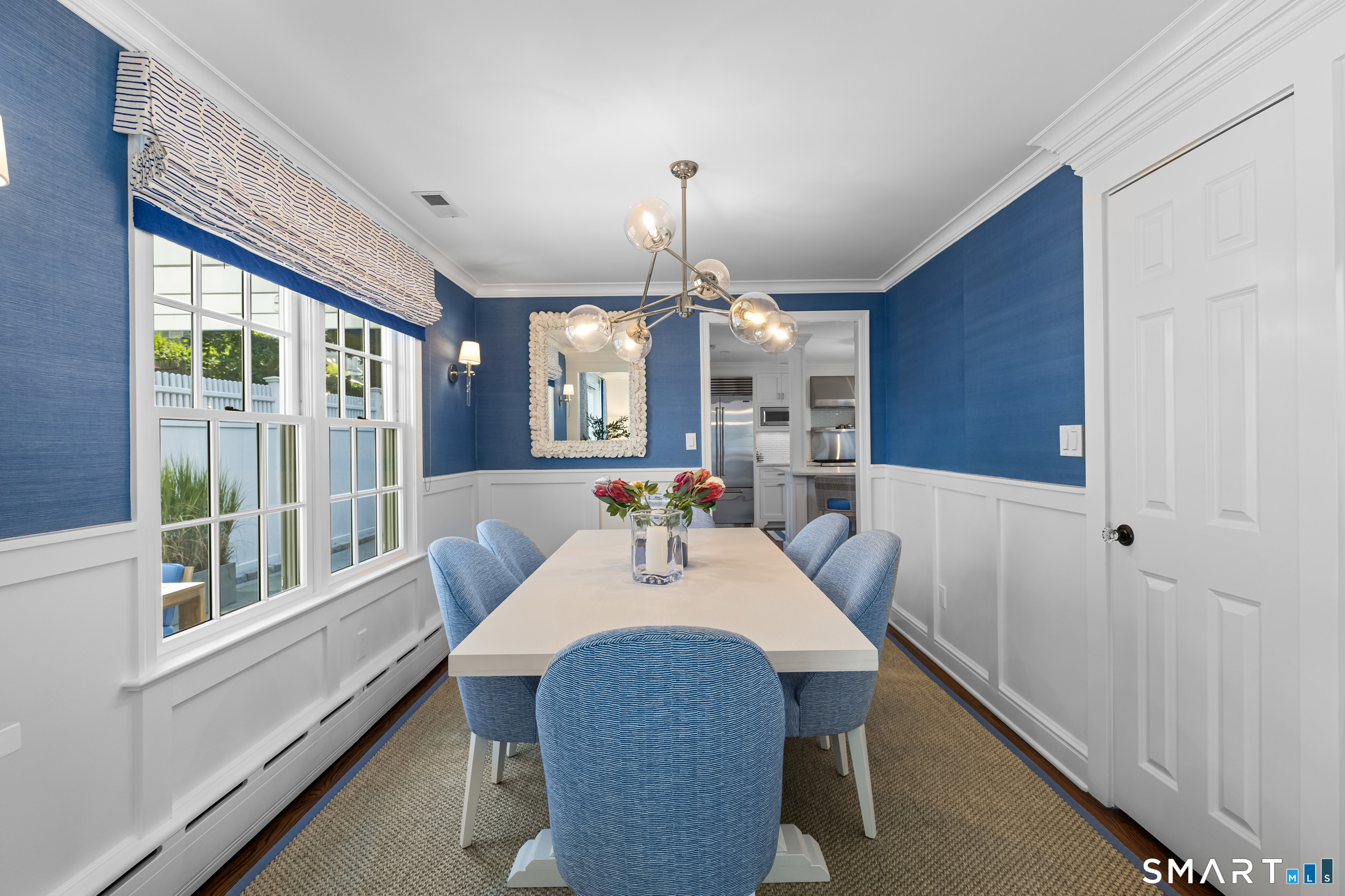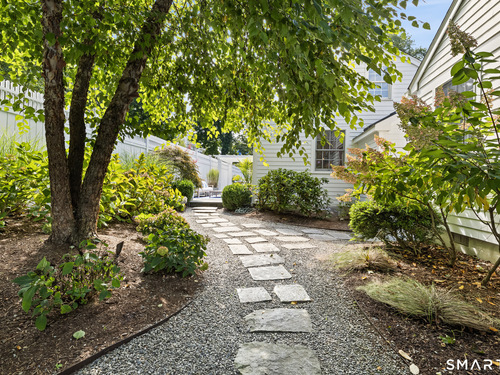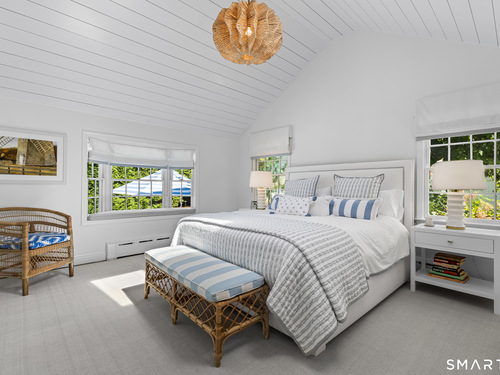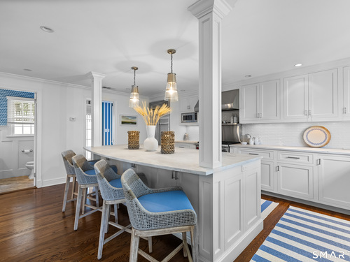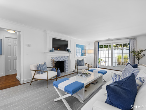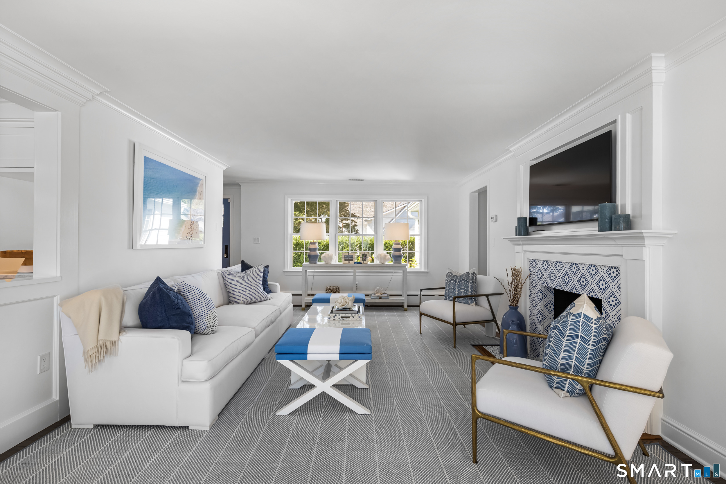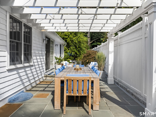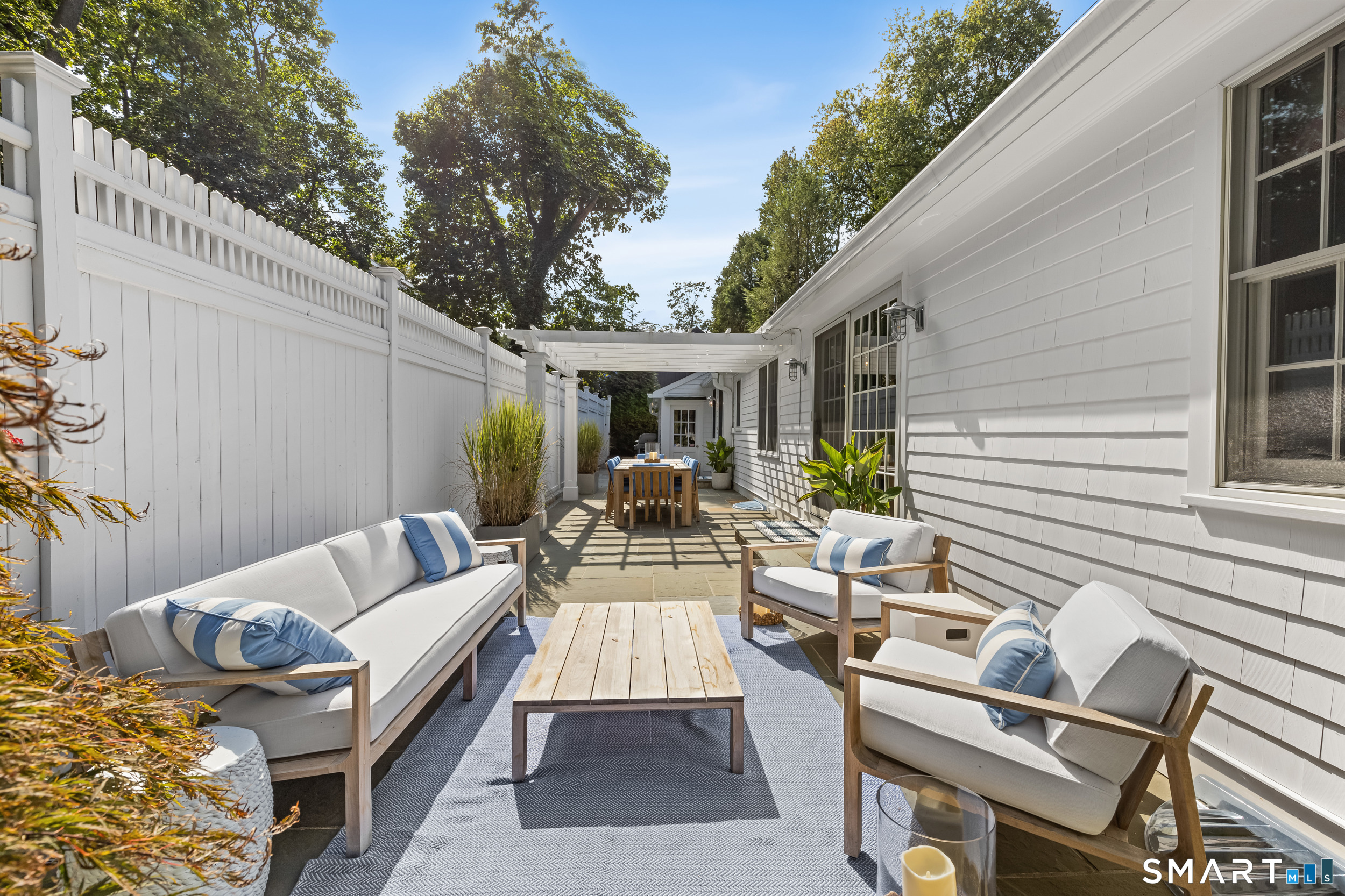 A charming Rowayton home, in a prime location, expertly styled by Lynn Morgan Designs. Situated in the vibrant heart of Rowayton, this residence is just steps away from 101, Rowayton Seafood, quaint downtown Rowayton, and Bayley Beach. Escape to your serene .32-acre retreat with a pool, privately tucked away at the end of the street. The impeccably landscaped property offers outdoor spaces perfect for entertaining, along with a private pool for relaxation. The stylish kitchen with a large island flows seamlessly into the updated dining room and spacious living room featuring a cozy fireplace, creating an ideal setting for gatherings. The generous primary suite includes a vaulted cathedral ceiling, a luxurious bathroom, and an office nook for remote work. Two additional bedrooms and a bathroom complete the main floor. The total square footage of 3,167 includes the lower-level, offering a family room, exercise area, bedroom, and full bathroom. The attached two-car garage and driveway offer ample parking for extra convenience in this centrally located Rowayton residence. The property's location at the end of the street, with elevation, sits safely outside of the flood zone.