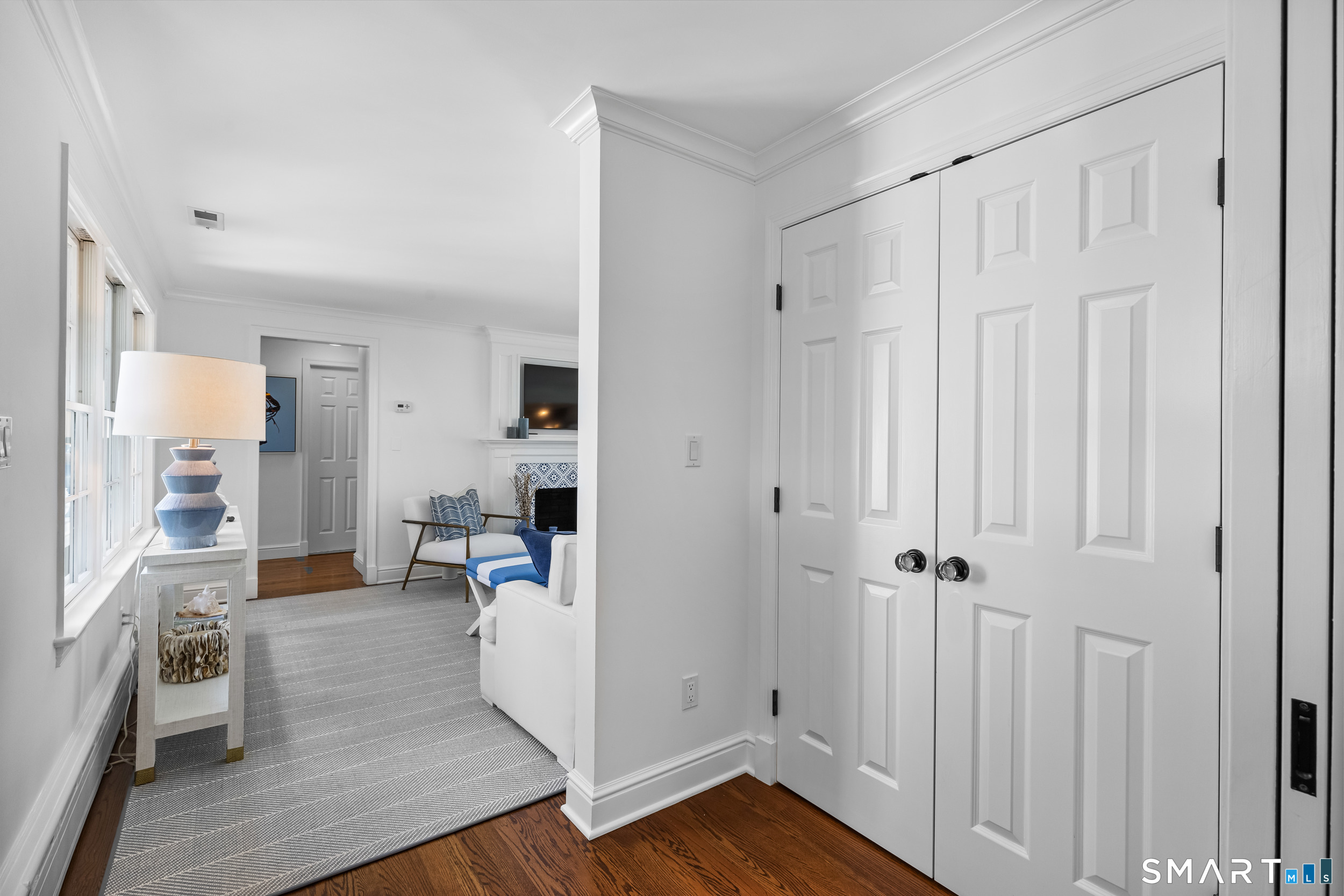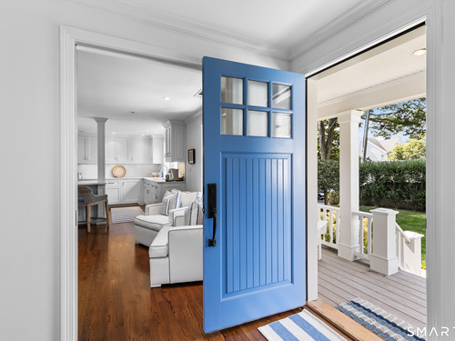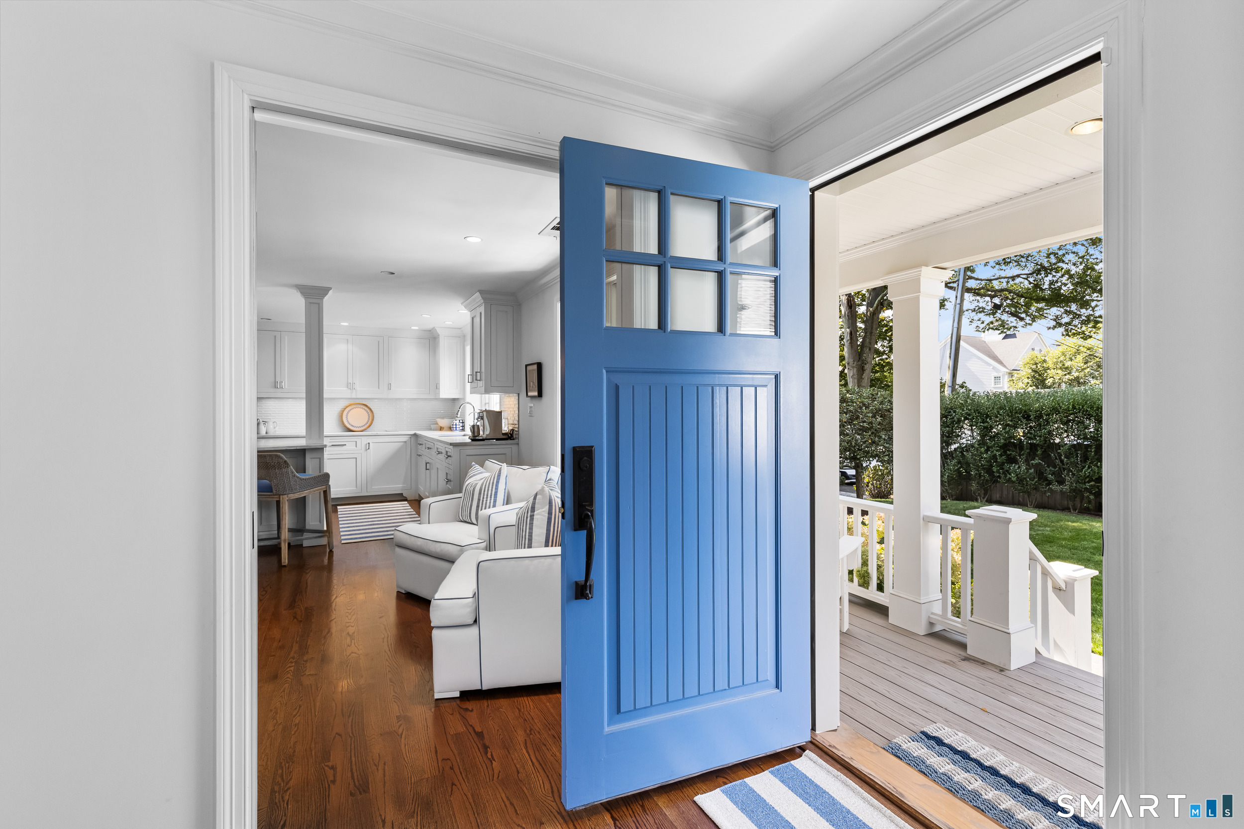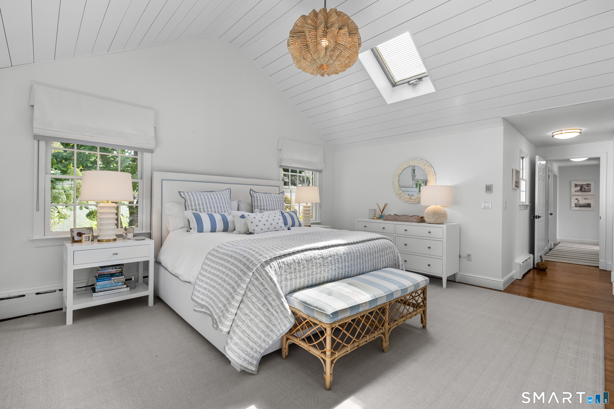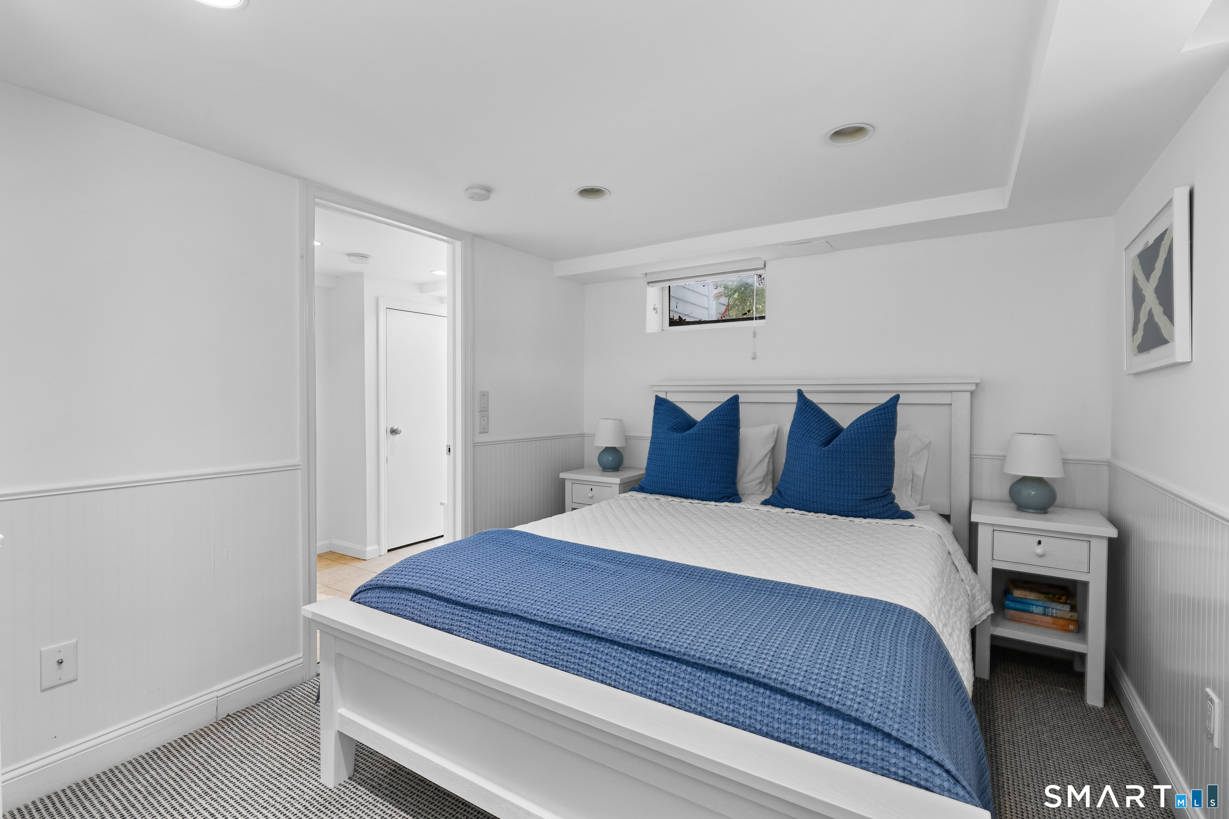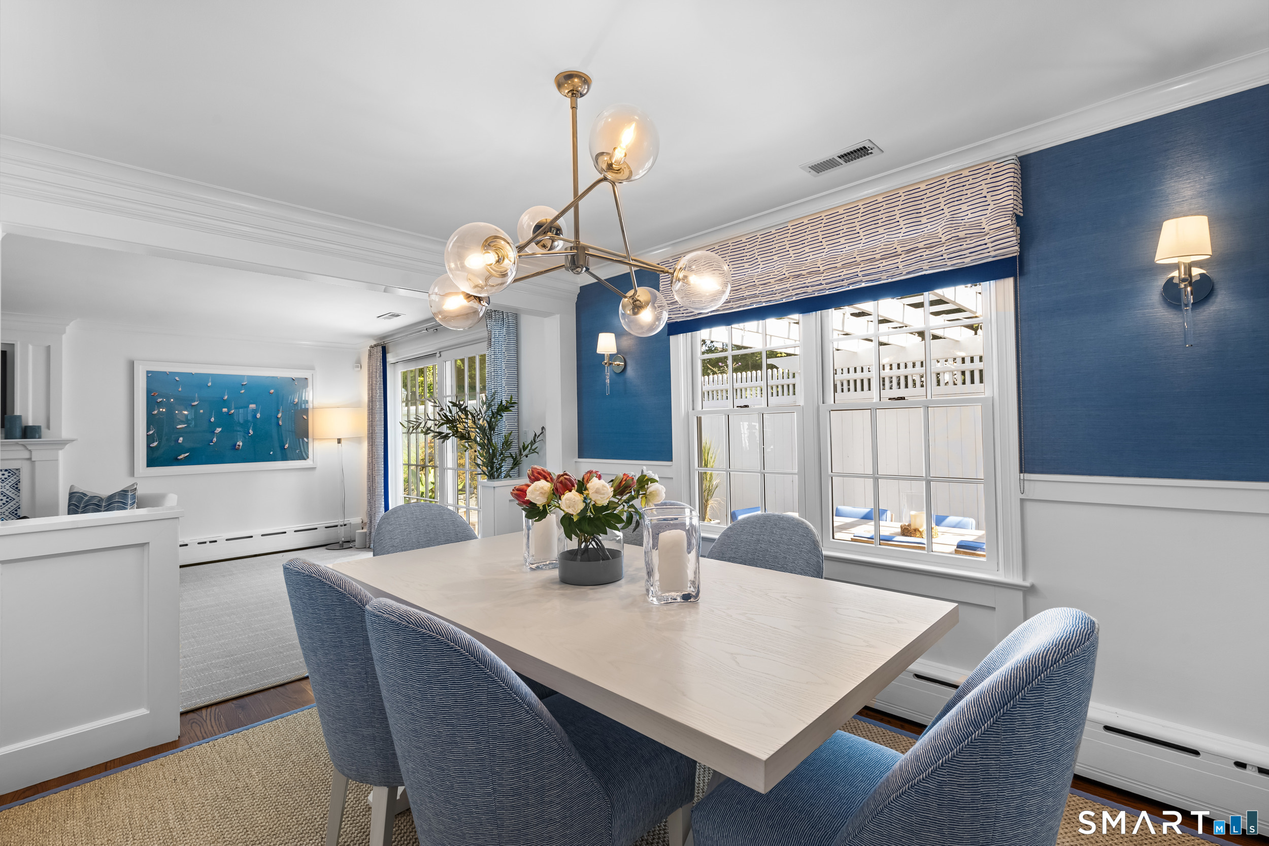 A charming Rowayton home, in a prime location, expertly styled by Lynn Morgan Designs. Situated in the vibrant heart of Rowayton, this residence is just steps away from 101, Rowayton Seafood, quaint downtown Rowayton, and Bayley Beach. Escape to your serene .32-acre retreat with a pool, privately tucked away at the end of the street. The impeccably landscaped property offers outdoor spaces perfect for entertaining, along with a private pool for relaxation. The stylish kitchen with a large island flows seamlessly into the updated dining room and spacious living room featuring a cozy fireplace, creating an ideal setting for gatherings. The generous primary suite includes a vaulted cathedral ceiling, a luxurious bathroom, and an office nook for remote work. Two additional bedrooms and a bathroom complete the main floor. The total square footage of 3,167 includes the lower-level, offering a family room, exercise area, bedroom, and full bathroom. The attached two-car garage and driveway offer ample parking for extra convenience in this centrally located Rowayton residence. The property's location at the end of the street, with elevation, sits safely outside of the flood zone.