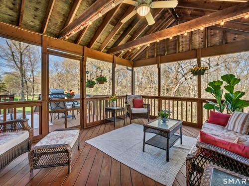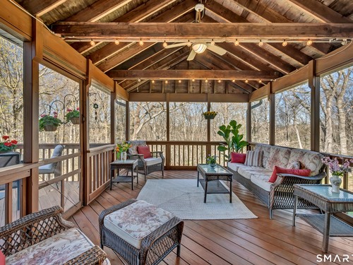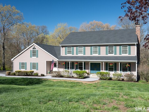 Dreaming of a beautiful colonial home with a farmhouse front porch, located on an idyllic cul-de-sac in a highly desirable Brookfield neighborhood? Well, your dreams await here, at 13 Rajcula Farm Road. From the moment you step into the grand foyer through the double door entry, you are greeted by a bright, light filled space, classic center hall colonial with a formal dining room with an exquisite tray ceiling to the left & on right, a living room with fireplace and French doors that open to the family room, lending a great flow for entertaining. Family room leads into the well appointed kitchen with granite counters, eating area with slider to the amazing screened in porch with exterior deck attached, ready for outdoor grilling and entertaining, sitting and relaxing in the shade on a hot summer day while you enjoy the expansive views of nature from the back yard. Another special feature of this home is second kitchen, wonderful for overflow when preparing large meals for gatherings. The main level includes two additional rooms with exterior entry and a full bath, this versatile area can suit many needs. Second floor boasts 4 generous size bedrooms including the Primary ensuite with jacuzzi tub. Accessible from second floor is a large walk-in attic above the garage & can be finished off as a possible 5th bedroom. Huge basement w/ high ceilings has an additional 1900 sq. ft. that can be finished off, already plumbed for a full bath & walks out to a paved patio. New roof 2025