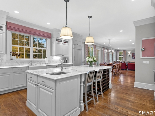 Your staycation starts here. Pristine 2006 Colonial delivering timeless Westport luxury and effortless living, set on 1.12 flat, manicured acres with stone walls in a coveted, quiet neighborhood just one hour from NYC. This five-bedroom home offers five full and two half baths, two dedicated offices, and two flexible bonus spaces-ideal for today's work-from-home, wellness, and entertaining lifestyle. The newly renovated pool with spa and covered pavilion creates a private, resort-style escape where summer feels endless. Located in a walkable community loved for dog walks, biking, and easy strolls to top schools, this is refined suburban living with a vacation vibe.