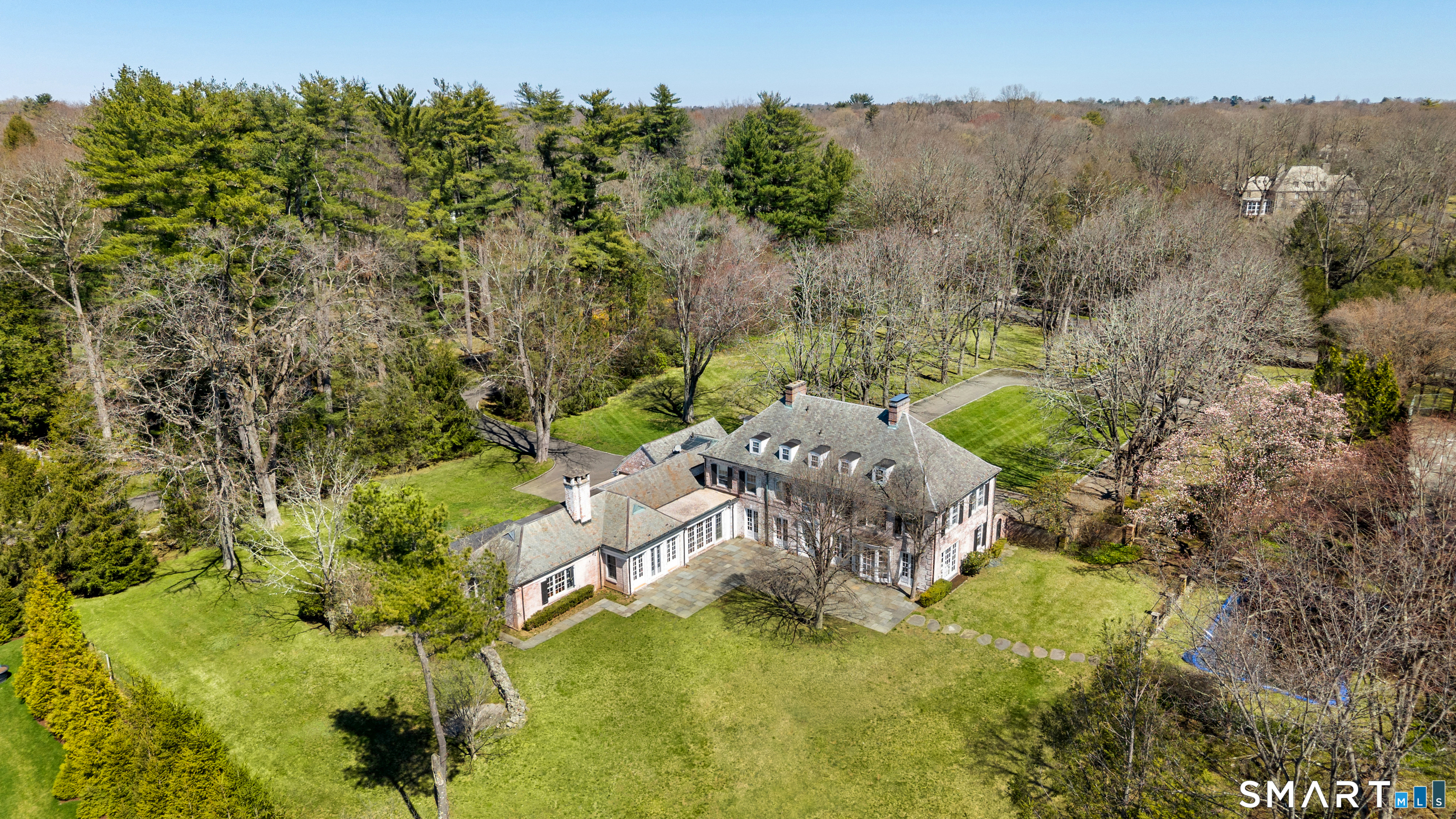A rare and distinguished offering in mid-country Greenwich, an estate of architectural significance, ready to be reimagined for modern luxury living. The Helen C. Douglas house was designed by the renowned Twachtman Brothers, this timeless brick English country home blends classic elegance with warmth, sophistication and scale. Set on 3.8 acres of beautifully landscaped, private grounds, the property features a pool, pool house, clay tennis court, and a striking allee of chestnut trees. The estate was also featured in the 2014 film ''And So It Goes'' starring Michael Douglas and Diane Keaton. A gracious front-to-back foyer invites you into the home's classic interiors. Formal living and dining rooms are complemented by a wood-paneled library, chef's kitchen, spacious family room and additional entertaining space.