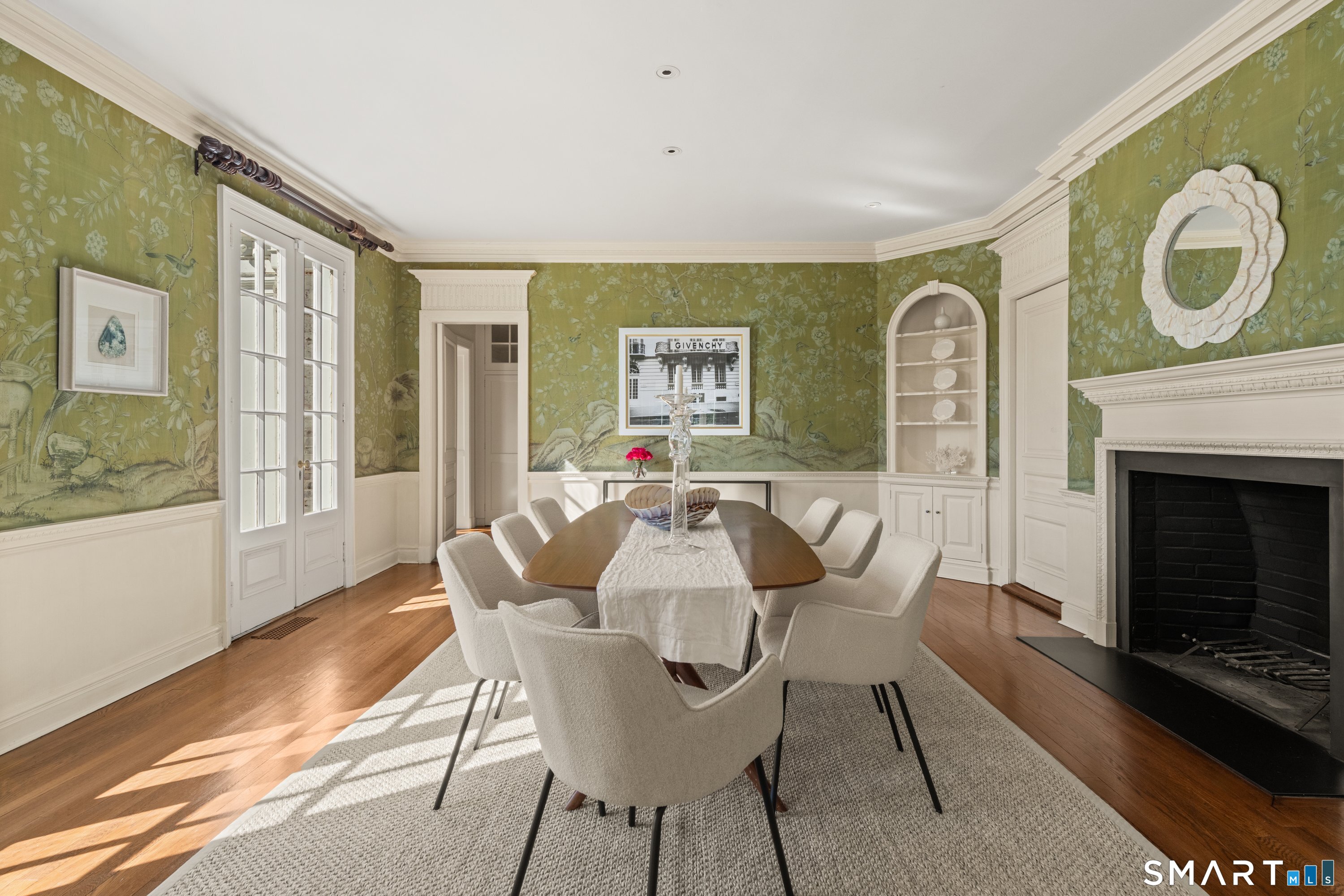Book Shelves, Built-Ins, Fireplace, French Doors, Patio/Terrace, Hardwood Floor