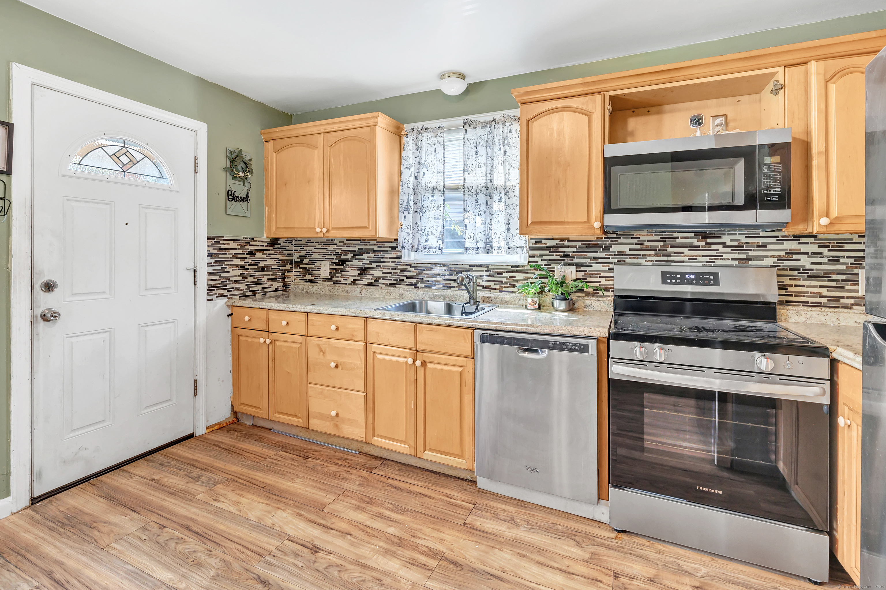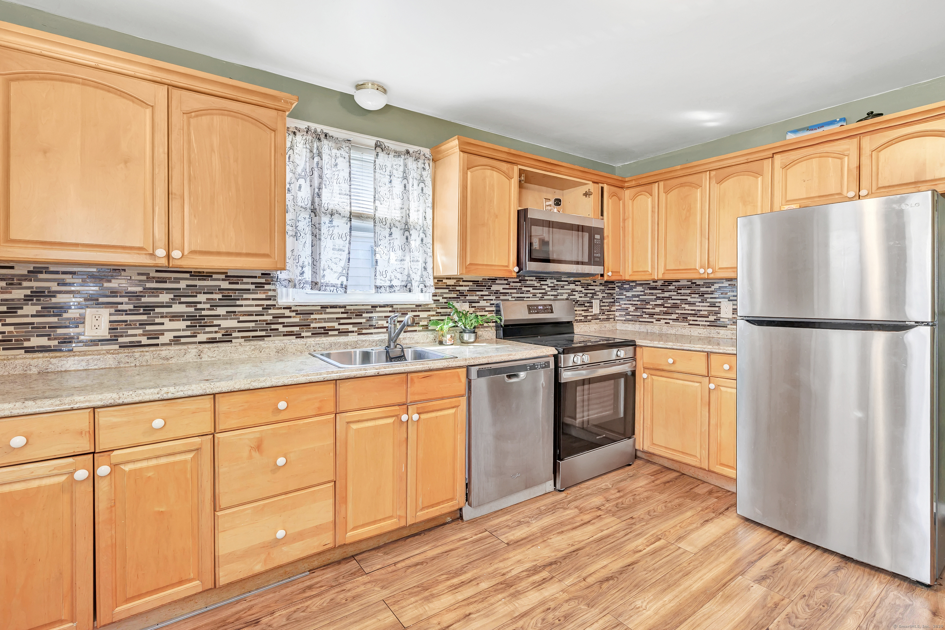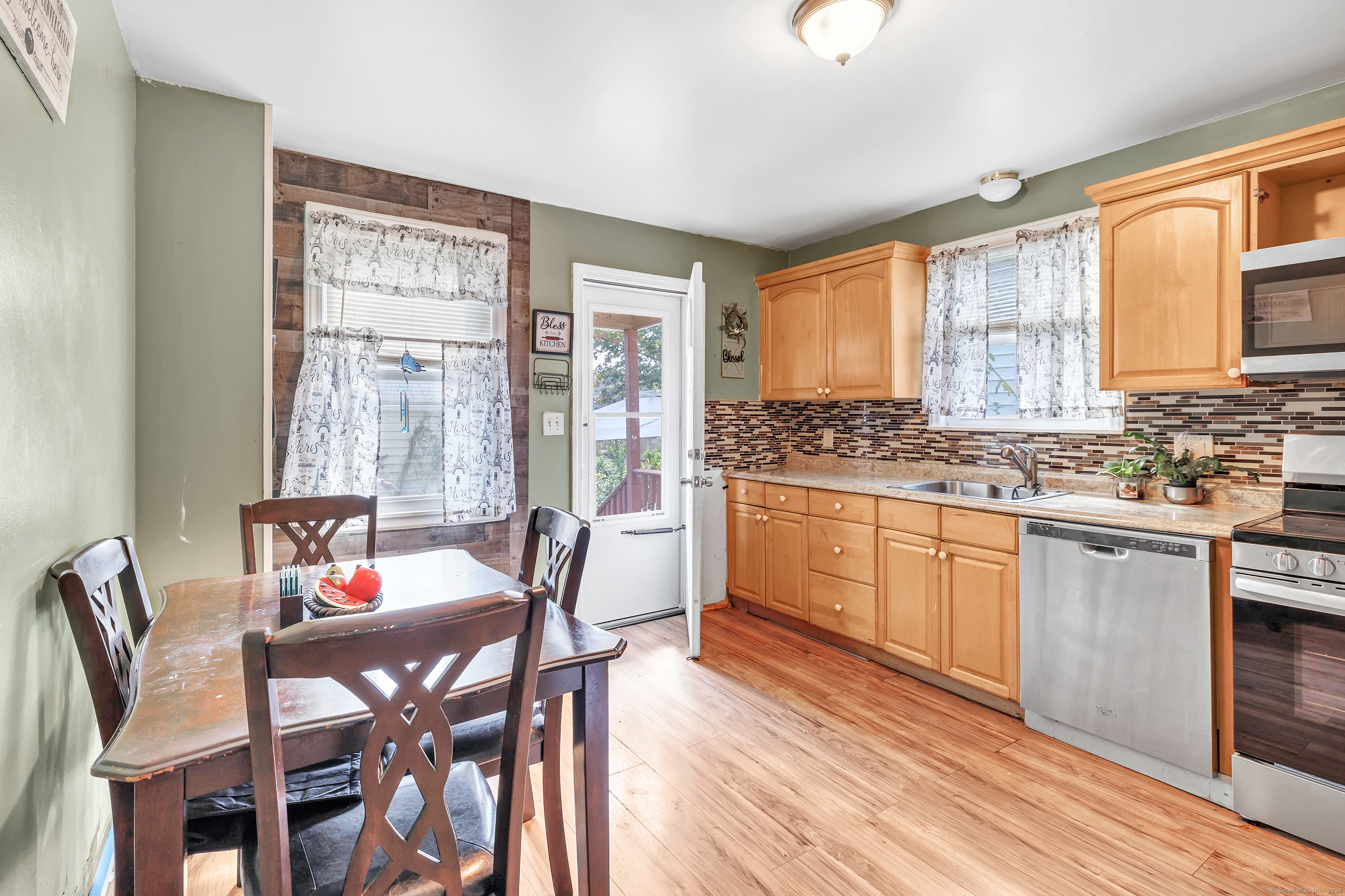 Lovely and cared-for cape cod style house in Bridgeport's walkable Mill Hill neighborhood. The property is walking distance to restaurants, shopping & public transportation. The yard is well maintained and offers a surprising amount of space for entertaining, gardening, etc. This lot also offers a spacious 1 car detached garage. As you enter the front door you'll notice the bright and open feel to the home. The living room features hardwood floors. The eat-in-kitchen is wide open and with great cabinet space. There is a first floor primary bedroom that's good sized and offers tile throughout. The second floor offers 2 more bedrooms, and a spacious landing. The basement is unfinished but is dry and offers lots of room and higher ceilings. Make your appointment today to see this lovely home!